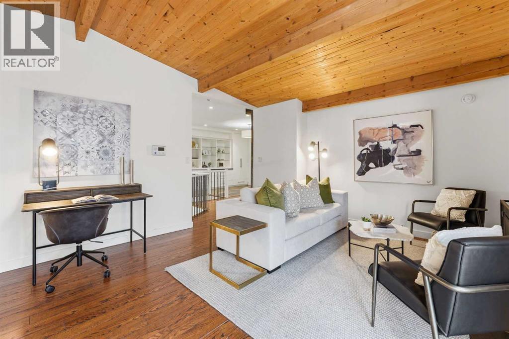O/H March 7 & 8 noon to 2 . Quietly positioned along a tree-lined street in the established community of Glendale, this beautifully renovated 1,840 sq ft bungalow blends timeless mid-century character with the comfort & function of thoughtful modern upgrades. Set on an oversized 70’ wide lot, the property delivers exceptional outdoor space, architectural charm & a layout designed for everyday living & effortless entertaining. A spacious foyer introduces the home with custom built-ins for organized storage & display. Overhead, dramatic vaulted wood-panelled ceilings with exposed beams highlight the home’s original architectural beauty while establishing a warm & welcoming atmosphere throughout the main living areas. Relax beside the charming wood-burning fireplace in the living room or open the sliding patio doors to extend gatherings outdoors, supporting a seamless indoor & outdoor lifestyle across every season. Designed for both style & function, the beautifully updated kitchen showcases quartz countertops, timeless subway tile, stainless steel appliances including a gas range & a large central island that naturally brings family & guests together. A gas fireplace shared with the dining space adds warmth & ambiance while oversized windows fill the dining area with natural light, creating an inviting setting for daily meals & special occasions alike. Conversation easily continues in the adjacent family room where a comfortable layout encourages connection after dinner or quiet evenings at home. Rest & recharge in the spacious primary retreat featuring oversized west-facing windows & a custom walk-in closet designed for practical organization. A spa-inspired 5-piece bathroom elevates everyday routines with dual sinks & a deep soaker tub designed for relaxation. Two additional bedrooms & a stylish 3-piece bathroom complete the main level. Downstairs, the fully finished basement provides flexible living space for changing family needs with a large recreation room s uited for movie nights or games, a versatile nook ideal for hobbies, study or play, plus a fourth bedroom & a 3-piece bathroom that comfortably accommodates guests. An insulated, drywalled & heated double attached tandem garage offers exceptional year-round convenience while providing additional workspace & storage options. Outdoor living shines in the expansive west-facing backyard where a pergola-covered deck with gas line supports effortless summer barbecues & relaxed evening gatherings. Generous yard space created by the oversized lot allows plenty of room for kids & pets to play while mature trees contribute privacy & a peaceful setting. Phenomenally located within walking distance to several schools & the community centre with an outdoor skating rink, tennis courts & playgrounds. Additional recreation is nearby at Glenmeadows/Turtle Hill Park. Plus enjoy quick access to downtown, the LRT & major routes. (id:6769)