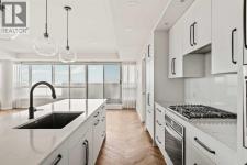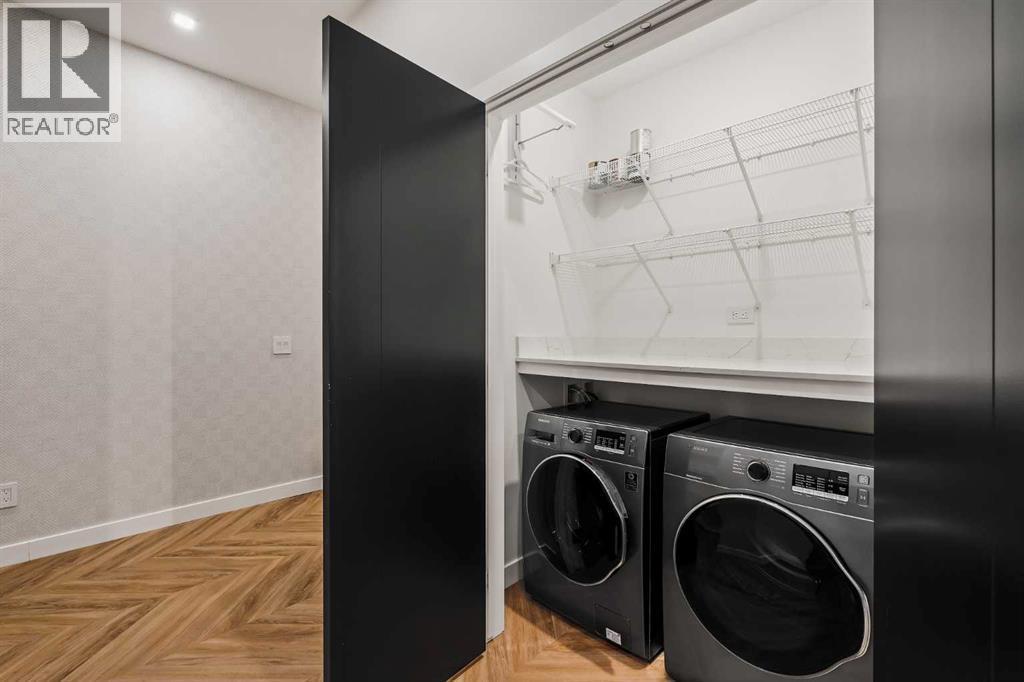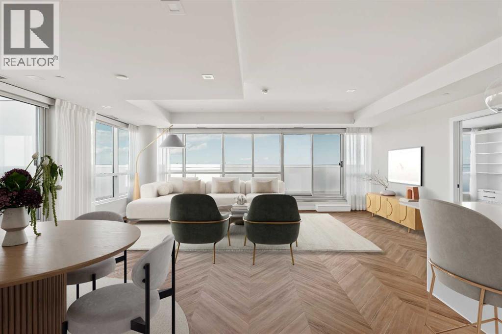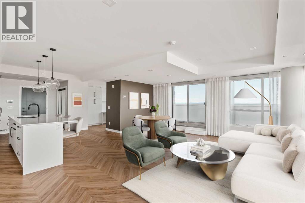 Proudly presenting Suite 717, the most coveted West facing corner penthouse in the prestigious Gateway buildings. This extraordinary home offers stunning panoramic mountain views, evening sunsets, impeccable custom upgrades, and a lifestyle of sophistication and comfort. Thoughtfully designed, the home features electric blackout blinds on all windows, a high-end security system with burglar-proof locks, and a versatile main floor with a custom Murphy bed, built-in office, two separate office spaces, refined window treatments, a customized laundry room, and comfort-raised toilets. The gourmet kitchen is a true showpiece, boasting a single bowl sink, garburator, oversized globe pendant lights, dimmable lighting, and upgraded pull out waste bins. Additional luxuries include two premium parking stalls directly outside of the elevator, two storage lockers, accessibility features throughout, and a bonus spacious in suite storage area under the stairs. This penthouse also comes with air conditioning, chevron flooring, quartz countertops, LED square pot lights, solid core doors, soft close drawers, and a gas line on the patio. Built in 2019 with concrete construction and exceptional soundproofing, this boutique style building is unlike anything else in the city. Residents enjoy access to a rooftop patio, stylish residents' lounge, concierge service, visitor parking, EV chargers, and secure bike storage. Located in the Trendy West District this property is steps from Sobeys, Big T's BBQ, UNA Pizza, Deville Coffee, F45 Gym, Hankki, YYC Cycle, and more, with quick access to Old Banff Coach Road, Stoney Trail, and nearby mountain escapes. The fast growing West District will soon offer over 1 million square feet of retail and commercial space, designed for a walkable lifestyle with 20-ft sidewalks and bike paths. Just 15 minutes from downtown, 5 minutes to Winsport, and 60 minutes to the Rockies, Suite 717 offers unmatched urban convenience with a breathtaking natural backdrop. Book your showing today! (id:6769)