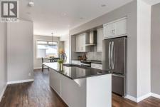 SOLAR PANELS | SMART HOME FEATURES | NO CONDO FEES | PARKING FOR TWO | HEIGHTENED GARAGE | MODERN JAYMAN BUILT HOMEWelcome to this stylish Jayman BUILT two-storey townhome offering contemporary design, energy-efficient features, and integrated smart technology, all set within a growing community surrounded by pathways and natural green space.The main level offers a bright open-concept layout designed for comfortable everyday living and entertaining. The kitchen is the focal point of the space, featuring sleek black quartz countertops, ample cabinetry, and a convenient pantry. A premium stainless steel Whirlpool appliance package includes a French door refrigerator with ice maker, glass-top stove, and built-in hood fan. The kitchen flows seamlessly into the dining and living areas, creating a welcoming and functional gathering space filled with natural light.Upstairs, the home continues to impress with a thoughtfully designed upper level. The primary suite features a spacious walk-in closet and a well-appointed three-piece ensuite. Two additional bedrooms offer great flexibility for family, guests, or a home office, while the upper-level laundry adds everyday convenience.The unfinished basement includes rough-in plumbing and provides excellent potential for future development, allowing you to create additional living space tailored to your needs.Additional upgrades throughout the home include quartz countertops, triple-pane windows, LED designer lighting with pot lights, and a high-efficiency Goodman two-stage furnace with MERV media filtration. A FANTECH heat recovery ventilation system and Navien tankless hot water system further enhance the home’s efficiency and comfort.Smart home features include an Ecobee smart thermostat, Schlage WiFi deadbolt, and Ring video doorbell.Outside, the fully landscaped and fenced yard features a poured concrete patio off the back entrance and a heightened double garage with convenient alley access.Located close to So uth Health Campus, Cineplex VIP Theatre, restaurants, shopping, and everyday amenities, this home also offers quick access to nearby parks and walking pathways.Modern, efficient, and move-in ready, this home offers excellent value in one of Calgary’s newest communities. (id:6769)