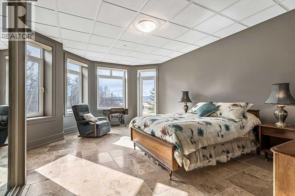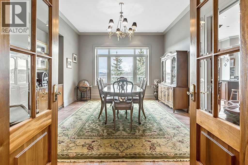 With over 8,500 sq. ft of heated, developed space (3000 sq ft main; 3800 sq. ft. lower; 1800 sq. ft of attached garages) and set on an exquisite 3.41 acre lot nestled within the idyllic Millarville Ridge community, this hillside bungalow is the epitome of refined living, offering spectacular panoramic views of MOUNTAIN RANGES, rolling foothills and valley. Custom-built with ICF from foundation to rafters, this property features concrete floors with in-floor heating throughout, as well as an impressive twin boiler and HRV system—just some of the specialized features you'll appreciate. The homes living space spans an impressive 6810 sq ft and is graced with European influence. Enter the home's spacious foyer where a double sided gas fireplace invites you into a delightful living room accented by panoramic windows. For the culinary enthusiast, the kitchen is fully equipped with stainless steel KitchenAid appliances, including a built-in combination microwave / wall oven as well as a JennAir gas stovetop. Enjoy a casual breakfast and morning coffee in the cozy breakfast nook and when hosting those big holiday feasts, you'll love gathering in the adjoining dining room where you'll find plenty of room to seat the whole family. The master suite stands as a private retreat with a custom crafted wardrobe and direct access to a sprawling south-facing deck. The luxurious 6 piece ensuite features double sinks and an inviting deep soaker tub, perfect for unwinding after a long day. A conveniently located main floor laundry/mud room provides direct outdoor access, ample storage and a powder room. Heading downstairs, the lower level boasts a massive family / rec room where the whole family can gather for movie night or a friendly game of pool. 3 large, bright bedrooms, one with garden door access to the patio, all deliver outstanding views. There is potential for this home to accommodate a MULTI GENERATIONS FAMILY with the addition of a kitchenette in the basement. An easy trans formation of a spare room that is already plumbed for a 3 piece bath support the conversion. Direct access from the double attached garage into the lower level offers easy and private access. Need an extra room for a gym or office? We have that too with a 20' x 29’ dedicated space away from the hustle and bustle of the home. The outdoor spaces are equally impressive. Expansive decks provide ideal venues for entertaining or relaxing. The landscaped grounds, detailed with faux stone patios and a fire pit, invite outdoor gatherings beneath star-filled skies. Lastly the home is complemented by an oversized, double attached garage with granite epoxy flooring plus two single attached garage spaces—ALL HEATED! A gated entrance and hard wired security system ensure added privacy and peace of mind. Please take a moment to view the SUPPLEMENTS for an extensive list that highlight the safety and ENERGY EFFICIENCIES that were top of mind while designing the home. **AERIAL VIDEO AVAILABLE TO VIEW IN IN MULTIMEDIA** (id:6769)