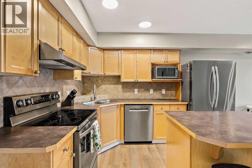 Welcome to #1806 - 140 Sagewood BV! This immaculate, bright 2-bedroom top-floor townhouse, has a south exposure backing onto green space with no rear neighbours and has been upgraded throughout! Recent upgrades include luxury vinyl plank flooring, stainless steel appliances, a full-size washer and dryer, all light fixtures, paint, closet organizers, baseboards, door trim, as well as all electrical outlets and switches! This open-concept floor plan is complete with a spacious kitchen with ample cabinetry that includes a center island and pantry with custom storage. The bright living and dining areas flow seamlessly together with large windows providing an abundance of natural light. The large primary bedroom features closet organizers, and a private south-facing balcony that overlooks the lush green space, perfect for enjoying your morning coffee or to unwind in the evening. The good-sized second bedroom provides plenty of space for guests, family, or a home office. Completing this home is a full 4-piece bathroom. Parking is convenient with your own stall and a visitor stall for guests right outside your door. This clean, very well-kept home with low condo fees is perfect for first-time home buyers, downsizers, or investors. Located in the desirable community of Sagewood, close to schools, parks, transit, and shopping! Book your private viewing today before this gorgeous townhouse is gone! (id:6769)