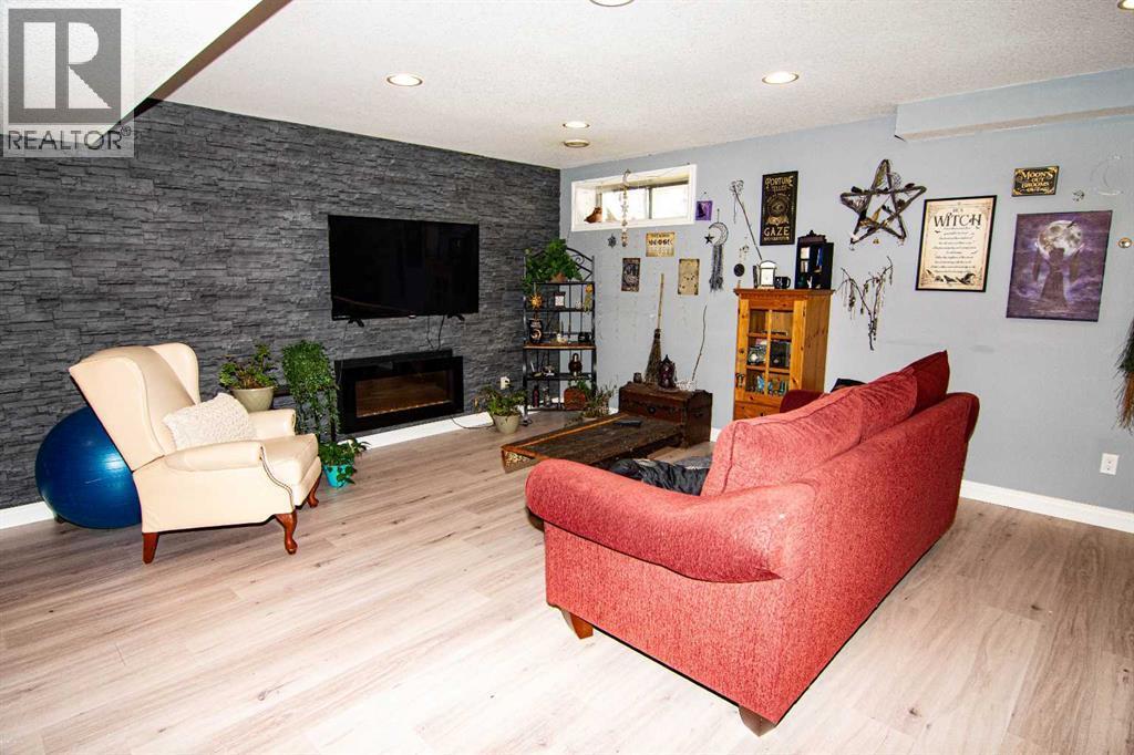 Sunny West-Facing Bungalow in Desirable "Greens at Woodside"! Air Conditioned! 55+ age restriction. Open plan concept with vaulted ceilings! Upgraded kitchen with "Black Stainless Steel" appliances, Quartz Counters, white cabinetry with grey lower cabinets! The master suite is spacious and bright, with easy access to the main 4 piece bathroom. The second bedroom also is adjacent to bathroom and main level laundry. The basement has all permits for the development. It has a kitchen, feature wall with fireplace, heated floors in the bathroom, separate laundry. Double attached garage and rear deck with sunny west exposure. Bareland condo. (id:6769)