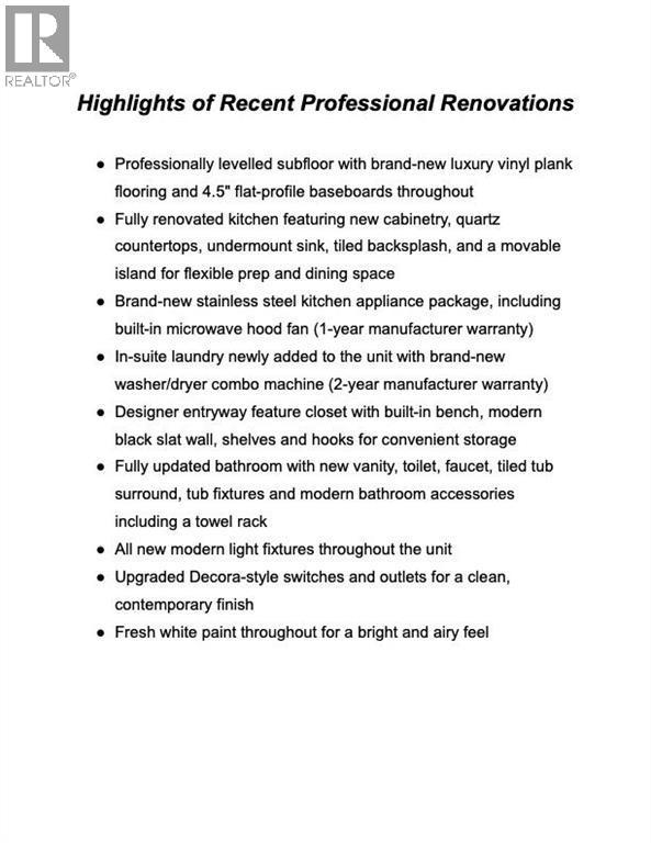 Fully renovated Beltline condo featuring brand new in suite laundry, assigned parking, storage, and a 24 foot private balcony, all at an incredible price point. Be the first to enjoy this completely renovated home offering the feel of a brand new unit at the price of an older one. Every finish in the home has been thoughtfully updated to create a cohesive modern living space. The bright open concept layout features a stunning two tone kitchen with brand new cabinetry, quartz countertops, a contemporary tile backsplash, and brand new stainless steel appliances including a microwave hood fan, all under warranty for added peace of mind. A functional island provides additional prep and seating space and can easily be repositioned within the kitchen depending on your preferred layout. New luxury vinyl plank flooring runs throughout the home, complemented by fresh paint, updated lighting, modern fixtures, and new 4.5 inch baseboards for a clean elevated finish. The home also features brand new in suite laundry with a washer dryer combo, also under warranty. One of the standout features of this unit is the extra long private balcony measuring over 24 feet, with sliding glass doors from both the living room and bedroom creating a seamless connection between indoor and outdoor living. Located on the ground floor this home offers the convenience of avoiding elevators while maintaining excellent privacy and security, as the private patio is positioned above the parkade level with no direct exterior access to the unit. The home is situated in a clean well managed concrete building with no post tension cables and features an inviting lobby, elevator access, and bike storage. Vinyl windows throughout the building were replaced approximately two years ago. The property includes an assigned parking stall and dedicated storage unit, and parking stalls in the building have historically rented for approximately $100 per month creating additional flexibility for owners. Additional stre et parking is available nearby for guests or a second vehicle. With reasonable condo fees and excellent rental potential this property is ideal for first time buyers, young professionals, downsizers, or investors seeking a turnkey unit in a prime inner city location just steps from shops, restaurants, transit, and everyday amenities. Vacant and available for quick possession. (id:6769)