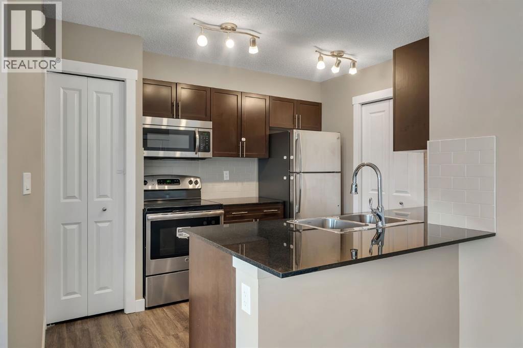 STUNNING 2 BEDROOM 2 BATHROOM + UNDERGROUND PARKING UNIT | LVP FLOORING THROUGHOUT | WELL MAINTAINED |Welcome to this beautifully maintained condominium in the sought-after community of Kincora, offering the perfect blend of comfort, style, and convenience. This bright and modern unit features 2 spacious bedrooms, 2 full bathrooms and heated underground parking stall, making it an excellent opportunity for homeowners and investors alike.As you enter the unit, you’re greeted by a large, welcoming foyer.The layout then opens into the main living area, where large windows fill the space with natural light, creating a warm and inviting atmosphere perfect for both everyday living and entertaining.The condo showcases durable and stylish luxury vinyl plank (LVP) flooring throughout, complementing the clean, modern design. The open-concept living and dining area flows seamlessly, offering a comfortable space to relax or host guests.This thoughtfully designed unit includes two generously sized bedrooms and two full bathrooms. The primary bedroom features a private ensuite bathroom and a spacious walk-in closet, providing plenty of room for storage and organization.Year-round comfort is ensured with air conditioning, while heat and water are included in the condo fees, adding extra value and convenience.Additional highlights include Titled heated underground parking stall, offering convenience and protection from the elements during Calgary winters.The vibrant Kincora community provides easy access to everyday amenities. Walmart, Dollarama, and Tim Hortons are less than a 10-minute walk away, while Costco is only an 8-minute drive. You'll also find restaurants, parks, schools, and walking paths nearby, with quick access to Stoney Trail for effortless commuting across the city.Pet lovers will also appreciate that the building is pet-friendly, making it easy to bring your furry companions along.This exceptional condo offers a wonderful balance of modern living, conveni ence, and community lifestyle.Explore the 3D tour, book your private showing today, and experience everything this Kincora home has to offer. (id:6769)