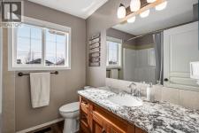 Step inside to a home that immediately feels inviting and thoughtfully finished. Designed for both comfort and everyday living, the space features luxury vinyl plank flooring and plush carpet throughout, paired with timeless granite countertops, Hunter Douglas blinds, and a cozy gas fireplace that anchors the main living area and sets the tone for the home. The kitchen is designed for ease with central vacuum and island kick, while main floor laundry adds everyday convenience. The fully developed basement expands your living space, perfect for movie nights, guests, or a home gym. Comfort and care shine throughout: air conditioning, new hot water tank (2022), new stove (2022), and furnaces that are professionally cleaned regularly with carpets cleaned annually. Storage is abundant with extra attic storage in the garage, plus a Vacuflo system. Step outside and you’ll find a backyard built for all seasons. Enjoy summer evenings on the two-tiered deck with cedar pergola and privacy shades, composite board landings, a propane rough-in for a fire pit on the lower patio, outdoor hot water bib, and hanging plant irrigation. There’s a shed, covered outdoor bicycle storage, and an extended driveway completed in 2024—perfect for extra parking or toys. This is more than a house—it’s a home that’s been loved, upgraded, and meticulously maintained. This beautifully maintained property offers the rare combination of a double attached garage complete with attic storage with a drop-down ladder plus a separate heated, fully finished single detached garage/shop—complete with electrical sub panel, more attic storage, alley access, and even a built-in basketball net on the concrete apron. Whether you’re dreaming of the ultimate man cave, workshop, or hobby space, this 200 sq ft heated shop (built in 2014) delivers. A rare opportunity in one of Airdrie’s most sought-after communities. (id:6769)