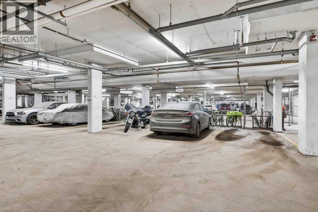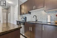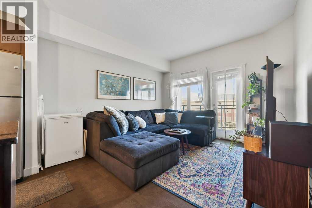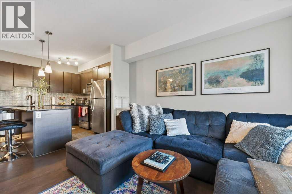 Welcome to Canvas at Millrise. This top-floor, courtyard-facing 1 bedroom, 1 bathroom unit offers over 600 sq ft of well-designed living space with 9-foot ceilings and a quiet setting away from the street. Ideally located close to the elevator with direct access to nearby pathways leading to shopping and restaurants. The functional layout features a welcoming entry with large front closet, a modern kitchen with an island topped with stone countertops, stainless steel appliances, and a built-in desk area perfect for working from home. The living room opens to a private balcony with a BBQ gas line overlooking the courtyard. The spacious bedroom includes a walk-through closet and 4-piece cheater ensuite accessible from both the bedroom and main living area. In-suite laundry adds convenience. This unit includes titled underground parking and an assigned storage locker. The well-managed, pet-friendly complex offers a fitness centre, recreation room, media room, bike storage, and visitor parking. Condo fees include heat and electricity. Steps to Millrise Plaza with Sobeys, Shoppers Drug Mart, Kinjo, Rockwell, and more, plus quick access to the C-Train and Macleod Trail, this is an excellent opportunity for first-time buyers, downsizers, or investors. (id:6769)
