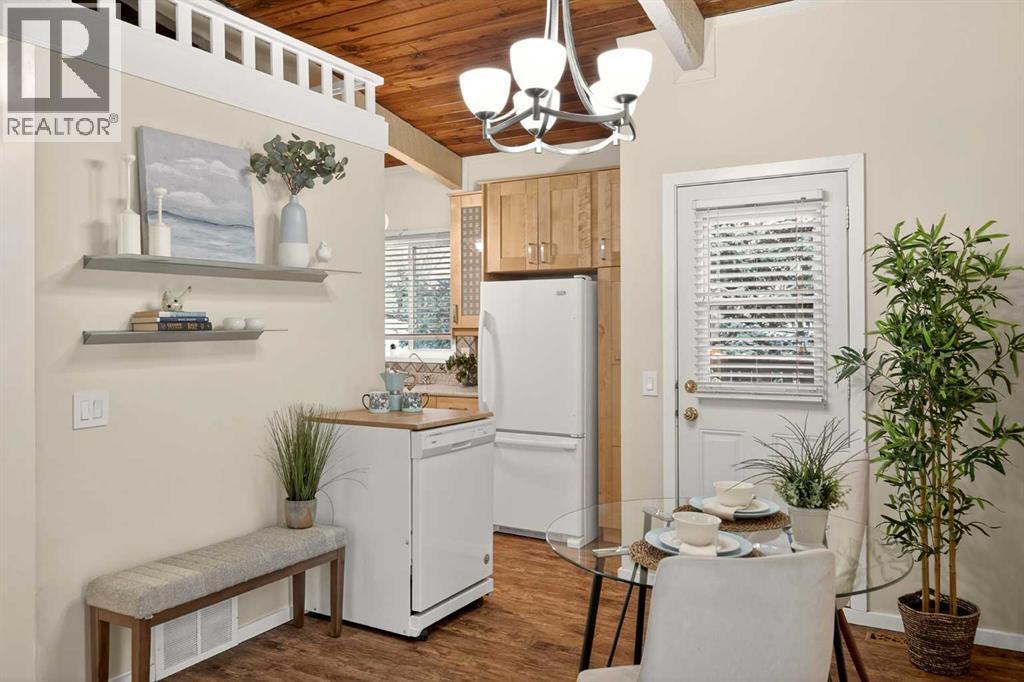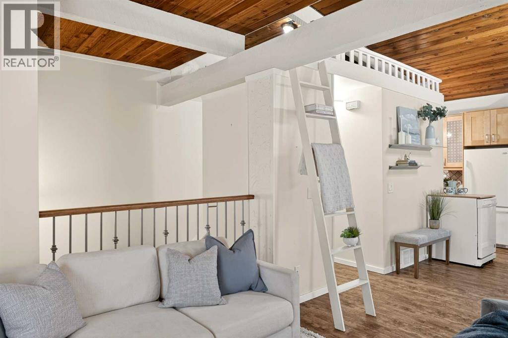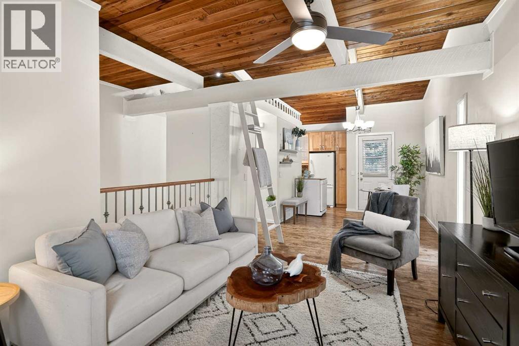 **Open House Saturday March 14 from 1-3 pm** Tucked into a quiet corner of the complex and fronting a peaceful street, this UPDATED COTTAGE-CHIC townhouse feels like a little escape — the kind of place you’d hope to stumble upon for a weekend in the woods — yet it’s right here in the city. And best of all? It’s not your typical cut-and-paste condo. This home has soul.Upstairs, WOOD-BEAMED VAULTED CEILINGS wrap the main living space in warmth and character, creating a cozy, open setting where the living, dining, and kitchen gather naturally under one inviting roofline. It’s intimate without feeling tight — perfect for slow mornings with coffee, easy dinners with friends, and unhurried evenings curled up by the fireplace. The charmingly RENOVATED KITCHEN feels collected rather than cookie-cutter, blending thoughtful updates with cottage personality. And tucked above it all, a SWEET HIDEAWAY LOFT offers that rare bonus space — a secret nook for streaming, reading, overnight guests, or simply disappearing for a quiet moment.Downstairs, BOTH BEDROOMS are gently snuggled away, creating a calm and private retreat from the main living space. A clever bathroom and convenient laundry keep daily life simple and functional, while the thoughtful layout gives you that natural separation between gathering upstairs and resting below. This location delivers a sense of calm AND places you just steps from shopping, restaurants, cafés, and transit. Whether it’s a quick grocery run, dinner out, or an easy commute, everything you need is within walking distance, making day-to-day life effortless and connected.If you’ve been waiting for something with heart — something that feels curated, cozy, and one-of-a-kind — this is it. Be sure to check out the video and virtual tour and call your favourite Realtor to book a showing today! (id:6769)