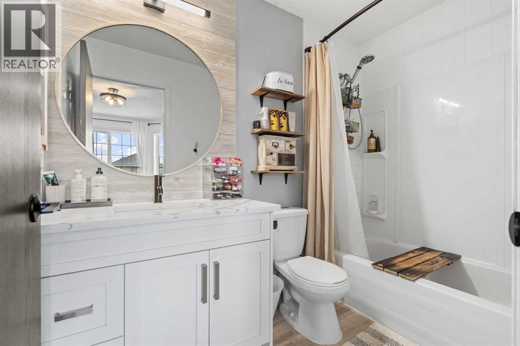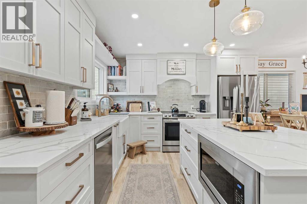 Welcome to this beautifully updated home in the desirable community of Chaparral—where IMPRESSIVE renovations (completed in 2022) and functional family living come together!Step inside to an inviting open-concept main floor featuring new flooring, modern pot lights, updated trim, and custom built-ins in the front closet for added organization. The stunning custom kitchen is designed for both everyday living and entertaining, showcasing quartz countertops, an apron-front sink, quality appliances, and a spacious walk-in pantry with solid shelving (no wire racks). A new back door leads to the south facing backyard where you'll find a storage shed and space to enjoy the outdoors. Upstairs offers a comfortable family layout with two kids’ bedrooms, an updated upper hall bathroom with a new toilet, vanity, and quartz countertop, and a private primary retreat complete with a walk-in closet and updated 4-piece ensuite.The finished basement adds exceptional living space, featuring a cozy electric fireplace with rock tile surround, a basement bedroom (non-egress window), and ample storage including space under the stairs and additional storage beside the staircase. There is also space for a potential future bathroom.Additional upgrades include updated interior doors, R60 attic insulation for improved efficiency, and central A/C installed in 2025.This move-in-ready home combines quality renovations, smart storage, and comfortable living spaces in a fantastic family-friendly community close to parks, pathways, and the Bow River valley. (id:6769)