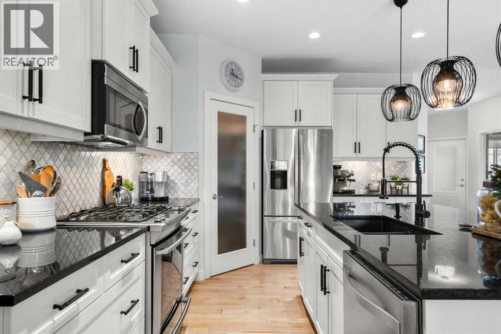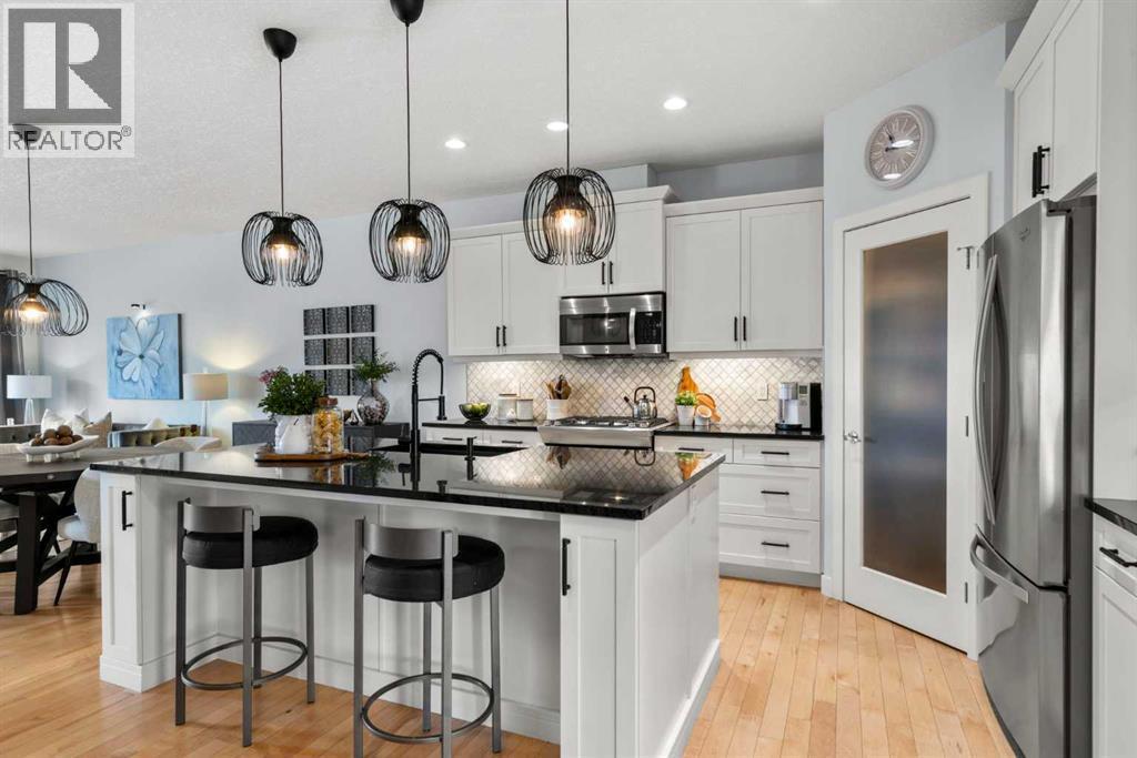 * Open House: Sun, Mar 15, 2-4 PM * END-UNIT BUNGALOW, LOW-MAINTENACE lifestyle, and a CLEAN PRE-HOME INSPECTION Presenting 25 Fireside Landing anew with a fresh perspective and standout upgrades, this home truly stands out and is one you won’t want to miss! This stellar 3-bed + den, 3-bath Calbridge Home by La Vita Land is timeless with its stone and grey exterior siding façade, set on a 5,974 sq ft lot. Greeted by a thoughtfully recessed front porch, this tucked-in design offers a private sheltered entry from the elements and a welcoming curb appeal, and into an inviting foyer with maple hardwood flooring, modern baseboards, fresh paint tones, and elevated finishes throughout the home’s interior. Just off the entry, a sunlit den, currently occupied as an art studio, offers a versatile space ideal for a home office, creative retreat, or quiet flex room, and down the hall, smart living unfolds with a powder room and a mudroom-laundry combo with access from the insulated double-attached garage. The home opens beautifully into a bright kitchen, dining, and living room layout designed for effortless everyday living and when entertaining guests, where the kitchen shines with shaker cabinetry, sleek hardware, granite counters, s/s appliances, a centre island with seating, and a walk-in pantry. From there, the dining area flows into the living room, where a cozy fireplace anchors the room and large windows draw you toward the backyard. Privately positioned for rest and retreat, the king-sized primary bedroom is enhanced by a striking paneled feature wall, creating a serene sanctuary, with a spa-inspired 5-piece ensuite with dual vanities, soaker tub, walk-in shower, and water closet, all complemented by a large walk-in closet. Downstairs, the fully-finished lower level turns up the volume with a spacious family room ready for movie nights, playlists, and lively gatherings. Large enough to create two distinct zones, it’s styled with a home office but could easily transform into a games or bar area when hosting parties. Completing the lower level are two additional bedrooms, one which is staged as a home gym, offering flexible space for family, guests, or hobbies, along with a convenient 4-piece bathroom and extra-large, organized storage utility room providing practical space for seasonal items and overflow. 30 mins to the Rockies, with 63 acres of parks, green space, shops nearby, and quick Highway 1 access to Calgary, life balances ease and adventure. The beauty of villa living makes for a snowbird’s dream, where monthly condo fees include lawn maintenance and snow removal for peace of mind. That freedom means more time to travel, rightsize, or simply embrace a lock-and-leave lifestyle without sacrificing or compromising comfort or space. At Clearbook Villa of Fireside, you’re not just buying a home; you’re choosing a lifestyle designed for ease, connection, and enjoying what matters. (id:6769)
