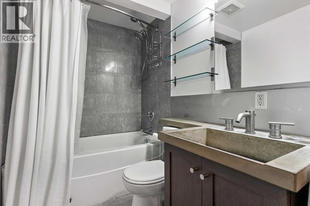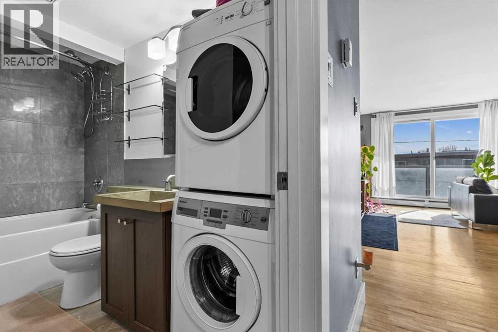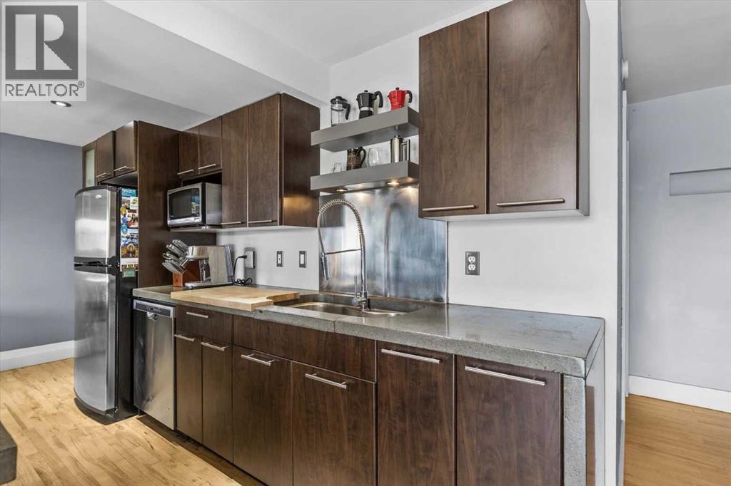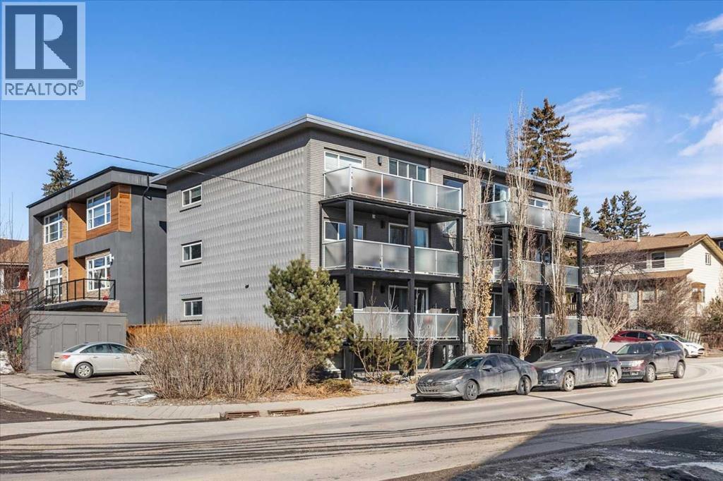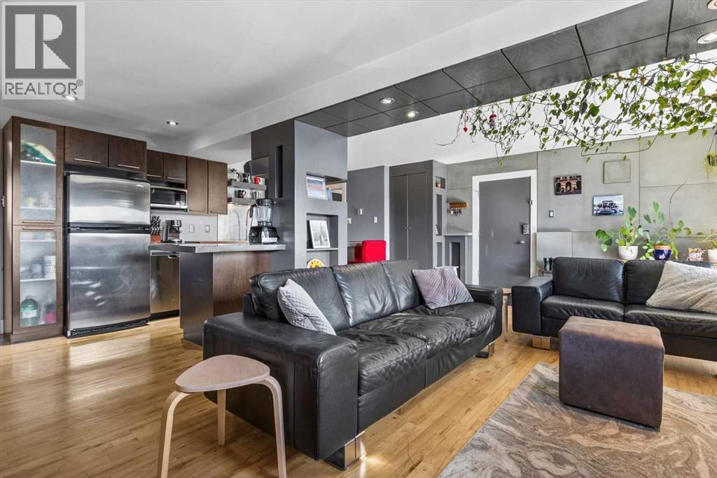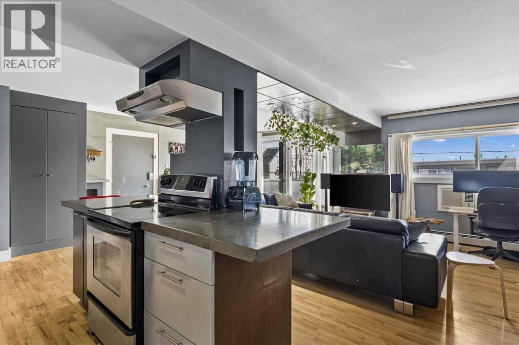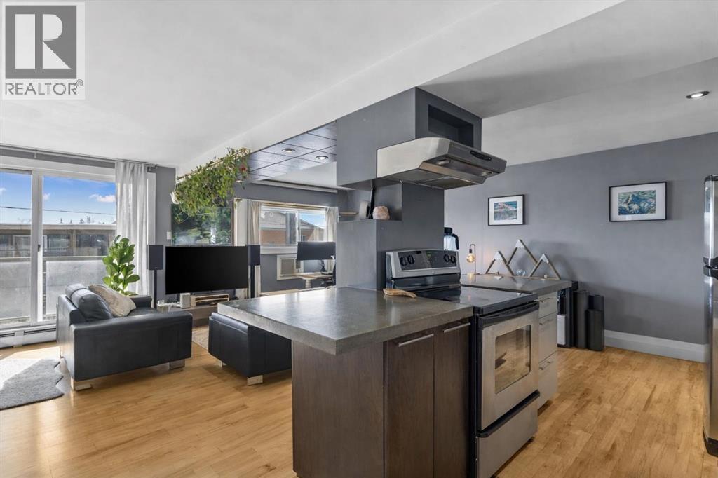 Welcome to this stunning executive 2-bedroom, 1-bathroom condo nestled in the heart of sought-after Bankview, one of Calgary's most vibrant and walkable inner-city neighbourhoods. Perched on the escarpment just minutes from the downtown core, this is a community that rewards those who seek a true urban lifestyle without sacrificing neighbourhood warmth. This is the backdrop of everyday life when you call this remarkable inner-city address home. Step inside and feel the difference immediately. This unit delivers a bold, thoughtfully curated industrial chic aesthetic that perfectly mirrors the creativity and character of the neighbourhood all around it. The open-concept floor plan is anchored by rich hardwood flooring, dramatic poured concrete countertops in the kitchen, and oversized south-facing windows that flood every corner with brilliant natural sunlight from morning through late afternoon. Natural light at this calibre is not a given in an inner-city condo, and here it is truly one of the defining features of the overall daily living experience. The kitchen is fully equipped with a sleek stainless-steel appliance package, a stylish eating bar perfect for casual morning coffee or relaxed evening entertaining, and generous counter and cabinet space thoughtfully designed for those who love to cook and gather. And when you are ready to venture out, the eclectic boutiques, acclaimed restaurants, and independent cafes of 17th Ave SW are just a short stroll away. The open dining and living areas are spacious and wonderfully versatile, large enough to accommodate a variety of furniture arrangements, and flexible enough to shift effortlessly between hosting a crowd after a night out on the town and a quiet, cozy evening in. Both bedrooms are well-proportioned and bright, each offering ample closet storage and a calm, restful atmosphere that busy urban professionals genuinely appreciate after a full day in the city. The 4-piece bathroom has been beautifully updated with custom tile work that carries the polished industrial aesthetic throughout with real cohesion and care. Convenient stackable laundry adds everyday convenience that elevates this space well beyond a typical condo offering. Step out onto the oversized private balcony, generously sized and finished with elegant, frosted glass panels for enhanced privacy. Ideal space for alfresco dining, or simply enjoying a glass of wine with friends on a warm summer evening. All of this is genuinely rare at this inner-city price point. Ideally centred between 33rd Ave and 17th Ave SW, you are steps from Calgary's finest restaurants, coffee shops, boutique fitness studios, live music, and much more. Bankview Park and its off-leash area are right at your doorstep, and downtown is just minutes away by car or bike. This exceptional unit includes a dedicated assigned parking stall and a private storage locker. Truly a one-of-a-kind gem in one of Calgary's most beloved inner-city neighbourhoods!! (id:6769)