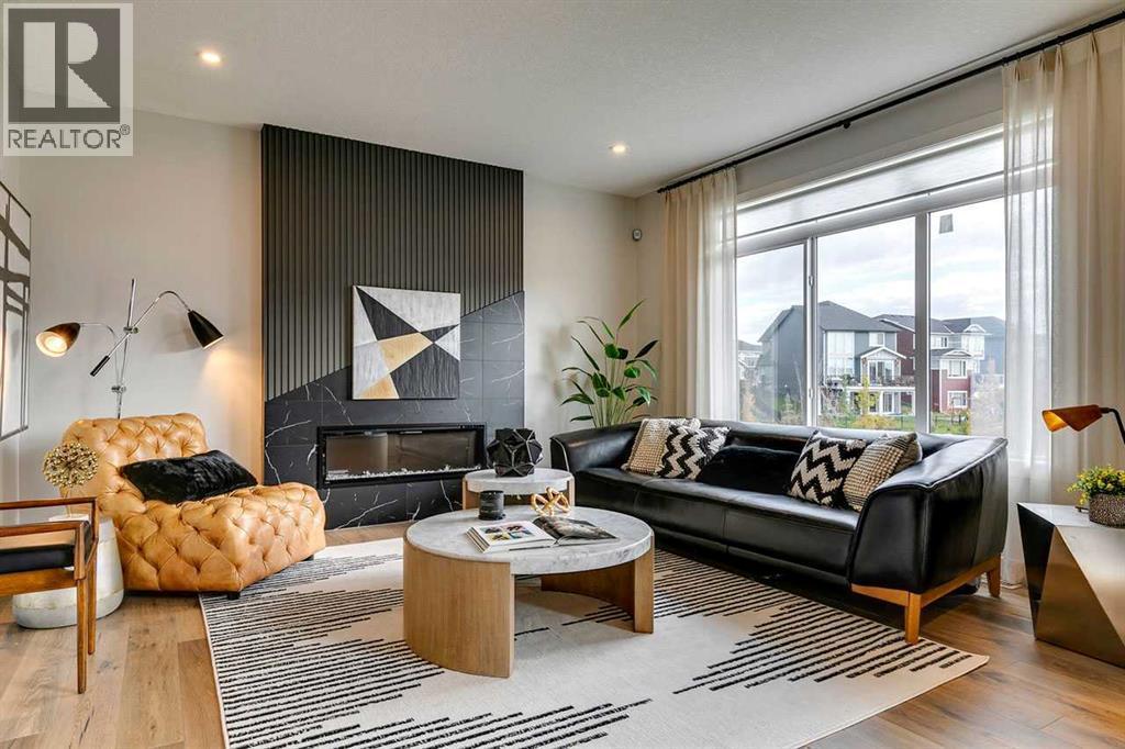 Rare opportunity to own a fully upgraded Douglas Homes showhome on a prime corner lot in the desirable community of Sunset Ridge...Presenting the Monte Carlo 7, offering 2,261 sq ft of thoughtfully designed living space, with 4 bedrooms and 2.5 bathrooms, perfectly suited for modern family living.The bright open main floor features 9’ ceilings, engineered hardwood flooring, oversized windows, and a striking electric fireplace anchoring the great room. The contemporary kitchen blends style and functionality with quartz countertops, a large island with Silgranit sink, chimney hood fan, built-in microwave, tile backsplash, and a convenient walk-through pantry connecting directly to the mudroom and garage.A main floor flex room with French doors provides an ideal space for a home office, study, or quiet retreat.Upstairs, a spacious bonus room expands the family living area, while the primary suite offers a relaxing escape with a walk-in closet and well-appointed ensuite. Three additional bedrooms and upper-floor laundry complete the level.Additional highlights include 8' interior doors in the main living areas, a side entrance offering future basement development potential, and an oversized 21' x 21' double attached garage.Located just a short walk to RancheView K–8 School and only minutes from St. Timothy High School, with a future community centre and additional school planned nearby. With quick access to Calgary and only 40–45 minutes to the Rocky Mountains, Sunset Ridge offers the perfect balance of community living and outdoor adventure.A beautifully finished showhome offering exceptional value in one of Cochrane’s most sought-after communities. (id:6769)