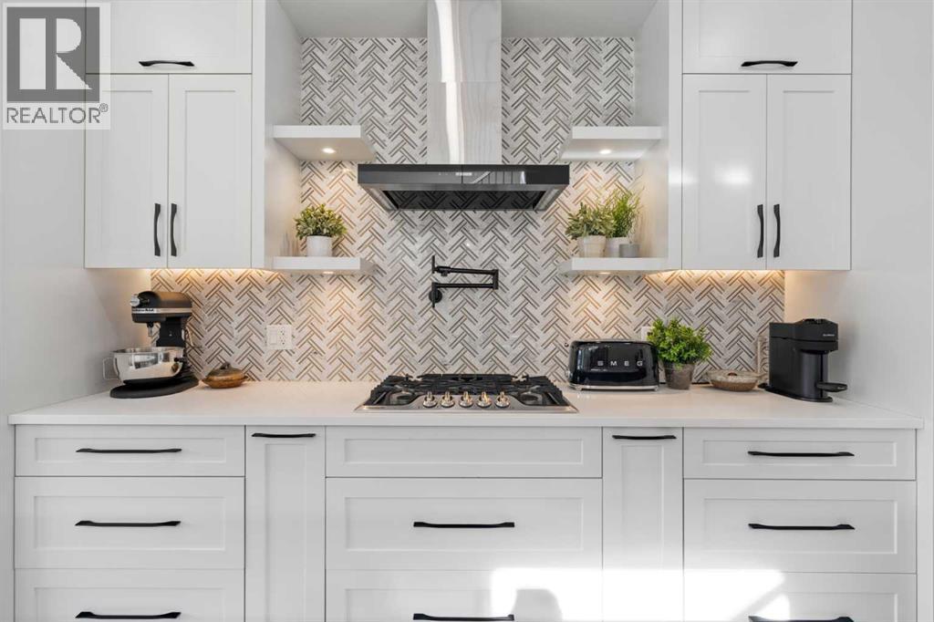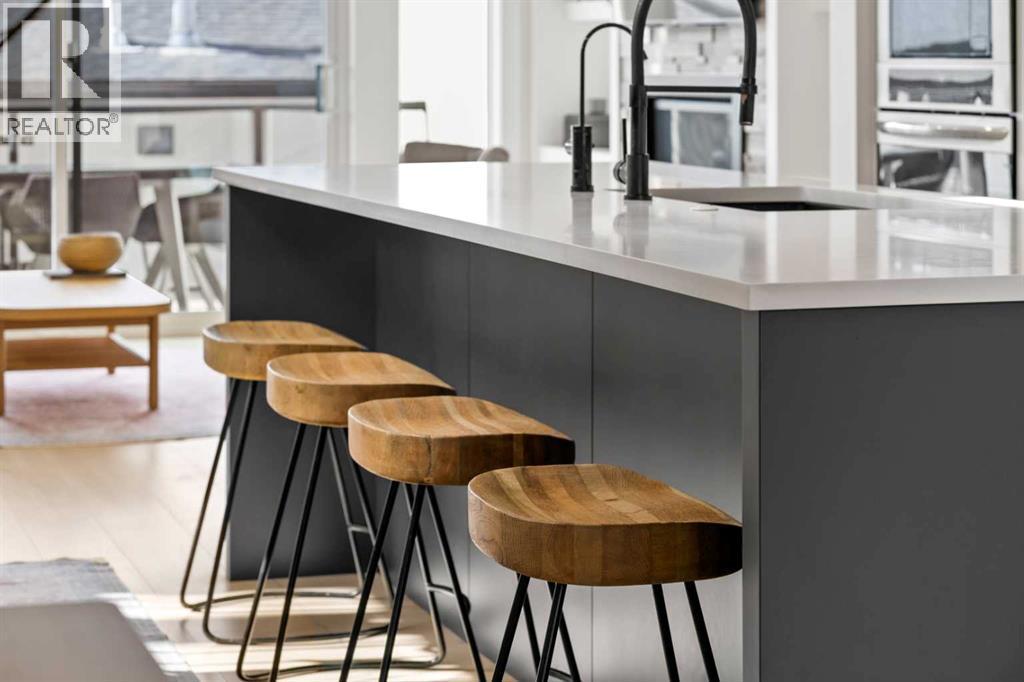 Welcome to this exceptional modern family home in the heart of the inner city, where thoughtful design and upscale finishes combine to create a truly refined living experience. Perfectly positioned to take advantage of both sunrise and sunset views, this beautifully crafted residence showcases meticulous attention to detail throughout. Step inside to a professionally curated interior featuring soaring 9-foot ceilings on two levels, wide-plank hardwood flooring spanning all three levels, and elegant marble tile accents. Restoration Hardware lighting paired with recessed lighting creates a warm and sophisticated atmosphere, while built-in speakers add to the home’s modern comfort. The designer kitchen is both stunning and highly functional, outfitted with professional-grade appliances including a gas cooktop, built-in oven and microwave, chimney-style range hood, and an impressive side-by-side refrigerator and freezer. Quartz countertops, floor-to-ceiling cabinetry, under-cabinet lighting, and abundant storage ensure the space is as practical as it is beautiful. Designed for effortless day-to-day living, the home also includes custom storage solutions throughout, a central vacuum system, and central air conditioning. The inviting living room features a striking marble-tiled fireplace framed by custom built-in cabinetry and shelving. Expansive floor-to-ceiling windows and a sliding patio door fill the space with natural light while seamlessly connecting the interior to the sunny west-facing backyard. A stylish powder room completes the main level. Upstairs, the primary suite offers a luxurious private retreat with soaring ceilings and a spa-inspired five-piece ensuite. Heated marble floors, a double vanity, a large steam shower with rain shower head, and an expansive walk-in closet create a space designed for relaxation. Two additional spacious bedrooms, a beautifully appointed main bathroom, and a conveniently located laundry room complete the upper level. The walk-ou t basement continues the home’s impressive design with nearly 9-foot ceilings and comfortable in-floor radiant heating. This level is ideal for entertaining, featuring a generous recreation room with a wet bar, a large fourth bedroom, and an additional bathroom perfect for guests or extended family. A well-designed mudroom with extensive storage adds even more functionality. Step outside to enjoy the private, low-maintenance backyard oasis. The heated saltwater pool can be warmed to hot-tub temperatures or used as an exercise pool with the training tether for fitness enthusiasts. Surrounding decking and professional landscaping create an inviting outdoor space for relaxing or entertaining. Completing the property is a heated and insulated double detached garage and beautifully landscaped front yard. Situated on a quiet street in the desirable inner-city community of Glenbrook, this home offers outstanding convenience with a short walk to all nearby amenities, plus quick access to Marda Loop. (id:6769)