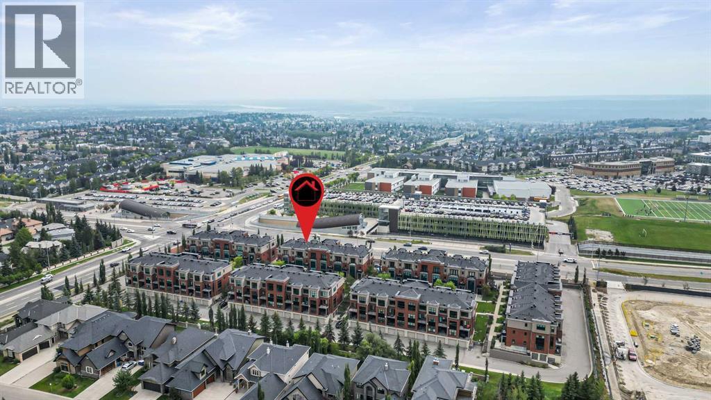 Experience elevated townhome living at 606 Aspen Meadows Hill SW – a luxurious 3-bedroom, 4-bathroom residence in the prestigious community of Aspen Woods. This executive home is thoughtfully designed with a private in-suite elevator, upscale finishes, and a highly functional layout that suits both relaxed living and stylish entertaining. The main floor is bright and airy, featuring 9’ ceilings, engineered hardwood flooring, and elegant built-ins. The kitchen is a chef’s dream with granite countertops, a center island, gas cooktop, wall oven, and a stainless steel French-door refrigerator. A bright dining area opens through French doors to a sun-drenched west-facing patio, ideal for relaxing or hosting.The living room offers a cozy yet refined feel with its fireplace and custom built-ins overlooking the fenced backyard. Also on the main floor is a powder room and a spacious third bedroom with a walk-in closet and private 3-piece ensuite — perfect for guests, aging parents, or a home office. Upstairs, a generous loft space includes a wet bar, bar fridge, and custom cabinetry. The primary suite provides a peaceful retreat with a private balcony, walk-in closet, and a luxurious 4-piece ensuite with double vanity and oversized shower. The second upper bedroom also includes a walk-in closet and its own full ensuite bath. A convenient upper-floor laundry room makes everyday living easy.Additional features include central A/C, a double tandem attached garage, and a huge private storage room. Located close to Aspen Landing, LRT, top schools, and parks, this home offers upscale, maintenance-free living in one of Calgary’s most desirable west-end communities. (id:6769)