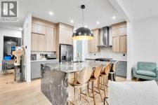 Here’s a Contemporary Cedarglen CUSTOM HOME in Livingston Calgary AB (Built 2023). Located in the highly sought-after community of Livingston on the NE/NW border, this 2,600 sq ft, two-storey detached home offers nearly-new luxury living with thoughtfully upgraded features and an attached double garage. The main lever features soaring 10 FT CEILINGS enhance the spacious, open-concept layout. A sleek 5 ft-wide gas FIREPLACE anchors the family room, framed by oversized windows for maximum natural light. Private main-floor office with 10 mm GLASS DOORS. Chef’s kitchen boasts floor-to-ceiling cabinetry with a designer hood, QUARTZ BACKSPLASH and countertops, an oversized waterfall island, and premium black appliances including a high-end six-burner gas stove. A walk-in pantry with an additional fridge provides ample storage. UPGRADED light fixtures and oversized windows carry throughout the home. NINE-FOOT CEILINGS continue on the upper floor. Spacious bonus room provides a flexible family space. Expansive primary bedroom with a five-piece ensuite. Two additional large bedrooms and a well-appointed main bath complete this level. Nine-foot ceilings in the walk-out basement await your personal touch, offering potential for future development. New siding on two sides and brand-new roof shingles provide peace of mind. Large, fenced backyard ready for outdoor enjoyment. The DOUBLE ATTACHED GARAGE adds convenience and storage. Situated within Livingston, a premier master-planned community poised to welcome six new schools. Residents enjoy access to the Livingston Hub, maintained by the HOA for recreational amenities and private functions at preferred rates. Quick access to Stony Trail places downtown Calgary within easy reach and makes weekend trips to the mountains a breeze—Canmore is approximately an hour’s drive away. With its generous square footage, high ceilings, modern finishes, and prime location, this well-appointed home offers exceptional value and an opportunity t o enjoy new-build quality without the wait. Hurry & Book showing at this incredible home today. (id:6769)