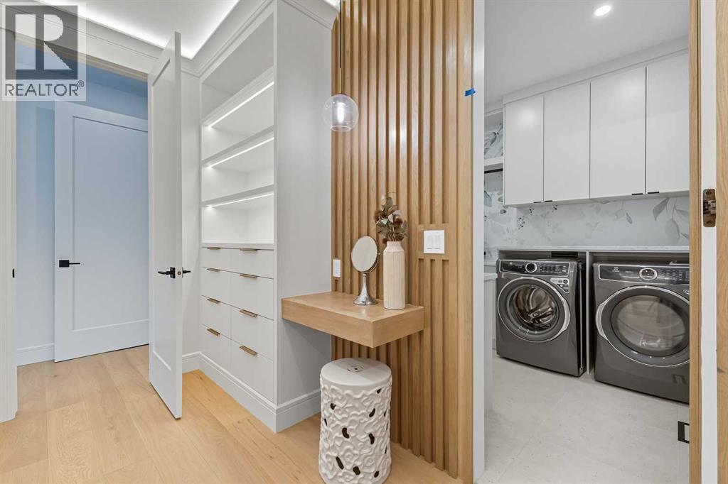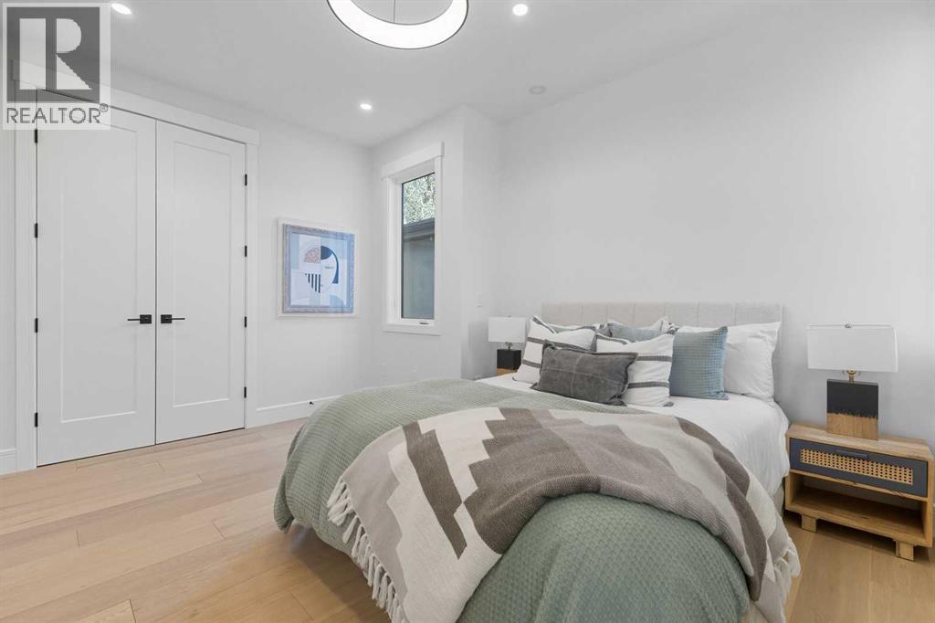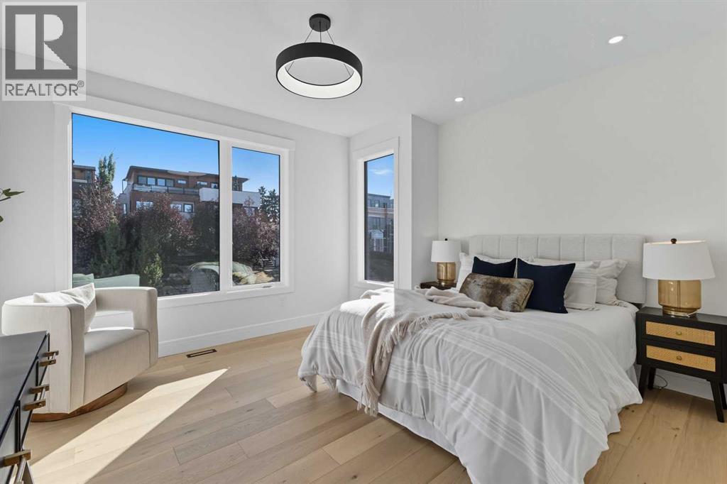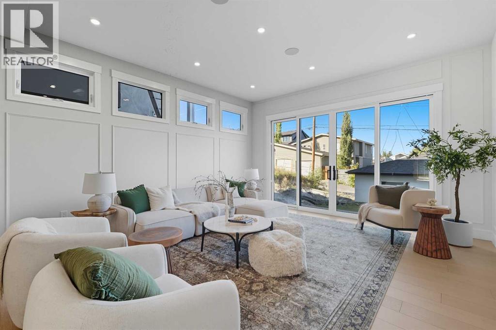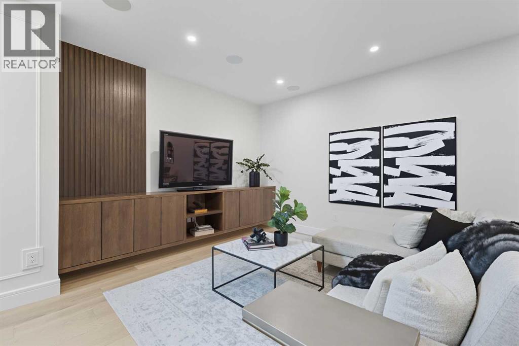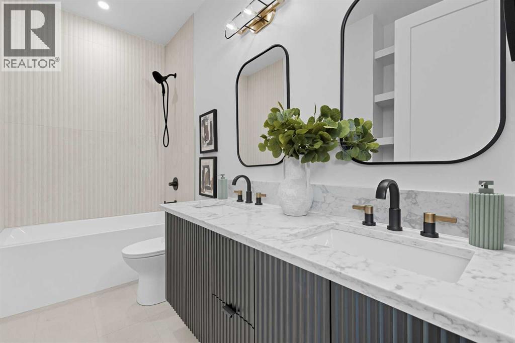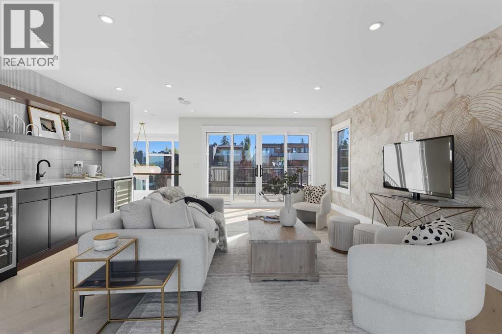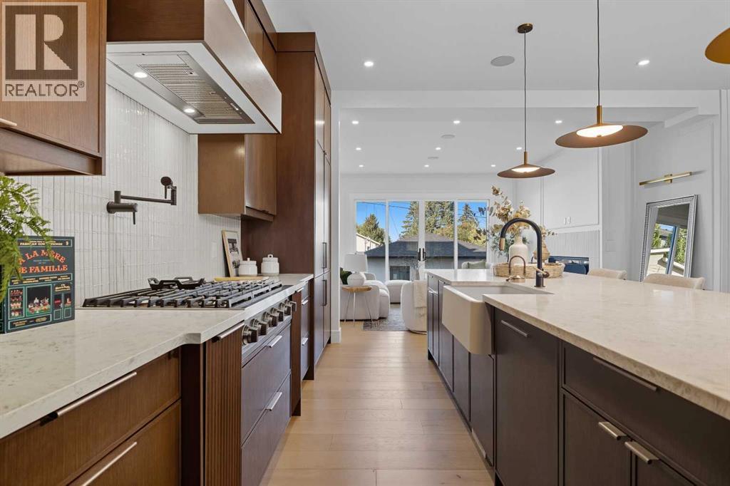 OPEN HOUSE ON SATURDAY, MARCH 14 FROM 2-4 PM!!! Perched on coveted 29th Avenue with UNPARALLELED CITY, DOWNTOWN & MOUNTAIN VIEWS amongst multi-million dollar homes, this exquisite, brand new 3+1 bedroom home is situated on a 33’x125’ lot & exudes the epitome of luxury, offering over 4500 sq ft of developed living space. The open, airy main level presents engineered hardwood floors, lofty ceilings & chic light fixtures, showcasing a grand foyer with floor to ceiling Rift cut oak cabinets & textured feature wall that leads to a kitchen that’s impeccably finished with chamomile butter quartz counter tops, large island/eating bar, fluted cabinets with spice drawers, corrugated tile backsplash, convenient pot filler & stainless steel appliance package. A walk-in butler pantry with extra utility sink & extra storage that’s perfect for storing small appliances is an added convenience. The spacious dining area with built-in hutch & 2 paneled beverage fridges, provides ample space to host family & friends. The living room is anchored by a feature fireplace & wainscoted feature wall. Completing the main level, is a handy mudroom with hexagon tile floors, built-in cabinets & hooks plus a 2 piece powder room. An elegant open riser staircase with glass inserts leads to the second level that hosts 3 bedrooms, a 5 piece main bath & laundry room with sink, lots of storage & hanging racks. The primary retreat is a true private oasis, featuring a sitting area with cozy double sided fireplace, to-die-for walk-in closet with laundry room access & zen-like 6 piece ensuite with heated floors, large vanity with dual sinks, relaxing freestanding soaker tub & rejuvenating steam shower. A third level loft with magnificent feature wall, wet bar & access to north & south decks with UNMATCHED MOUNTAIN VIEWS plus CITY & DOWNTOWN VISTAS is the ideal space for entertaining. A den/study area & 2 piece powder room are the finishing touches to the third level. Basement development includes a large fa mily/media room with wet bar & charming wine room – perfect for game or movie night. A dedicated home gym with glass doors, epoxy flooring, mirrored wall & electrical for a TV delivers the perfect setting early morning workouts. The fourth bedroom with walk-in closet & large spa-like 3 piece bath with steam shower complete the basement. Other notable features include built-in speakers on each level, wainscoting detail throughout plus roughed in A/C. Outside, enjoy aggregate walk-ways & private back yard with patio & access to the double detached garage with rough in for heat.. This outstanding inner city home is located close to trendy Marda Loop, excellent schools, shopping, public transit & has easy access to 33rd & 26th Avenues & Crowchild Trail. (id:6769)