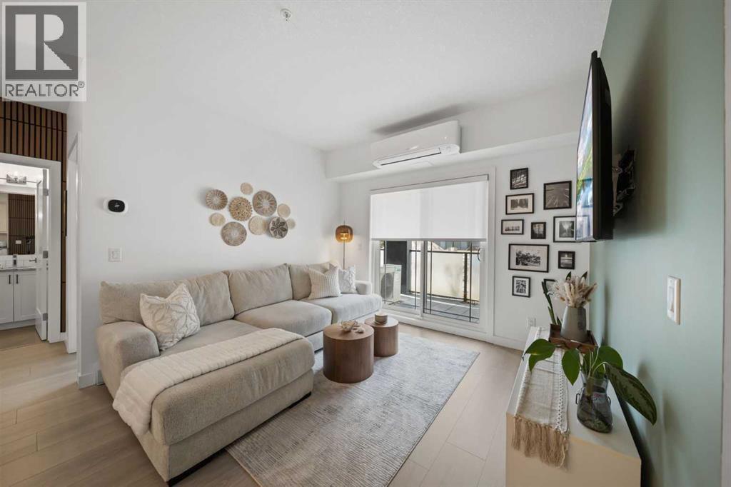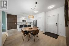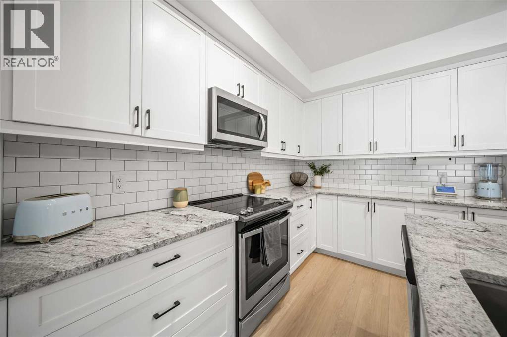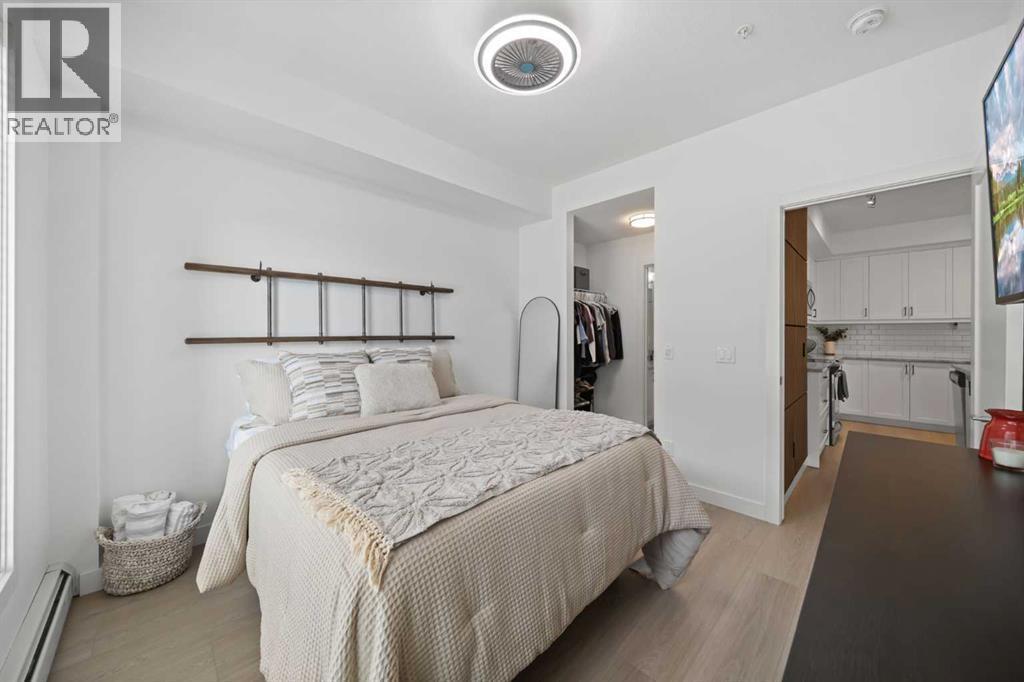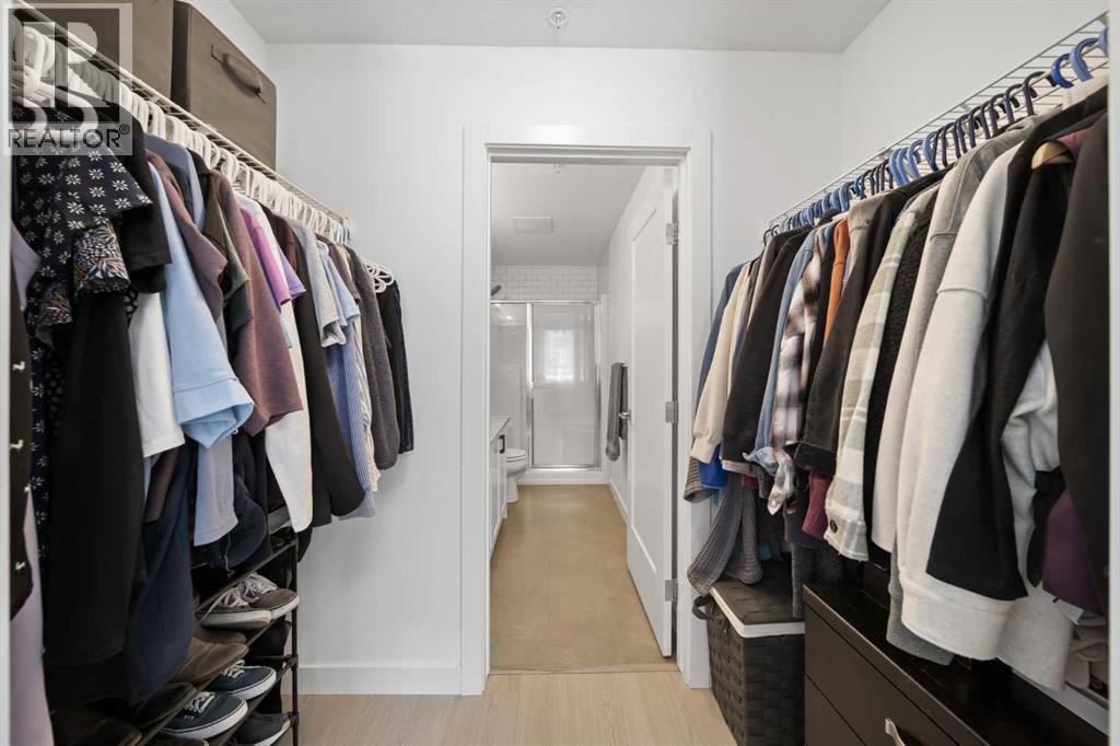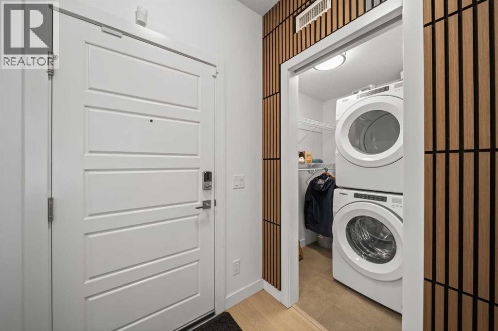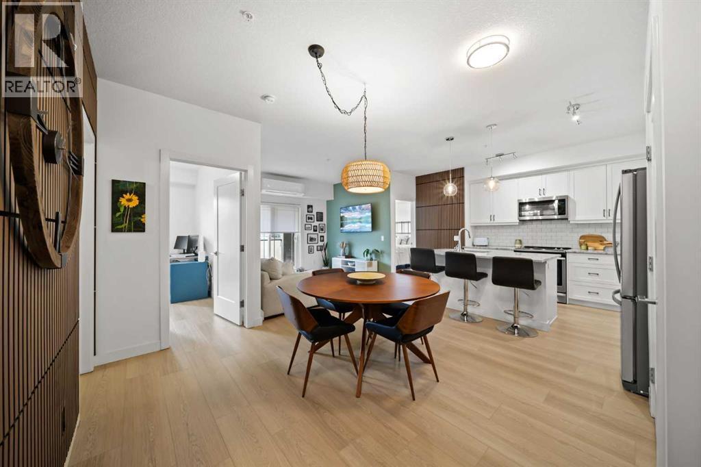 Welcome to The Regatta at Auburn Bay, perfectly located in one of Calgary’s most sought-after lake communities, with shops, cafés, pubs, groceries, and lake access all just steps from your door. This ground-level, 2-bedroom, 2-bathroom condominium offers the ultimate convenience—no stairs or elevators to navigate—and is fully turn-key and move-in ready. Built in 2020, and featuring boho-accentuated design, it’s one of the warmest and most thoughtfully designed homes in the building.At the heart of the home is the large, stunning kitchen, designed to impress. Quartz countertops, a classic subway tile backsplash, and a full Whirlpool stainless steel appliance package—including a convection oven and fridge with ice and water dispenser—create a space that’s both timeless and functional. The oversized island with breakfast bar is ideal for everyday living and entertaining, complete with a NEW Silgranit sink and touchless faucet (2025).FRESHLY painted in 2025 and featuring two walls with NEW wood slat acoustic panels (2026), NEW vinyl plank flooring (2025) flows throughout the unit and leads to one of two spacious primary bedrooms. The primary retreat features a walk-in closet and a spa-inspired ensuite with a double quartz vanity and an upgraded glass-enclosed stand-up shower, offering a clean, modern feel you’ll appreciate daily. Step outside to the large balcony with molded tile floors, perfect for morning coffee or relaxing evenings.Enjoy year-round comfort with central air conditioning, stacked in-unit laundry, heated titled underground parking (stall #113), a titled storage locker, and convenient bicycle storage. One pet of any weight is permitted on this ground level home (with board approval).This unbeatable Auburn Bay location puts everything within walking distance while offering the lifestyle bonus of lake access—a rare and highly desirable feature. (id:6769)