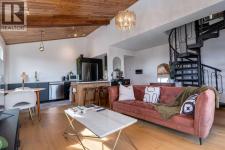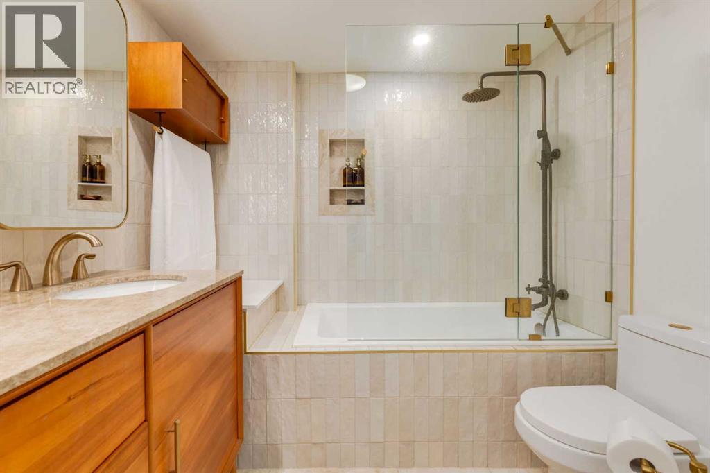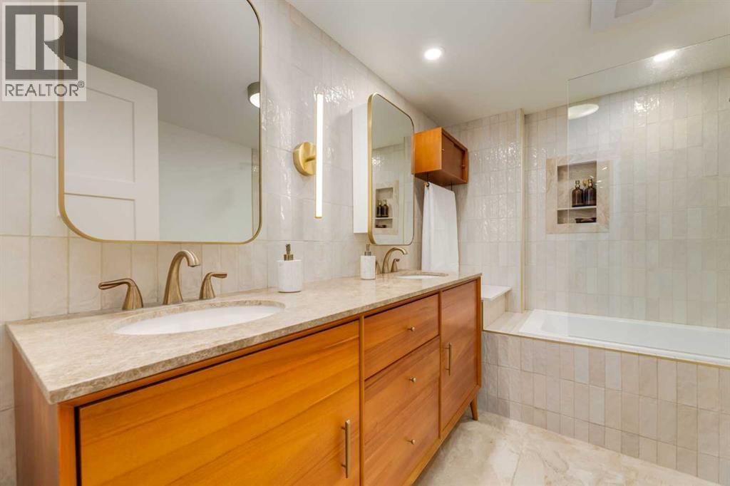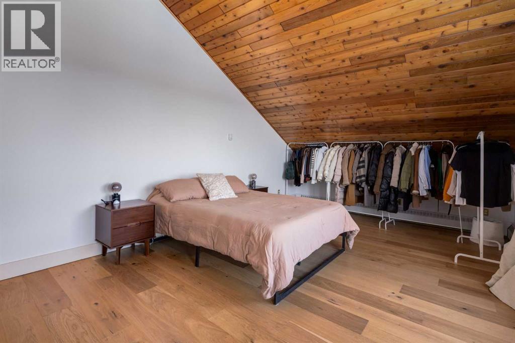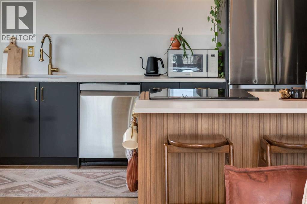 Rare loft-style two-storey condo with incredible downtown skyline views in Knob Hill Estates. Located in the heart of Bankview, just two blocks from 17th Ave SW, this bright and unique home offers a true inner-city lifestyle.The main level features brand new engineered hardwood flooring, tall slanted ceilings, and a bright open layout. The fully renovated kitchen includes stainless steel Samsung appliances and opens to the spacious living and dining area and access to a private balcony with city views.Two bedrooms and a beautifully renovated bathroom with Italian marble complete the main floor. A dramatic spiral staircase leads to the upper loft,with a wood-burning fireplace—perfect as a family room, office, or studio—with access to a second balcony overlooking downtown.Includes 2 underground heated parking stalls, storage, in-suite laundry, and a pet-friendly building. Minutes to downtown, Marda Loop, parks, and transit. (id:6769)