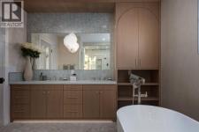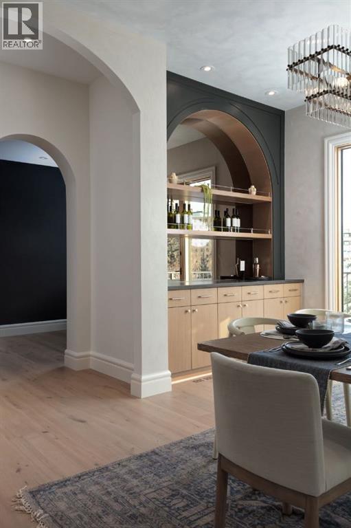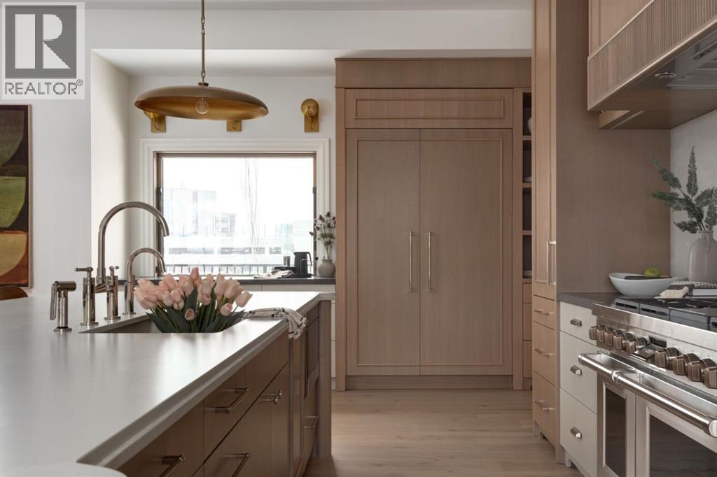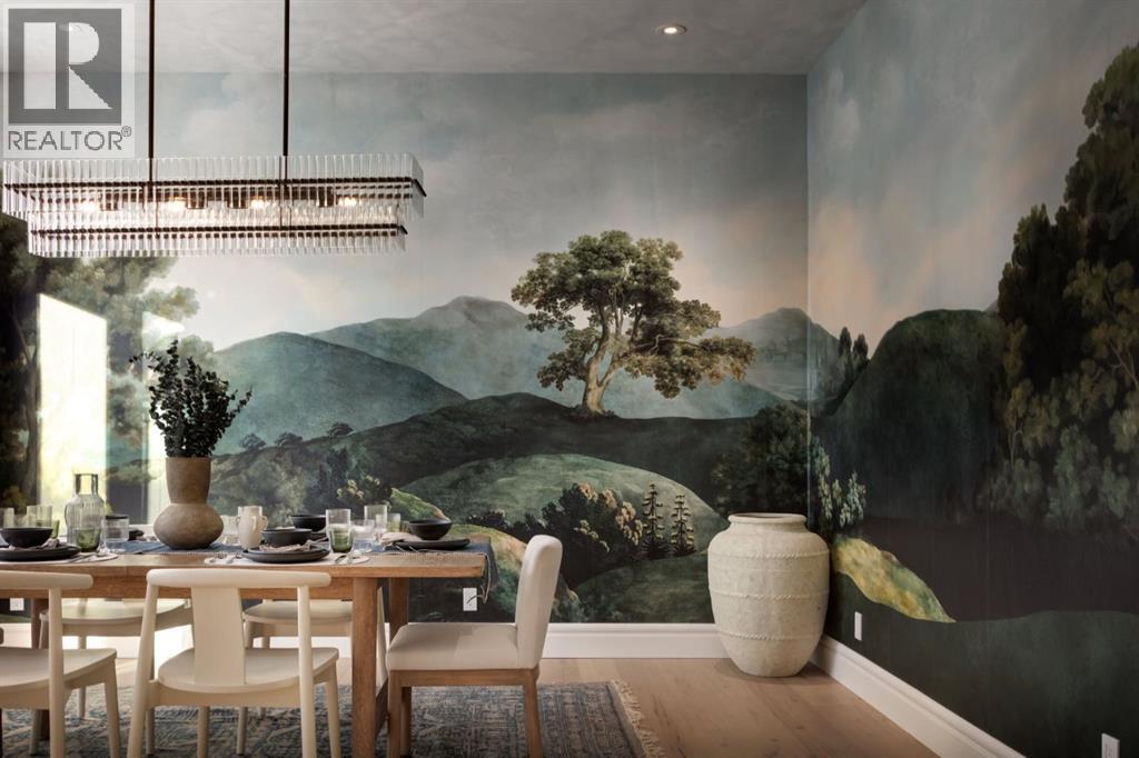 Welcome to this exceptional custom residence on prestigious Toronto Crescent in highly sought-after St. Andrews Heights. Perfectly positioned on an expansive 9,000 sq. ft. lot, this meticulously designed home offers over 6,000 sq. ft. of developed luxury living, crafted by Maxime Chin Designs with uncompromising detail and style. This remarkable property features an 80’ wide backyard, walkout basement, 63’ full-width balcony, attached triple garage, 5 bedrooms, 5.5 bathrooms, 4 gas fireplaces, bonus room with balcony, butler’s pantry, dedicated office, home gym, Sub-Zero/Wolf appliance package, designer lighting, and so much more. Enter through the grand foyer and be welcomed by soaring 10’ ceilings and expansive sight-lines. To the side, the inviting living room showcases beautiful built-ins and an oversized gas fireplace. LUX accordion doors open seamlessly to the massive covered balcony—complete with an outdoor fireplace—creating an exceptional indoor/outdoor living experience. The stunning kitchen features custom oak cabinetry, exquisite quartz surfaces, a 48” Wolf gas range, Sub-Zero refrigerator, and a spacious butler’s pantry with sink, dishwasher, and convenient shelving. The formal dining room is wrapped in bespoke wallpaper that extends to the limewash ceiling and includes a stunning bar area with direct access to the balcony. A private office, stylish powder room, and a well-appointed mudroom with built-in lockers complete the main floor. The luxurious primary suite features a beautiful arched window offering a glimpse of the downtown Calgary skyline. The spa-inspired 5-piece ensuite includes a freestanding reeded tub, large walk-in steam shower, marble backsplash & dual vanity. Also a spacious walk-in closet outfitted with custom built cabinetry rounds out the suite. The builder has left the primary room as a blank canvas and will work with the new homeowners to create a custom oasis. Three additional bedrooms (two with ensuites), a full main bath, and a laundry room with two sets of washers and dryers offer convenience and comfort. A spectacular bonus room crowns the upper level with 12’ ceilings, a gas fireplace, private balcony, built-in bar, and a dedicated homework station. The basement level is bright and open thanks to the large windows due to the walkout design, the lower level features a spacious rec room with gas fireplace, full bar, gym, 5th bedroom, and a serene 4-piece bath. Outside you will find the extraordinary 80’ wide backyard providing exceptional usable space, complete with a ground-level, covered patio and endless opportunities for outdoor enjoyment. This home must be seen in person to truly appreciate the craftsmanship, thoughtful design, and rare combination of luxury and location. (id:6769)