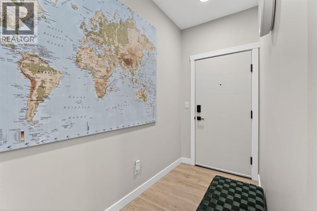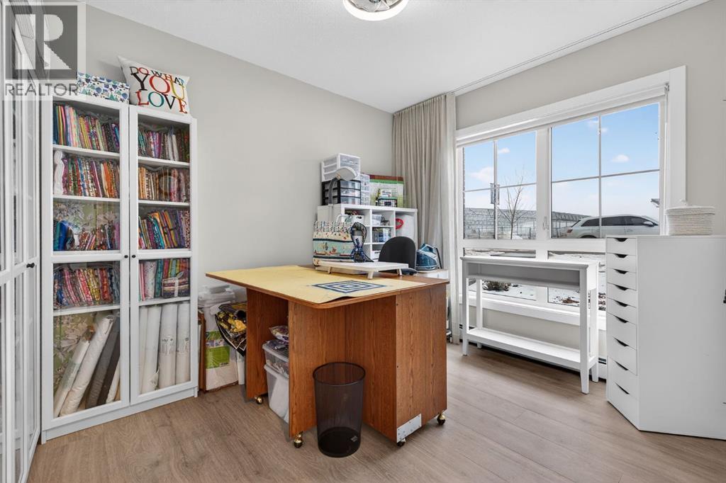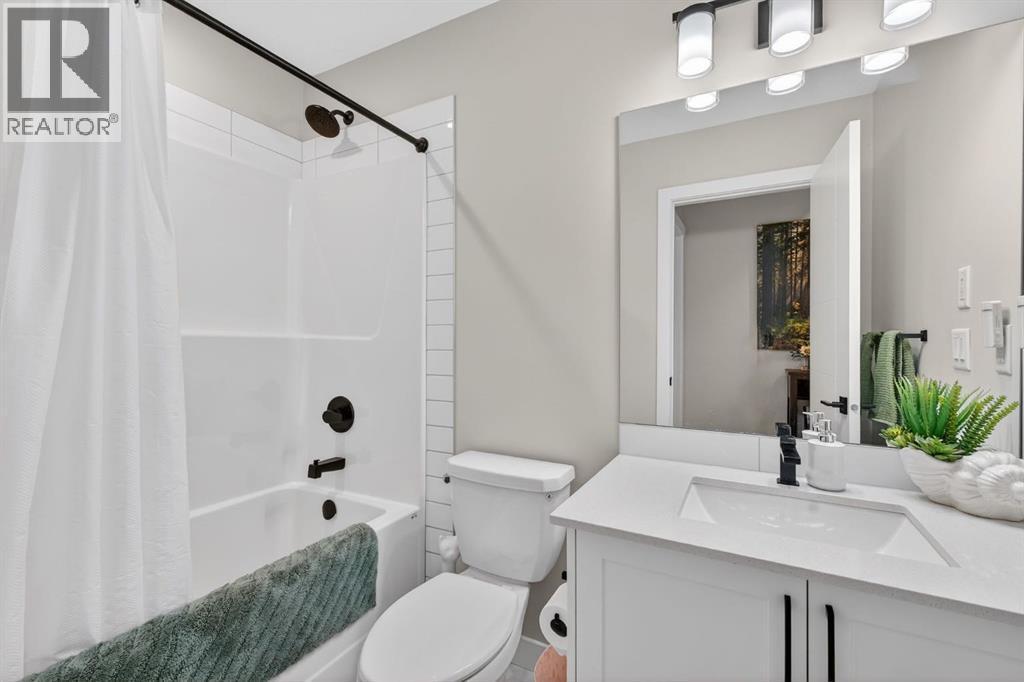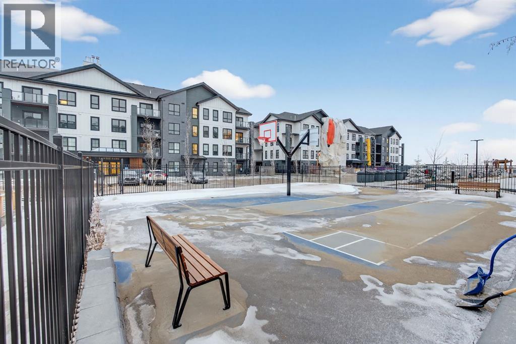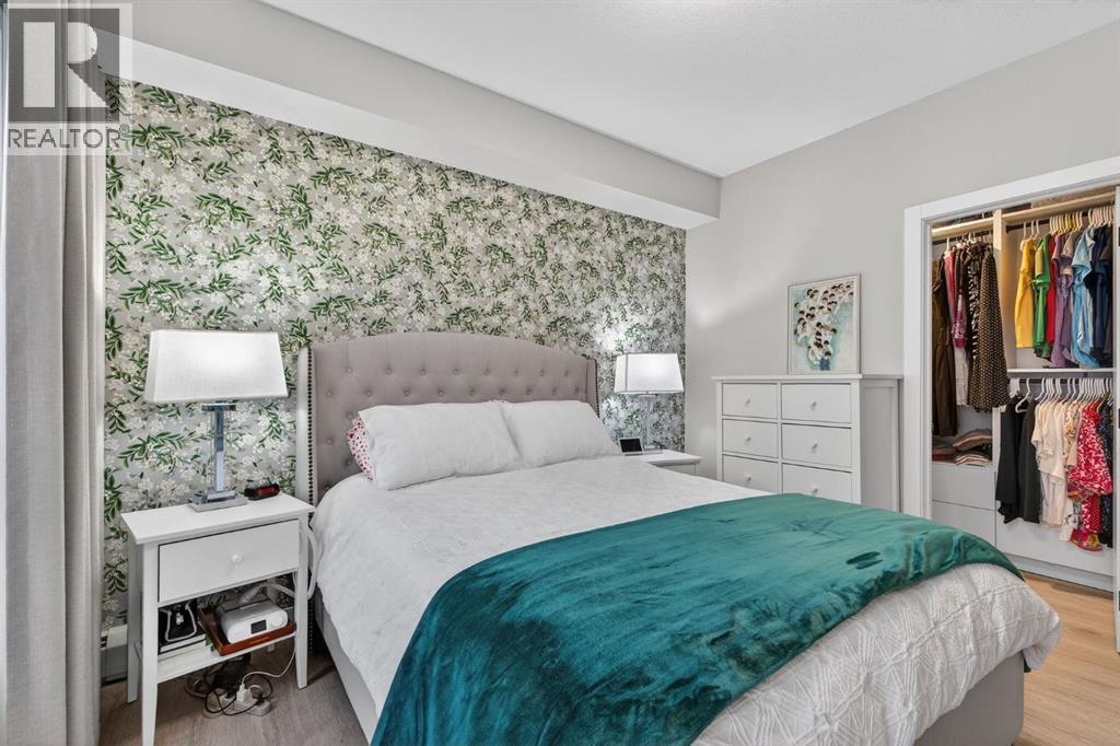 Welcome to this upgrade packed main floor 2 bedroom, 2 bathroom corner condo in the desirable Lawrie Park building in Wedderburn, Okotoks. Partner’s biggest floor model coming in over 1000sqft. This bright home with plenty of windows, features an open concept layout with a modern white kitchen, quartz countertops, large island, and durable upgraded laminate flooring throughout the main living space. The spacious primary bedroom includes a full ensuite and generous closet space with built ins, while the second bedroom is perfect for guests or a home office. Enjoy in suite laundry, air conditioning, and a large wrap around porch, great for pets, and you are just across the street from the dog park. And the property offers $8k worth of track curtains throughout. This pet-friendly building has a heated underground titled parking stall, an assigned storage locker, and low condo fees. Conveniently located close to walking paths, all the amenities you need and easy access to Calgary. Move in ready and maintenance free living at its best! Call your favourite realtor to book a showing today. (id:6769)
