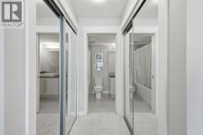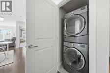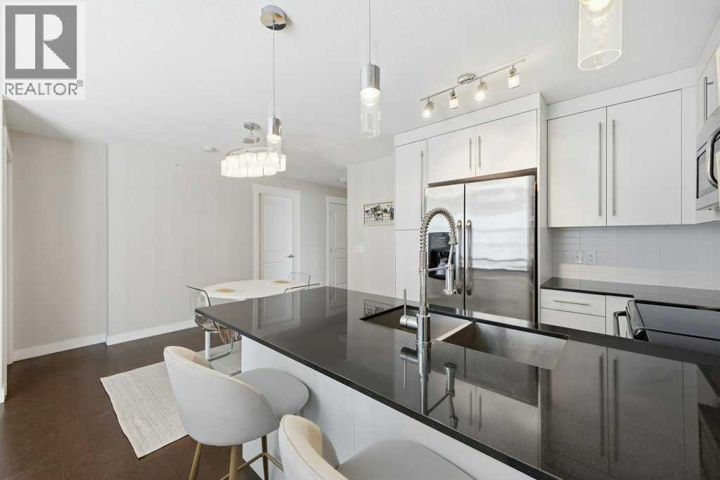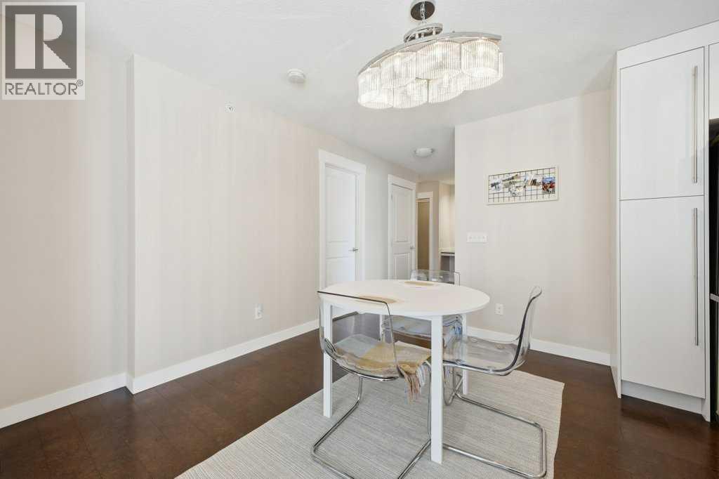 This is a top-floor corner unit and that matters. No one above you, no noise from the hallway on two sides, and windows wrapping the south, southeast, and southwest. Natural light from morning through evening. It's one of the quieter positions in the building, and one of the larger floor plans available. The living room is generous for a condo this size. There's room for a proper sofa, a coffee table, and still space to move around. The cork flooring runs through the main living areas. It's softer underfoot than hardwood and keeps the space feeling warm. This isn't a unit where you feel like you're living in a box. The corner layout gives you that extra breathing room that most condos in this price range just don't have. The kitchen sits open to the living and dining area with no walls cutting it off and no awkward transition. Upgraded appliances, a microwave hood fan above the stove, good counter space, and enough cabinetry to actually store things. The layout is practical and the flow makes sense whether you're cooking for one or having people over. There's also a built-in desk just off the kitchen area, It keeps a workspace tucked in without eating up a whole room. The dining area sits between the kitchen and the living room, big enough for a full table and chairs, with natural light coming in from multiple directions. Morning coffee here with the south sun coming through is a pretty good way to start a day. The primary bedroom comfortably fits a king bed with nightstands on both sides and still leaves you room to move. Dual closets mean storage isn't an issue. The 4-piece ensuite is off the primary and well-sized. It's your own bathroom, private to the bedroom, which matters when you have guests or a roommate using the second bath. The second bedroom is also a solid size, fits a queen easily, and works just as well as a home office or flex space if you don't need the second bedroom full time. It has direct access to the second full 4-piece bathroom in the hall. In-suite laundry is included, washer and dryer in the unit. Step out onto the south-facing balcony. You've got south and west exposure, which means afternoon and evening sun. One titled, heated underground parking stall is included. Assigned storage locker also included, separate from the unit, on the parkade level. Condo fees cover heat, water. Electricity is the only utility you're paying separately. Outside the front door, you're in Mahogany, one of the few lake communities in Calgary where the lake access is actually good. Residents get two beaches, the Beach House, tennis courts, a skating rink in winter, and over 35 km of pathways that wind through the wetlands. It's a community where people actually use the amenities. Seton is a short drive with a grocery store, restaurants, coffee shops, a Cineplex, and South Health Campus all within a few minutes. Deerfoot and Stoney Trail are both easily accessible. (id:6769)