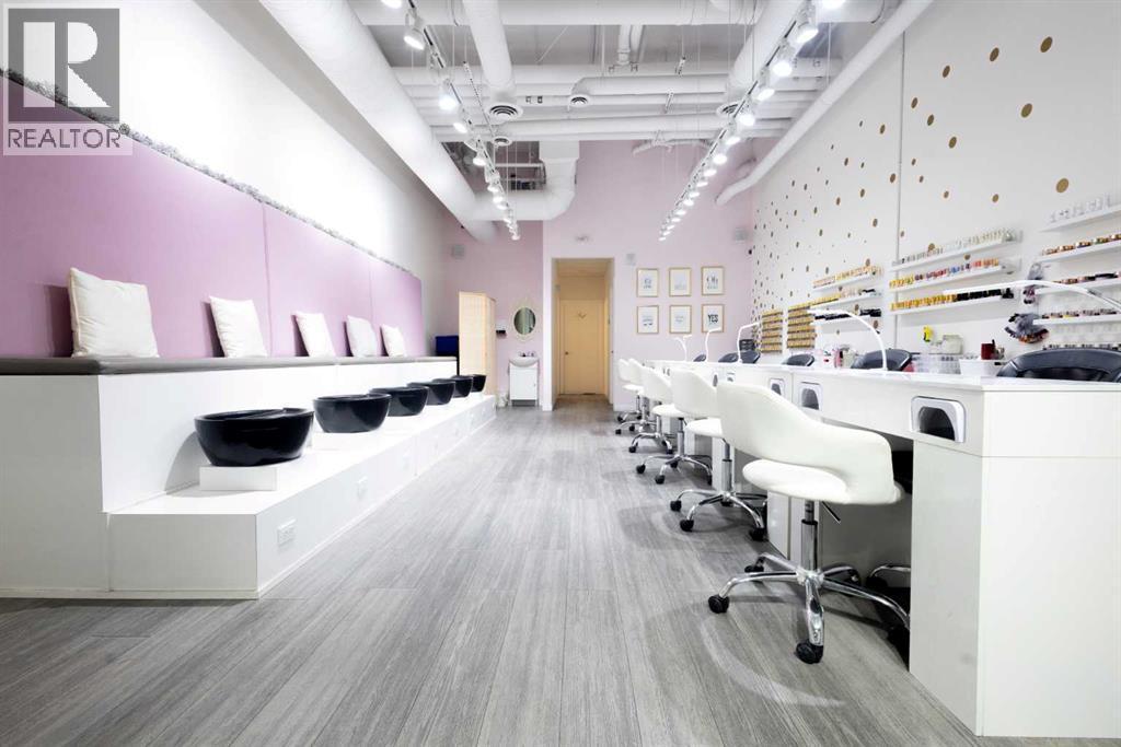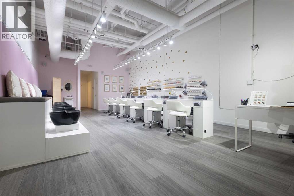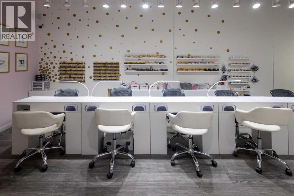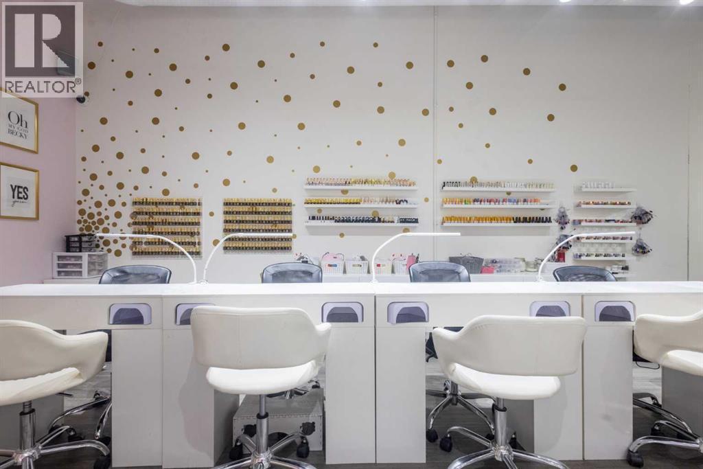 Exceptional opportunity to acquire a fully built-out, turnkey Nail Salon & Spa in a prime Calgary location. This stunning, modern salon has been designed and finished to an exceptionally high standard, offering an immediate income-generating operation for the right buyer with zero build-out costs.The main floor commercial space with high traffic adjoining businesses benifits this salon which features 6 professional manicure stations along a sleek top bench with individual LED lamps and UV nail dryers, plus a dedicated pedicure spa row with 6 luxury black basin stations set against gorgeous pink upholstered seating — creating an elevated, worthy client experience that drives repeat business and referrals.The salon also includes a private treatment room currently equipped for lashes, waxing, and esthetic services, opening multiple additional revenue streams beyond nail care. An extensive wall-mounted gel polish display with 100+ colours is available, a fully stocked back-of-house prep and storage area, in-suite washer/dryer, and a clean accessible washroom complete this exceptional package.Stylish gold polka-dot accent walls, gallery art, industrial-chic exposed ceilings, and warm track lighting create an atmosphere that clients love — and keep coming back to.Key Features:·Primemain floor street frontage location in SW Calgary — high foot traffic, premium demographic·6 manicure stations + 6 pedicure spa basins·Private treatment room (lashes, waxing, facials & more)·100+ gel polish shades displayed are available·In-suite washer/dryer·Accessible washroom·Full back-of-house storage & prep·Turnkey — walk in and operate from Day 1·Priced to sell at well below build out cost — makes this a outstanding valueAt the listed price this is an incredibly compelling deal. A build-out of this quality in Calgary would cost several times this asking price — the new owner is acquiring not just a business, but a fully finished, revenue-ready space at a fr action of replacement cost. Opportunities like this do not last. Contact the listing agents today for full details, lease information, and to arrange a private showing.All inquiries subject to NDA. Do not approach staff or clients directly. (id:6769)