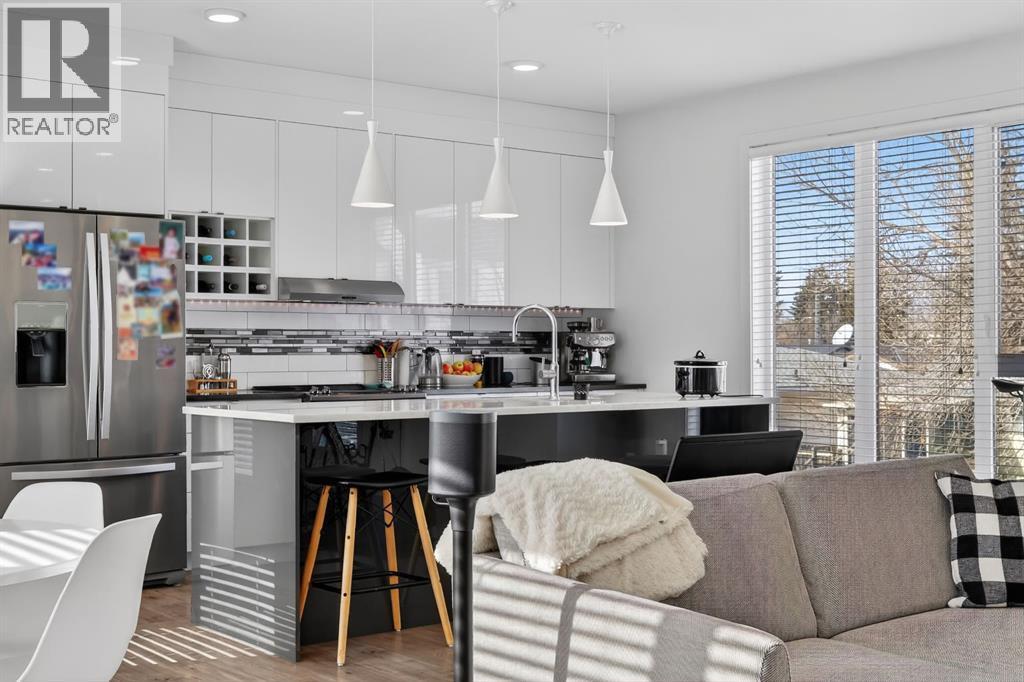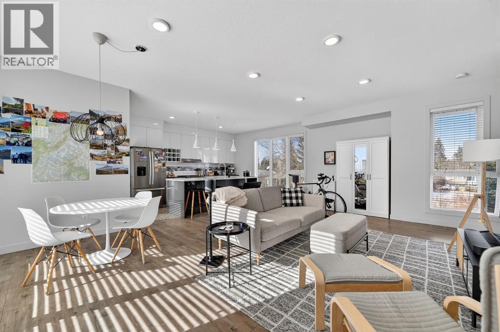Welcome to this exceptional end-unit townhouse in the established and historic community of Bowness. Offering the rare combination of an end unit location and an attached double garage, this home provides both added privacy and convenience. The spacious lower level welcomes you with a bright foyer and a convenient 2-piece bathroom, creating a functional entry space for guests and daily living. Upstairs, the main living area is flooded with natural light thanks to the end-unit positioning. The open-concept layout features a beautiful living room, a generous dining area, and a well-appointed kitchen complete with an island, stone countertops, and stainless steel appliances. The upper level offers a spacious primary bedroom with a walk-in closet and private ensuite. Two additional well-sized bedrooms, a full bathroom, and a dedicated laundry room complete the upper floor, providing excellent functionality for families or professionals alike. Enjoy outdoor living with a balcony off the main floor and a patio off the lower level that opens directly onto a playground, an ideal setting for young families. Perfectly situated, this home is just minutes from multiple retail plazas offering grocery stores, cafes, and dining options. You are also a short drive to Bowness Park, one of Calgary’s most beloved parks, with access to the scenic Bow River Pathway. This is a fantastic opportunity for young families or professionals looking for comfort, convenience, and an outstanding location. (id:6769)