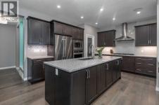 Steps from the Bow River Pathway System and surrounded by green space, this beautifully developed Riviera home offers a rare combination of privacy, nature, and space. Tucked into one of Cochrane’s most peaceful pockets in the community of River Song, this sought-after neighbourhood is known for its scenic walking trails, abundant wildlife, and quiet streets while remaining just minutes from schools, parks, shopping, and everyday amenities.Built in 2018 and offering over 3,600 sq ft of developed living space, this spacious home features 6 Bedrooms and 4 Bathrooms, creating an ideal layout for growing families, guests, or multiple Home Offices.A welcoming Foyer opens into the bright and open Great Room, where oversized windows flood the Main Floor with natural light. The chef-inspired Kitchen is thoughtfully designed for both everyday living and entertaining, featuring KitchenAid Chef Series Appliances, including a Gas Cooktop, Built-In Oven, Hood Fan, and Dishwasher. Dual Islands provide exceptional prep space, storage, and seating, making this Kitchen the natural gathering place for family and friends.The Dining Area flows into the inviting Living Room, where a cozy Gas Fireplace creates the perfect setting for quiet evenings or larger gatherings. Built-In Speakers throughout the home, along with Outdoor Speakers on the deck, enhance the atmosphere for entertaining.Step outside to the impressive 20’ x 18’ Composite Deck, overlooking the treed backyard that provides privacy and a peaceful outdoor setting. Designed for relaxing evenings and summer gatherings, the deck is also wired for a future Hot Tub.Upstairs, the Primary Bedroom offers a spacious retreat with room for a King-sized bed and seating area. The spa-inspired Ensuite features Dual Vanities, a Makeup Counter, Large Soaker Tub, Stand-Up Shower, and two generous Walk-In Closets.A centrally located Bonus Room provides the perfect space for movie nights or a family lounge. Two additional Bedrooms, a Full Bathroom, and convenient Upper-Level Laundry complete the second floor.The Fully Developed Basement expands the home to six Bedrooms, adding three additional Bedrooms and a Full Bathroom—perfect for larger families, teenagers, guests, or flexible space such as a Gym, Office, or Hobby Room. Basement bedroom windows were replaced in 2025 with Triple-Pane Units, improving comfort and efficiency.Additional highlights include Central Air Conditioning installed in 2024, Tankless Hot Water, Built-In Sound System, Permanent Soffit Lighting, durable James Hardie Fiber-Cement Siding, and an Oversized Double Attached Garage with Epoxy-Coated Floors.Enjoy Riviera’s pathway lifestyle while living just minutes from schools, shopping, and Cochrane’s vibrant downtown. (id:6769)