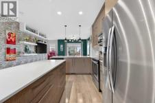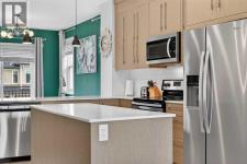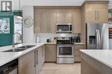 ** NO GST PAYABLE ON THE PREOWNED HOME ** Beautifully curated, Almost Brand New Feel, and immaculately maintained by the original owner ** INDOOR PARKING - HEATED ATTACHED SIDE BY SIDE 2 CAR GARAGE plus easy front street parking** This trendy 4-bedroom 3-story 1586+ SF townhome end unit is ideally located in the community of Cornerstone and close to the many amenities - transit, parks, shopping, pathways, dog parks, daycare and FUN! The ground floor features a sizable main entrance, a bonus den/office/bedroom, storage, and convenient access to your garage. The spacious upper main living area includes beautiful laminate wide plank flooring, a large living room, a stylish kitchen with quartz counter tops/upgraded tile kitchen backsplash/rich wood style cabinets with trims/upgraded stainless steel appliances (smooth top stove, OTR microwave, quiet dishwasher, french door fridge with front water dispenser) plus an extended peninsula island with undermount sink and a flush eating bar.. A sizeable outdoor balcony is off the family-approved living room and offers a BBQ area with a gas line. The upper floor features three good-sized bedrooms, a laundry room and two full bathrooms. BONUS: The primary bedroom layout features a private en-suite and a large walk-in closet. This trendy townhome features a modern décor palette and offers everything you need, with a functional yet stylish design. A possession date of July 24, 2025, is available! Call your friendly REALTOR(R) to book a viewing! (id:6769)