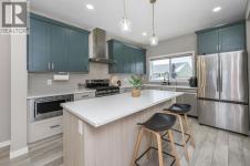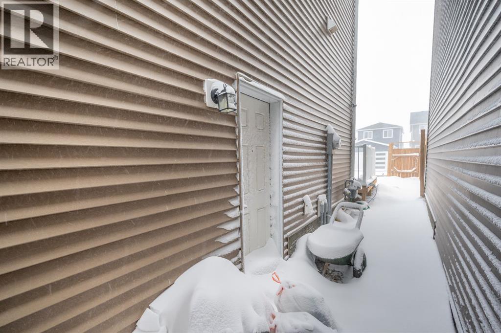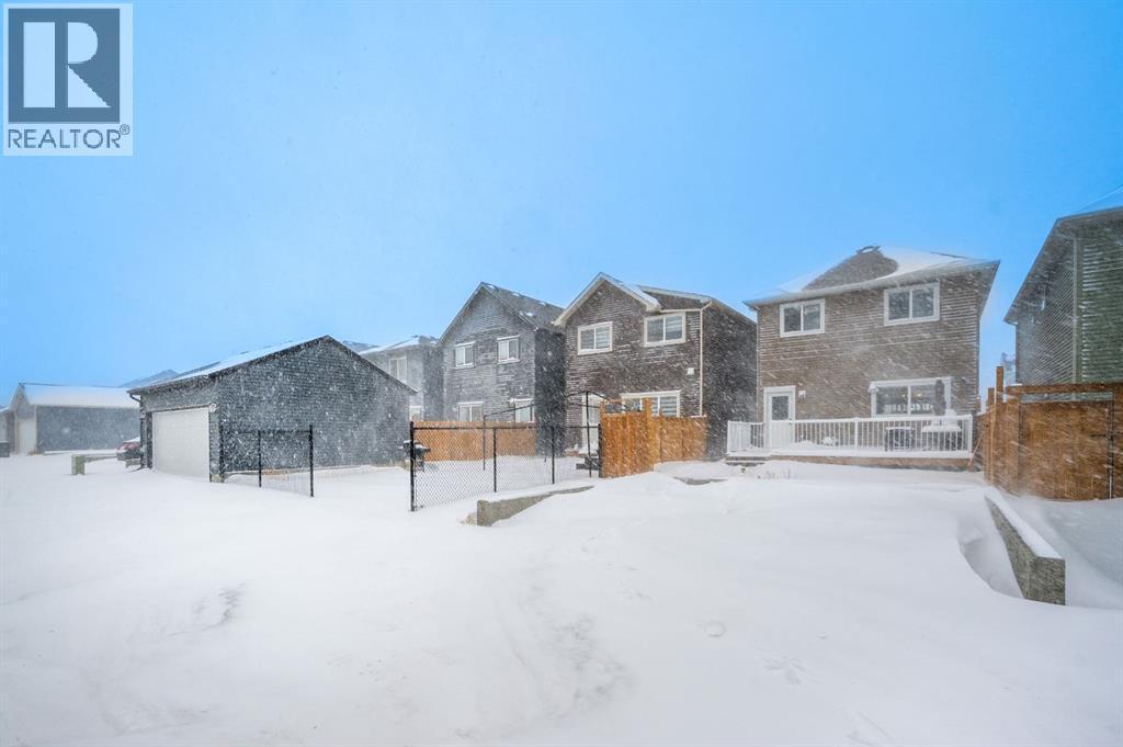 Welcome to this beautiful 3-bedroom, 2.5-bath laned home in the vibrant community of Cobblestone Creek. Only one year old, this modern home offers a functional layout, stylish upgrades, and excellent future potential. The main floor features a bright open-concept floor plan, perfect for both everyday living and entertaining. The fully upgraded kitchen boasts modern finishes, ample cabinetry, and quality appliances, flowing seamlessly into the spacious dining area and comfortable living room. A convenient half bathroom completes the main level.Upstairs, you'll find three well-sized bedrooms, including a primary suite with its own full ensuite bathroom. An additional full bathroom serves the other bedrooms, and the upper-floor laundry room adds everyday convenience. The unfinished basement comes with a separate side entrance, offering great potential for future development or customization. Outside, the backyard is fully set up and ready to enjoy, featuring a finished deck, fencing, and a two-car parking pad at the rear. Located in the growing community of Cobblestone Creek in Airdrie, this brand-new, young and vibrant neighborhood offers easy access to parks, schools, shopping, and everyday amenities—making it an ideal place to call home. (id:6769)