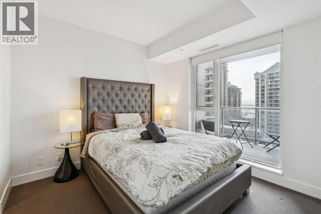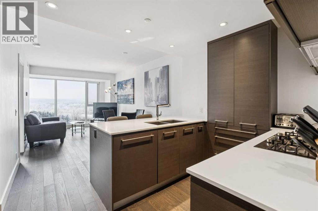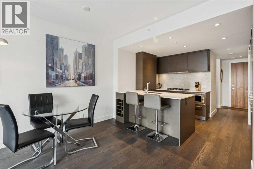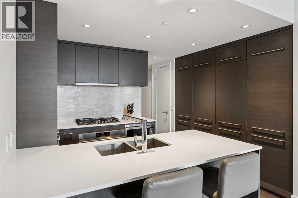 Experience refined urban living with unobstructed river views at Avenue West, one of Calgary’s premier concrete residences in the Downtown West End. This sophisticated 1 Bedroom plus Den with 1.5 Bathroom home just under 700 sq.ft. showcases a bright, open concept design with floor to ceiling windows, built in features and central air conditioning throughout. The chef inspired kitchen is elegantly appointed with full height flat panel wood cabinetry, quartz countertops, a gas range, integrated and stainless steel appliances and a generous island, perfect for both entertaining and everyday living. The serene bedroom offers ample of closet space, tranquil retreat complemented by a sleek, modern 5 piece ensuite and in suite laundry, titled underground parking stall and titled storage locker. Step onto the private balcony and enjoy peaceful city and river surroundings. Avenue West offers residents an exceptional level of service and amenities including a beautifully designed concierge attended lobby, state of the art fitness centre, secure entry and professional management. Ideally located just steps from the Bow River pathway system, LRT, Kensington, Eau Claire and Calgary’s finest dining and boutique shopping, this is elevated downtown living at its finest. Some of the furniture can be included in the sale, book your private showing today! (id:6769)