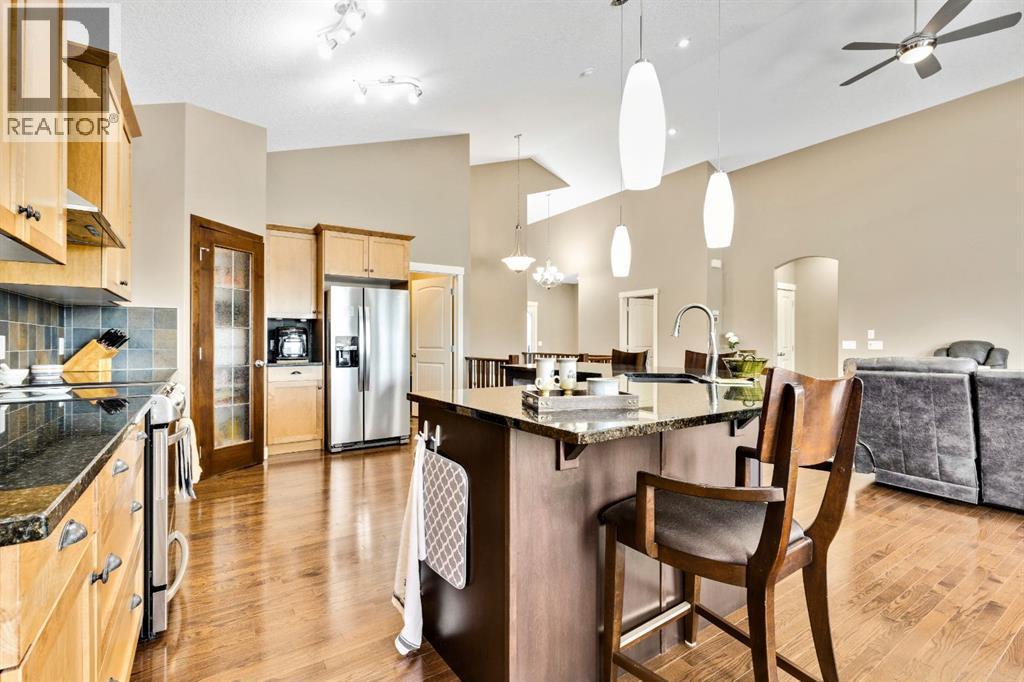 Welcome to this beautifully maintained executive bungalow tucked away in a quiet cul-de-sac and backing onto peaceful open space with no direct rear neighbours. Offering the perfect balance of comfort, style, and functionality, this home is designed for both everyday living and effortless entertaining. Featuring 3 spacious bedrooms, an office/bonus room and 3 bathrooms, the thoughtfully designed layout provides generous living space on both levels. The main living area showcases soaring vaulted ceilings, rich hardwood floors, oversized windows, and a stunning gas fireplace that creates a warm and inviting focal point. The kitchen is truly the heart of the home, complete with granite countertops, a large central island, stainless steel appliances, a walk-in pantry, and abundant cabinetry. It flows seamlessly into the dining and living areas, making it ideal for hosting family and friends. The primary suite offers a relaxing retreat with a beautiful 5-piece ensuite featuring a deep soaker tub, separate glass shower, and generous vanity space. Conveniently located on the main level, the separate laundry room is both spacious and functional, featuring a sink, extensive counter space, and plenty of storage to keep everything organized. The fully developed walkout basement expands your living space with a second large family room and another gas fireplace - perfect for movie nights, guests, or quiet evenings at home. Enjoy exceptional outdoor living with a deck off the main level, ideal for morning coffee or evening barbecues, as well as a covered patio below overlooking serene open green space, the setting offers privacy and peaceful views year round. Additional highlights include a double attached insulated garage, quality finishes throughout and pride of ownership that is evident from top to bottom. Cozy yet refined, sophisticated yet welcoming. This is a home that truly offers luxury you can live in. (id:6769)