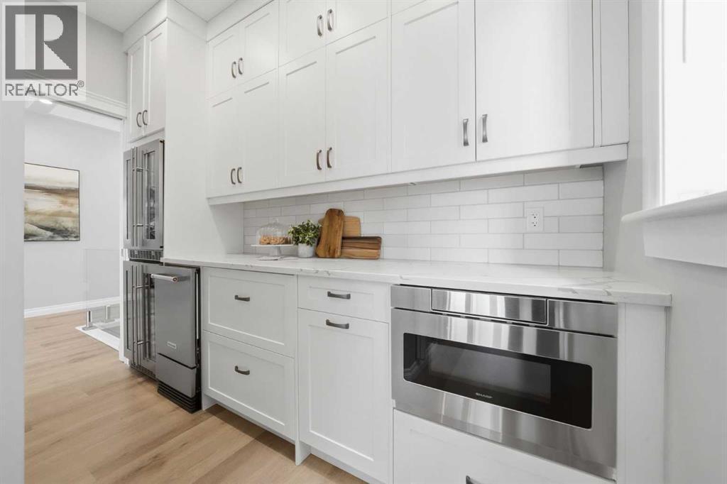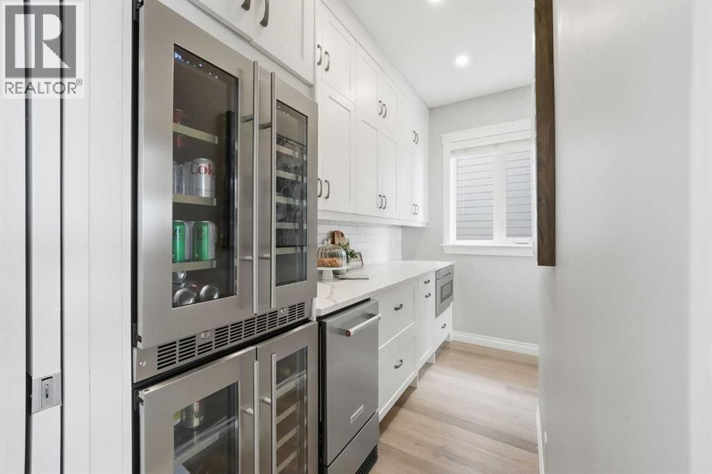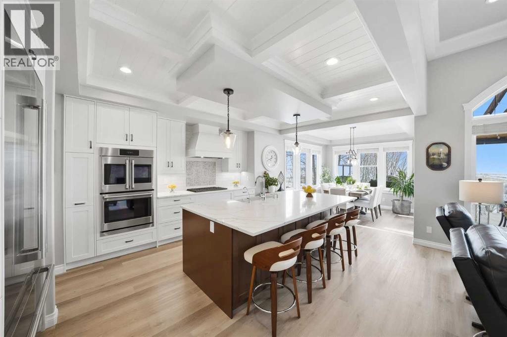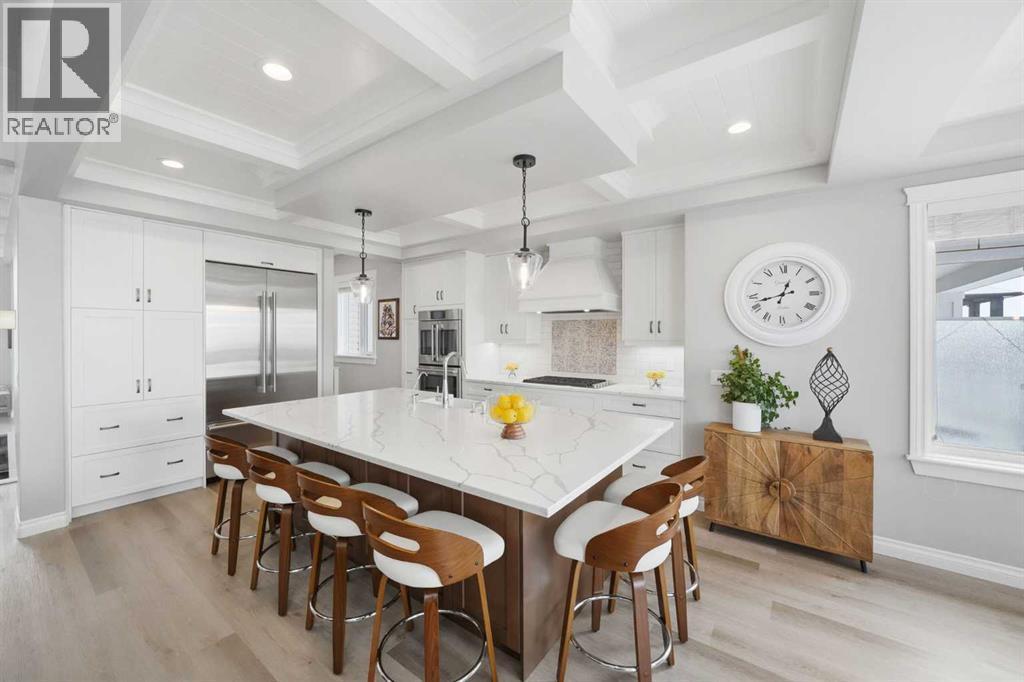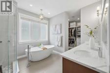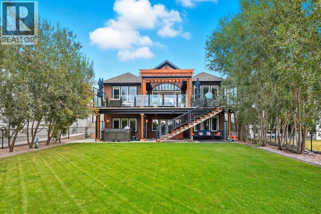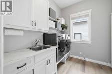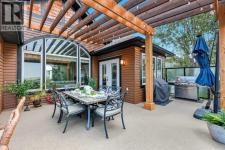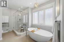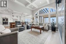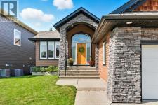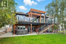Welcome to this beautifully updated bungalow in the desirable community of Hillview Estates. Built in 2008 & extensively renovated in 2024/2025, this exceptional home offers over 3400 sf developed space with a fully finished walkout basement. Meticulously maintained & smoke-free, the property combines thoughtful design, high-end finishes, & modern upgrades throughout. The bright main floor features vaulted & coffered ceilings, new luxury vinyl plank flooring, new carpet, & upgraded LED lighting. The welcoming entry includes a walk-in closet & elegant glass railings. A private main floor den with custom desk & built-in cabinetry provides an ideal home office. The fully renovated kitchen is designed for both everyday living & entertaining, featuring custom cabinetry, a custom backsplash, pull-out pantry, reverse osmosis system, & a stunning apron sink imported from Turkey. Premium appliances include Café Series ovens, a JennAir 48" six-burner gas range with custom hood, JennAir refrigerator, & Bosch dishwasher. The dining area is surrounded by windows & opens through garden doors to the deck. A walkthrough "butlers" pantry adds exceptional functionality with a beverage refrigerator, built-in ice maker, microwave, coffee bar, recycling centre, & additional storage. The inviting living room features a new gas fireplace, custom built-in shelving & storage, & surround sound speakers. The private main floor primary suite offers a garden door to the deck, a spacious walk-in closet with custom built-ins, & a luxurious 5-piece ensuite with soaker tub, separate shower, & Toto bidet toilet. Additional main floor highlights include a powder room & upgraded laundry room with new LG ThinQ washer/dryer (2025), raised storage, & extra cabinetry. The fully finished walkout basement provides excellent additional living space with a large entertainment area featuring surround sound & custom bar with sink, glass rinser, & beverage fridge. Three spacious bedrooms with large windows & gen erous closet space, a 4-piece bathroom, an additional half bath, & a dedicated workout room with glass sliding doors, mirrors, & rubber flooring. A pantry, IT room, & ample storage complete the lower level. Outdoor living is designed for entertaining with an extended deck featuring glass railings, a gas fireplace seating area, granite eating bar, dining space, & dedicated BBQ area. Duradek flooring, privacy glass, three gas outlets, & a pergola with remote-controlled sunscreen. The lower patio includes a large hot tub with privacy glass. The beautifully landscaped yard features mature trees & shrubs, a firepit area with custom black stone landscaping, underground sprinklers, a shed, & direct access to the WID walking path. Major upgrades include a tankless water heater (2024), new furnace & A/C (2025), asphalt shingles (2025), new vinyl siding on three sides (2025), new gutters (2025), GEM exterior lighting. Finally, a heated 21'4" x 24' garage with epoxy coating, oversized parking pad for three vehicles. (id:6769)