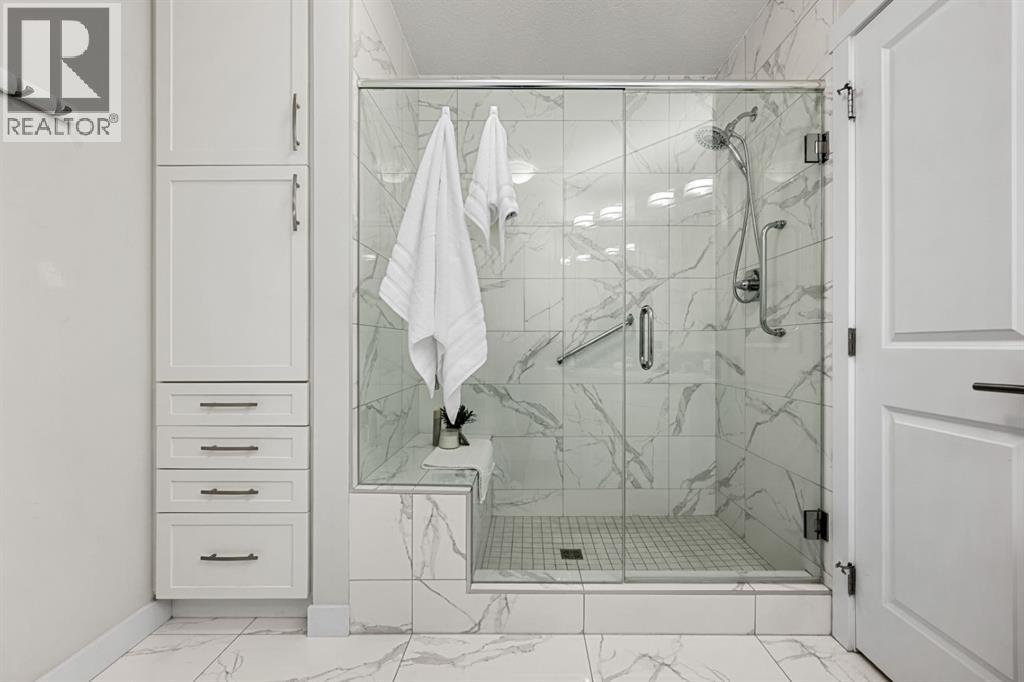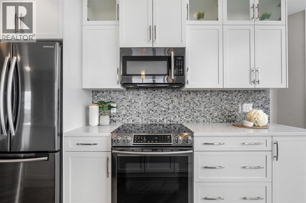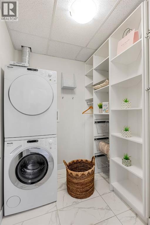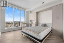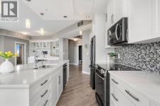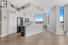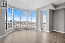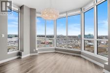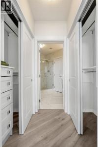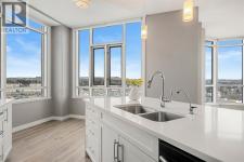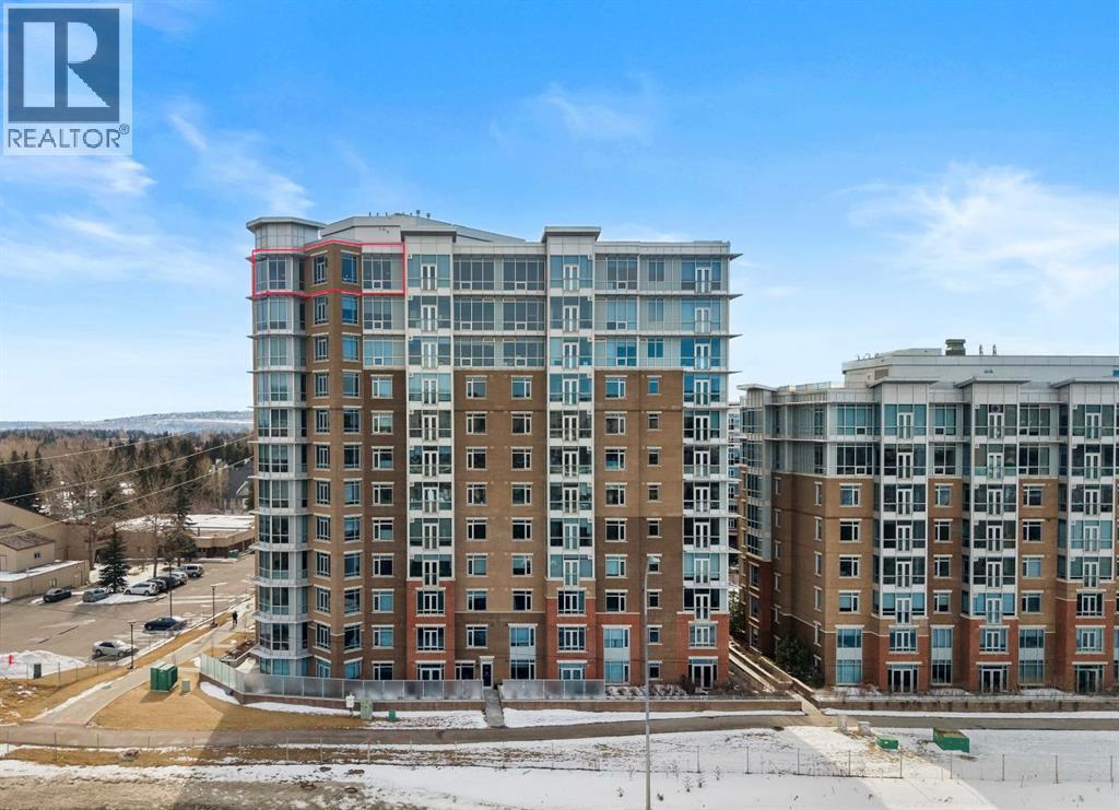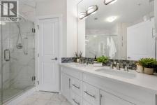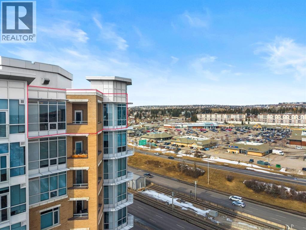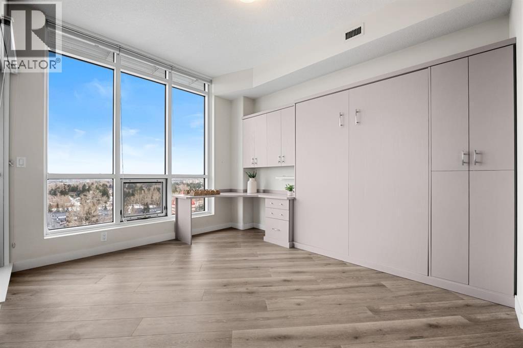 Welcome to penthouse living at the Groves of Varsity. Situated on the top floor, this corner suite captures unobstructed downtown views, beautiful natural light, and a layout that truly lives well day to day. With 10-foot ceilings and expansive windows, the space feels open and bright throughout. The private balcony, included in only select corner units, offers a gas BBQ hookup and two separate access points: one from the main living area and another from the secondary bedroom. It’s the perfect spot for morning coffee, fresh air, or evening city views. This thoughtfully designed 2-bedroom + den home offers exceptional privacy, with both bedrooms featuring walk-through closets and their own ensuite bathrooms. The primary suite includes double sinks and a glass shower, while the secondary ensuite offers a tub/shower combination, making it ideal for guests. A separate 2-piece powder room is a rare and practical addition for condo living. The kitchen is finished with quartz countertops, induction cooking, sleek cabinetry, and quality appliances. Luxury vinyl plank flooring runs throughout, complemented by custom built-ins and well-planned storage solutions. The secondary bedroom is equipped with a built-in Murphy bed and integrated desk, allowing the space to transition seamlessly between guest room and home office. Hunter Douglas window coverings and dual-zone central A/C ensure comfort year-round, and the in-suite Miele washer and dryer add everyday convenience. This unit includes two titled underground parking stalls that are side-by-side (not tandem), along with a rare double-sized assigned storage locker. Dedicated bike storage is also available in the parkade. Built with steel and concrete construction, the building offers a solid and quiet living environment. Residents enjoy rooftop amenities including a fully equipped fitness centre, steam rooms, an owner’s lounge that hosts yoga classes, and a large terrace with BBQ areas. An attached professional building prov ides exceptional convenience with a pharmacy, medical and dental clinics, and a coffee shop just steps away. Groceries, restaurants, shopping, banking, and the LRT are all within walking distance. Top-floor, corner location, skyline views, side-by-side parking — a rare opportunity in one of NW Calgary’s most sought-after buildings. (id:6769)