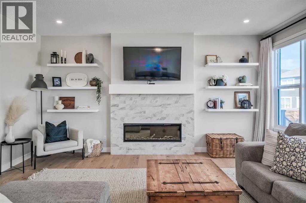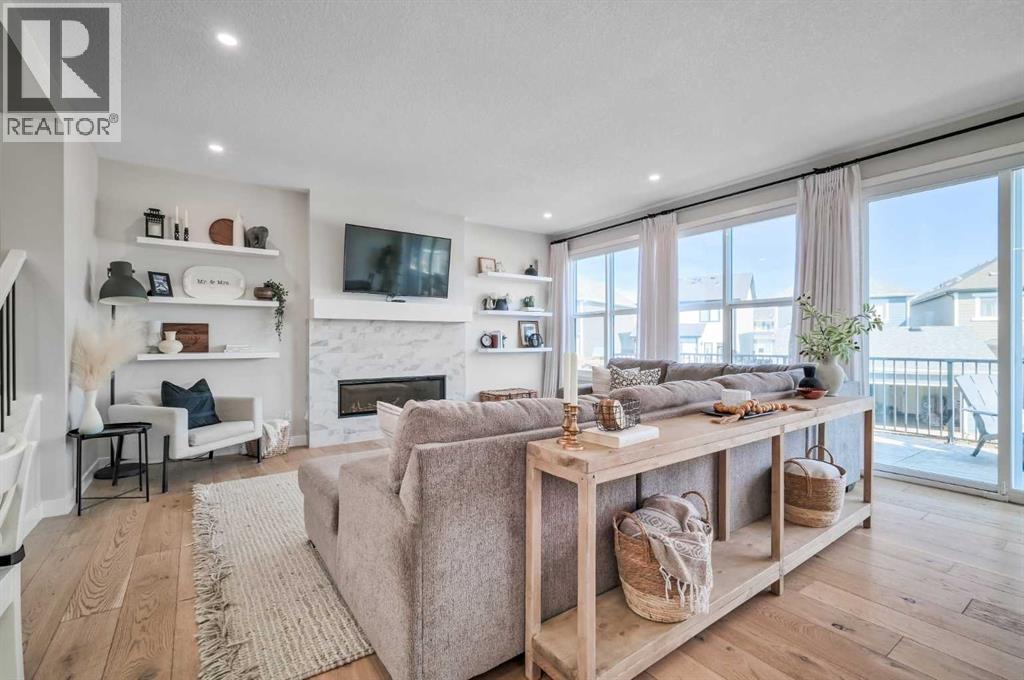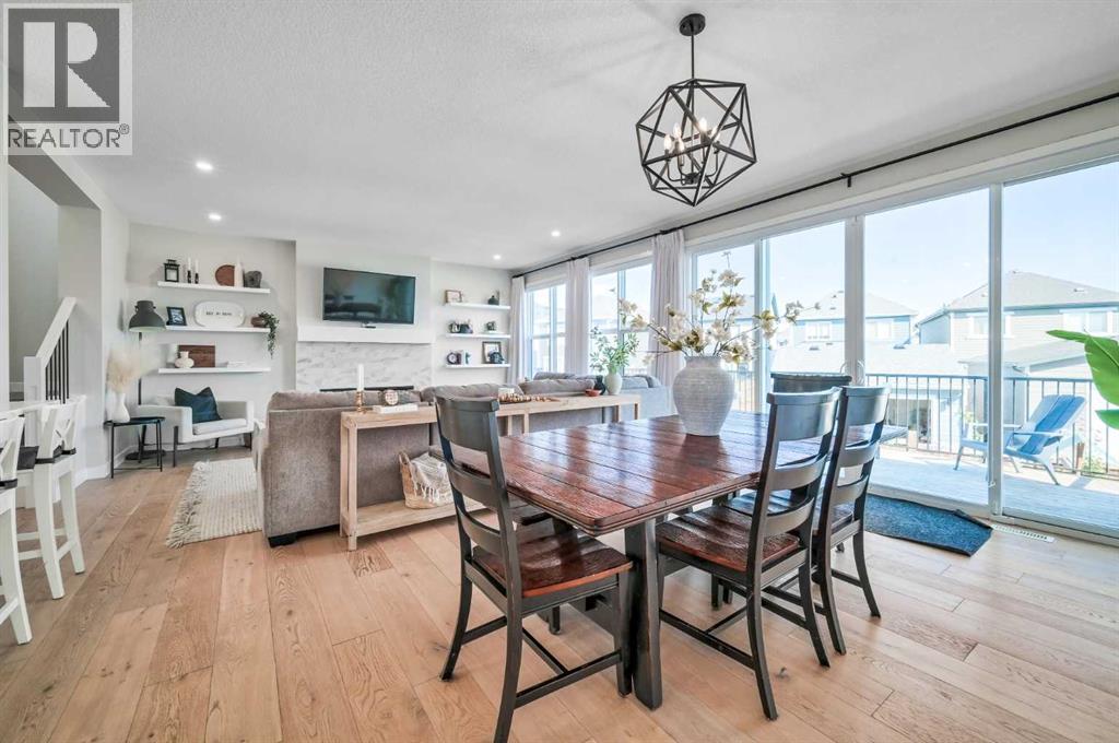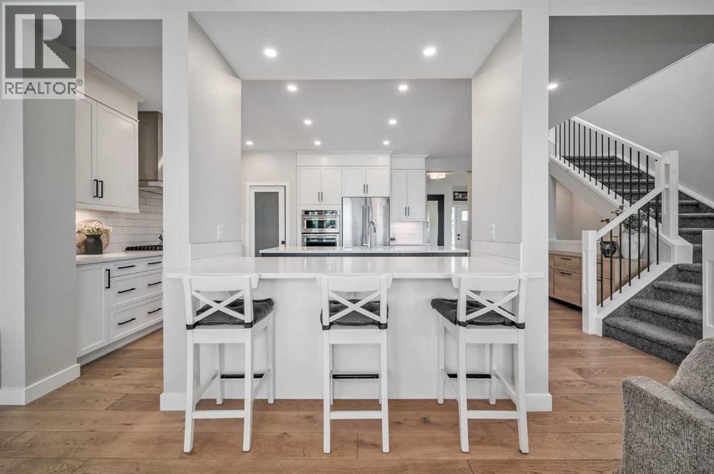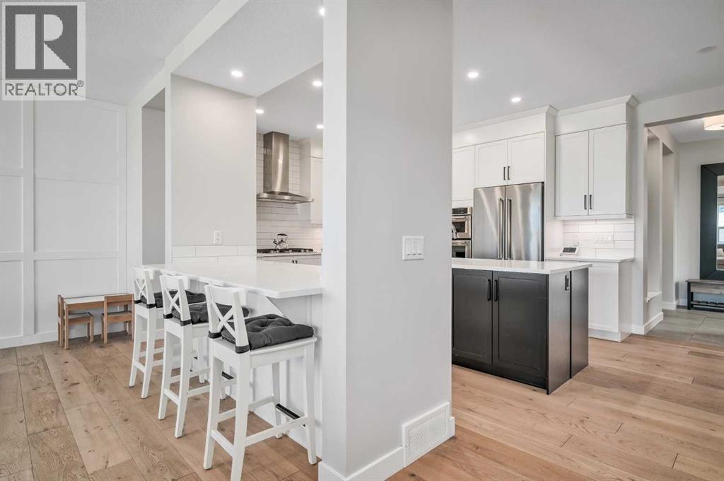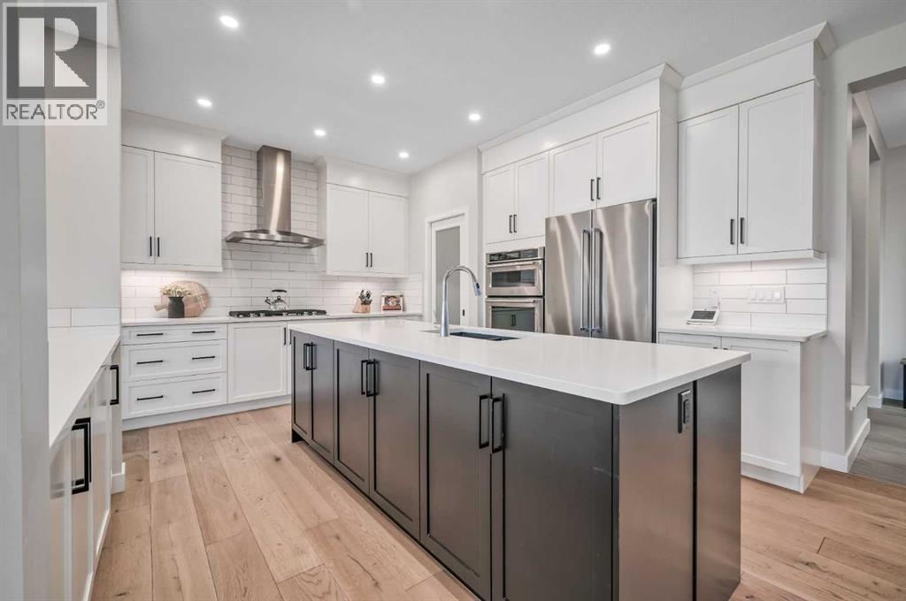 Welcome to this stunning original-owner Jayman-built home located in the highly sought-after lake community of Mahogany, where style, comfort, and modern efficiency come together to create an exceptional place to call home. Thoughtfully designed with 3 spacious bedrooms upstairs, a central bonus room, and an open-concept layout, this home offers the perfect balance of everyday functionality and elegant entertaining space. Step inside and be immediately impressed by the bright and expansive main floor, highlighted by wide plank engineered white oak hardwood flooring, soaring natural light that come from an upgraded full rear wall of windows, and carefully curated finishes throughout. The heart of the home is the spectacular chef-inspired kitchen, featuring full-height white cabinetry, luxurious quartz countertops, and two oversized islands, one of which functions beautifully as a welcoming breakfast bar and gathering space for family and guests alike. Premium appliances include a built-in refrigerator, wall oven and microwave, gas cooktop, and custom hood fan, creating a kitchen that is both visually striking and exceptionally functional. The inviting living room is centered around a stylish electric fireplace with tile surround and floating mantle, providing the perfect setting for cozy evenings and relaxed gatherings. Adjacent to the living area, the spacious dining room seamlessly connects to the large rear deck and beautifully landscaped pie-shaped backyard. A dual staircase from the deck offers convenient access for kids and pets while enhancing the flow of the outdoor space. Upstairs, the primary retreat is a true sanctuary featuring an elegant tray ceiling with ambient lighting and a luxurious spa-inspired 5-piece ensuite complete with dual vanities, dual walk-in closets, a makeup station, deep soaker tub, and an oversized tiled shower. Two additional generously sized bedrooms provide comfort and privacy for family members or guests. The central bonus room is perfect for movie nights, a playroom, or a relaxing lounge area, while the upstairs laundry room and large walk-in linen closet add everyday convenience. The upper main bathroom is thoughtfully designed with dual vanities and a functional layout with a pocket door separating the tub/shower and toilet area. The oversized double attached garage easily accommodates a full-size truck or SUV and includes a 220V electric plug for your EV. This impressive home is also built with energy efficiency in mind, featuring 12 solar panels that reduce electricity costs by nearly 50%, triple-pane windows, additional insulation, and a tankless hot water system. Smart home features such as automated lighting and thermostat control further enhance comfort and convenience. Living in Mahogany means enjoying one of Calgary’s most desirable lifestyles. This award-winning lake community offers private beaches, a stunning freshwater lake, parks, playgrounds, and extensive walking pathways. Book your showing and come on Buy! (id:6769)