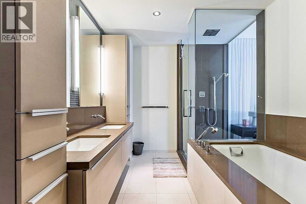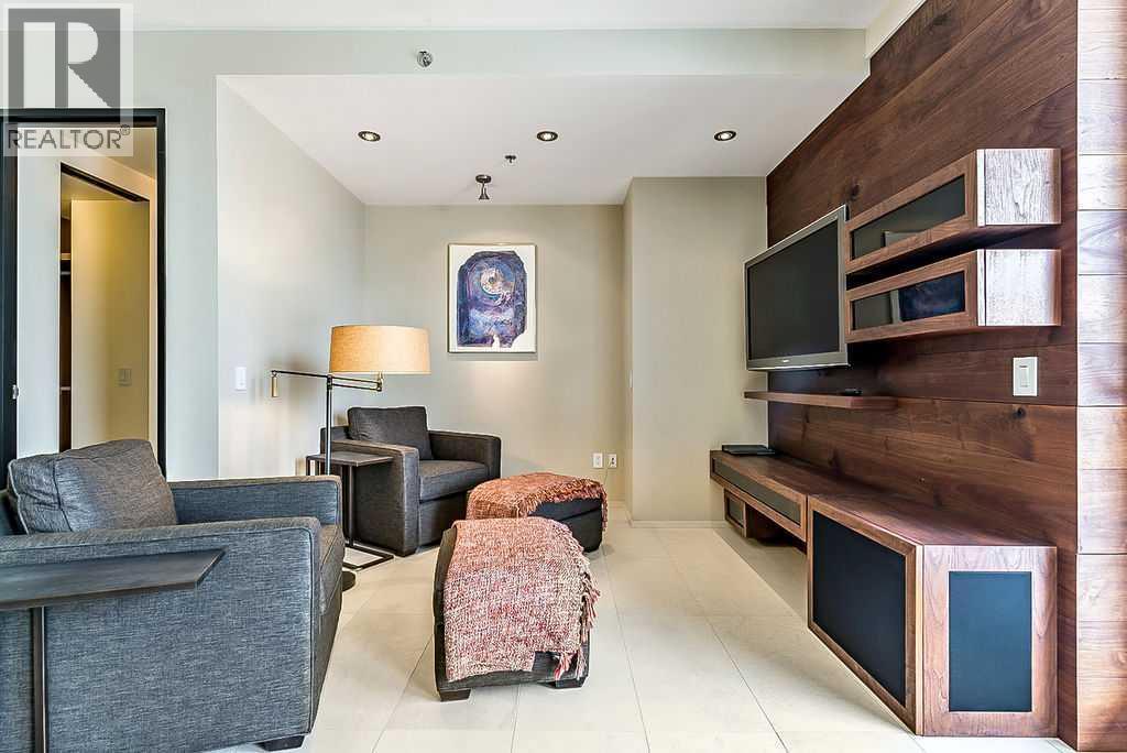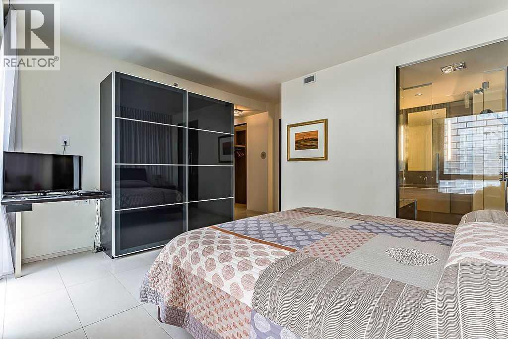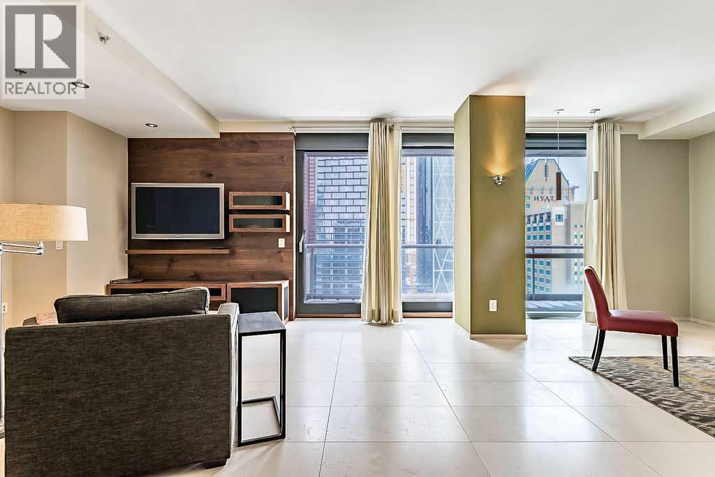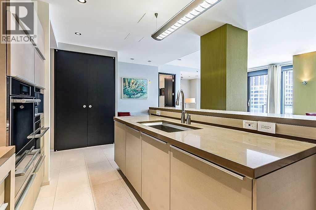 Enjoy living at one of Calgary's premiere apartment residences, Le Germain. Located in the heart of the city only steps to the shops, eateries, and entertainment of Stephen Avenue. This spacious one bedroom plus den has a fabulous view of downtown with its floor to ceiling windows. The open plan features an island kitchen with a Miele stainless steel appliance package that includes a warming tray and a coffee maker. The kitchen is beautifully finished with quartz counters. Relax in the den with its stylish and functional wood wall unit. The master has lots of storage with a built in wardrobe as well as a walk in closet with built ins. Unwind in the luxurious en suite that has dual vanities, large soaker tub, and walk in shower. Included are two indoor parking stalls and a storage locker. Le Germain offers amenities such as full concierge service, a fitness and spa area, fine dining valet service, and maid service. The property offers a lifestyle that few can duplicate. Do not miss it! (id:6769)