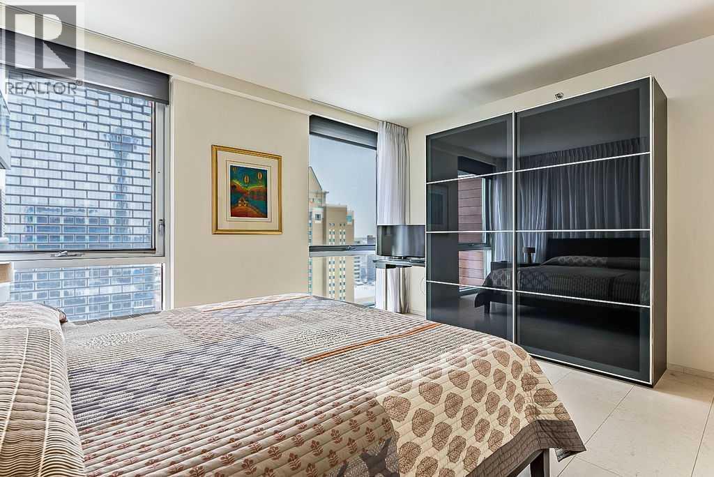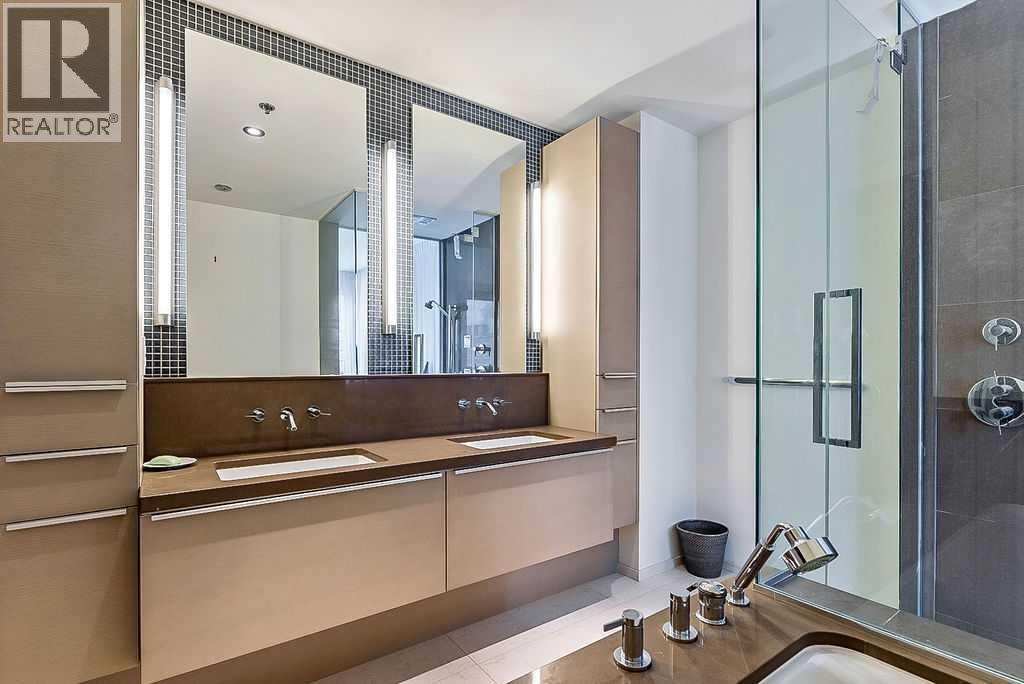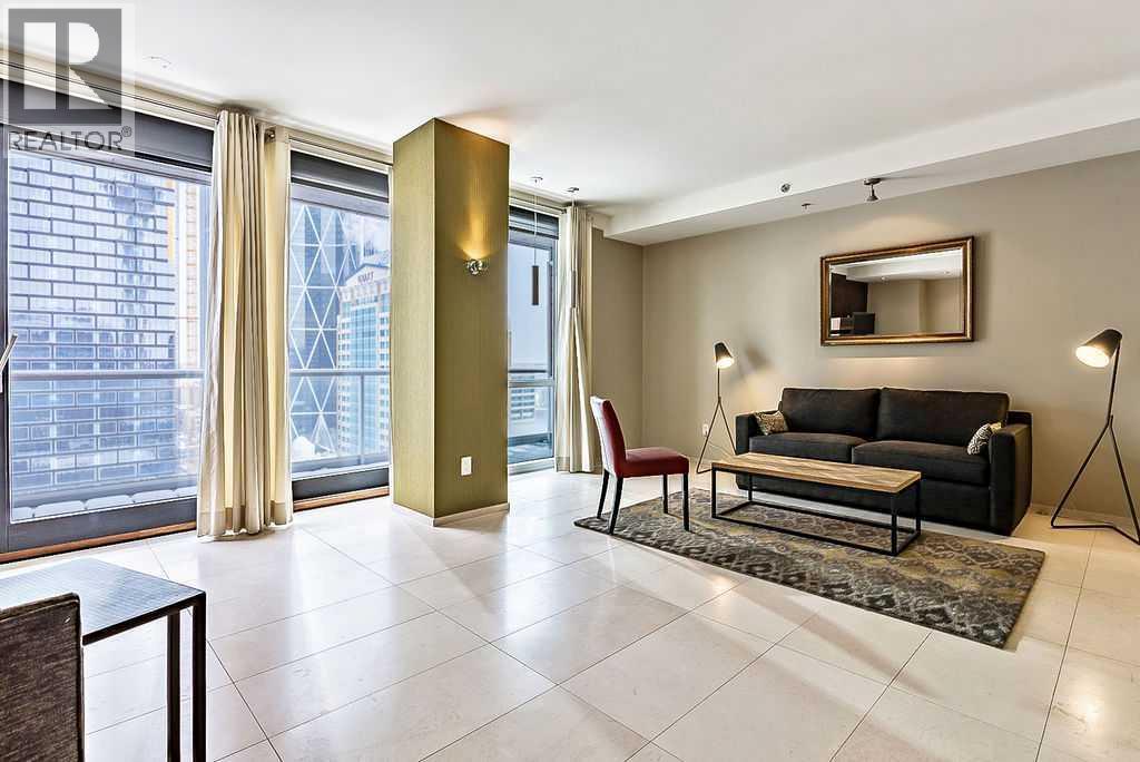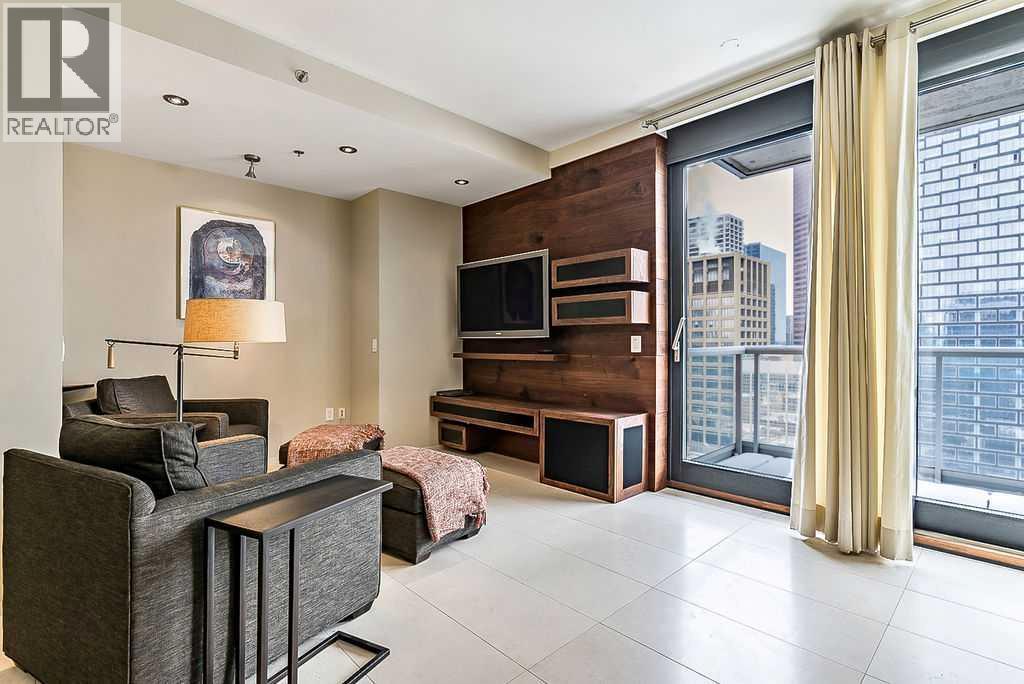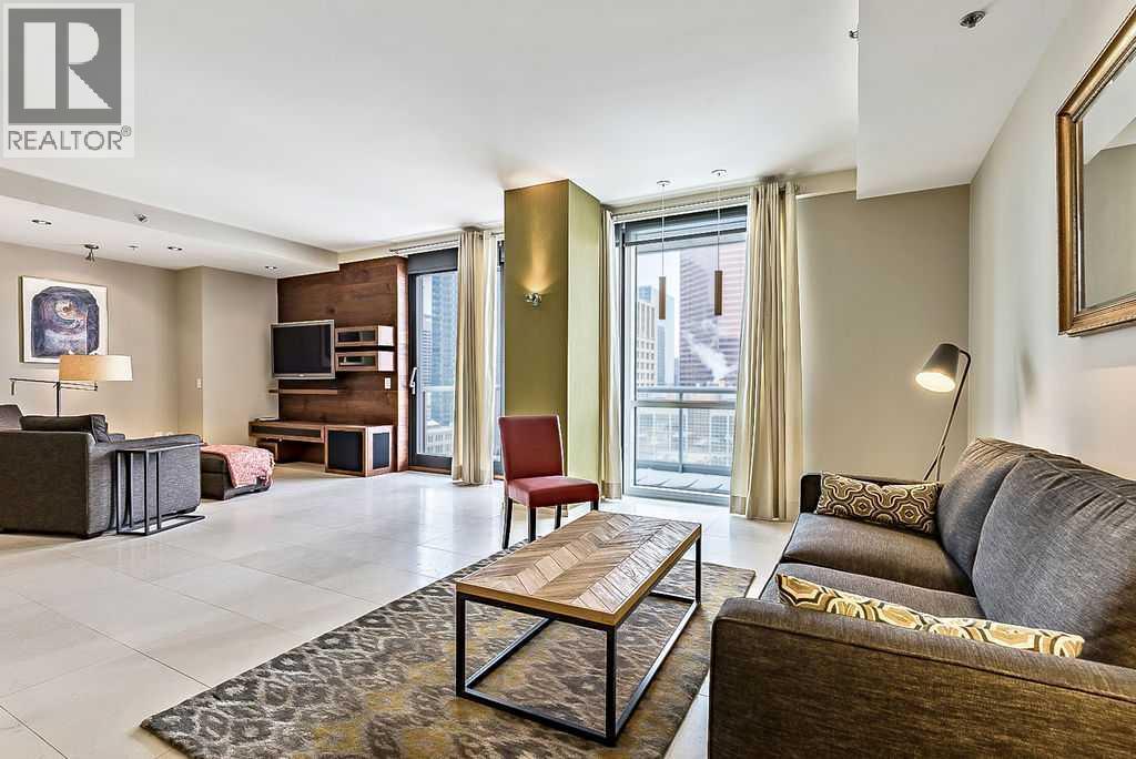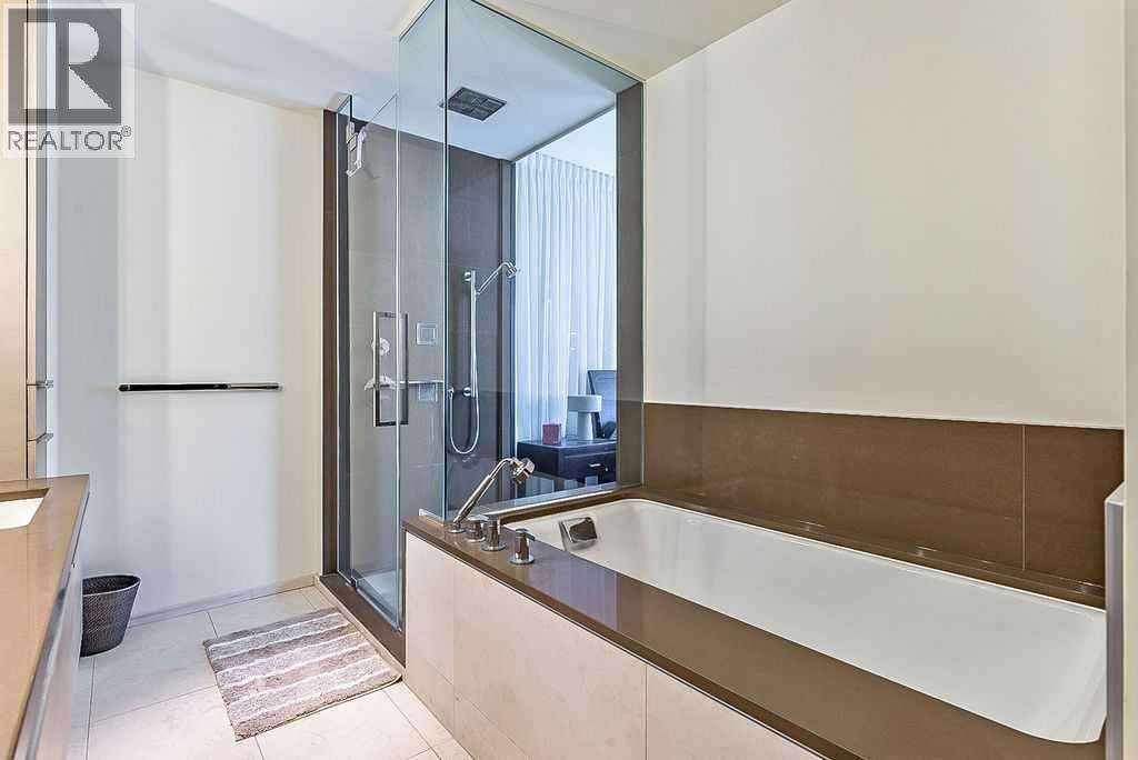 Enjoy living at one of Calgary's premiere apartment residences, Le Germain. Located in the heart of the city only steps to the shops, eateries, and entertainment of Stephen Avenue. This spacious one bedroom plus den has a fabulous view of downtown with its floor to ceiling windows. The open plan features an island kitchen with a Miele stainless steel appliance package that includes a warming tray and a coffee maker. The kitchen is beautifully finished with quartz counters. Relax in the den with its stylish and functional wood wall unit. The master has lots of storage with a built in wardrobe as well as a walk in closet with built ins. Unwind in the luxurious en suite that has dual vanities, large soaker tub, and walk in shower. Included are two indoor parking stalls and a storage locker. Le Germain offers amenities such as full concierge service, a fitness and spa area, fine dining valet service, and maid service. The property offers a lifestyle that few can duplicate. Do not miss it! (id:6769)