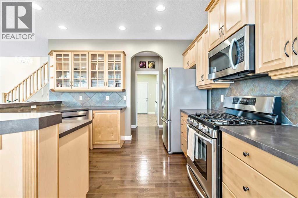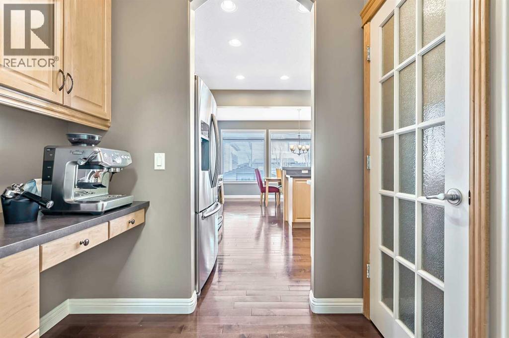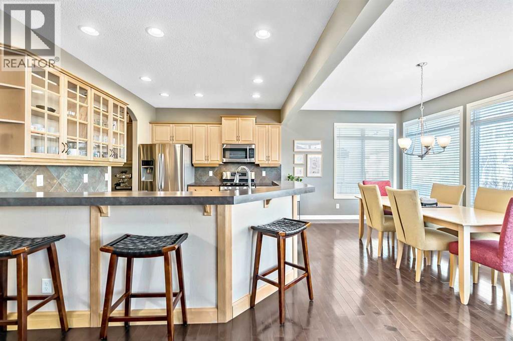 Welcome to this beautifully maintained two-storey home offering the perfect blend of space, comfort, and functionality in a highly desirable location. A dramatic vaulted ceiling entrance and gleaming hardwood floors create an impressive first impression the moment you step inside. The bright and inviting main floor features a spacious living room with a large window and cozy gas-burning fireplace, filling the home with natural light and warmth. The open-concept kitchen is designed for both everyday living and entertaining, complete with stainless steel appliances, gas stove, central island, and a convenient walk-through pantry leading directly to the mudroom/laundry area. The generous dining room, surrounded by additional windows, provides plenty of space for family meals and gatherings while allowing sunlight to pour throughout the home. Upstairs you’ll find a versatile loft with custom built-ins, ideal for a home office, study area, or reading nook. The upper level also features three generously sized bedrooms, including a spacious primary suite with a walk-in closet and a luxurious 5-piece spa-inspired ensuite designed for relaxation. The fully finished basement expands the living space with a huge family room, bar area, fitness room, storage room, and rough-in plumbing for a future bathroom, offering excellent flexibility for growing families. Step outside to enjoy the fully landscaped backyard featuring a mature tree, oversized deck with gas BBQ line, and storage shed, perfect for entertaining or relaxing outdoors. Note: Central air conditioning and a double oversized attached garage with loft storage provide added comfort and convenience. Ideally located within walking distance to schools, playgrounds, shopping, public transit, and Fish Creek Park. This home shows extremely well with pride of ownership! (id:6769)