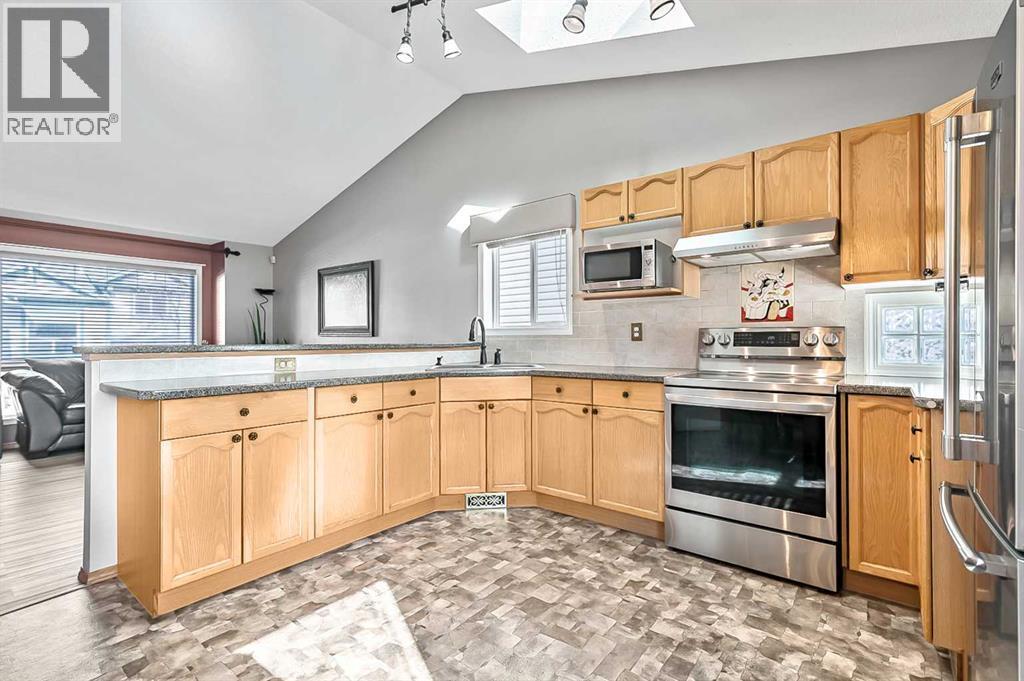 Welcome to this stunning, meticulously maintained home that truly showcases pride of ownership throughout. Presented in immaculate condition, every detail has been thoughtfully updated and carefully cared for. The inviting entry stairway opens into a bright, open-concept living room and kitchen, highlighted by vaulted ceilings and skylights that flood the space with natural light and create an airy, spacious feel. The dining area is conveniently located just off the kitchen and extends seamlessly to the refinished rear deck, making it perfect for both everyday living and effortless indoor-outdoor entertaining. The upper level features a generous primary bedroom with dual closets, a comfortable second bedroom, and a full bathroom, offering a functional and well-designed layout. The fully developed basement provides excellent additional living space with a large family room anchored by a beautiful natural gas fireplace, creating a warm and inviting atmosphere. This level also features a third bedroom, a full bathroom, a laundry room with sink, and a spacious storage area, making it ideal for guests, family members, or a home office.. Outside, the property is equally impressive. Enjoy a pergola with fire pit, a low-maintenance upgraded deck with cedar steps and aluminum railings, a redesigned front entry with concrete walkways, and rear lane access to a single paved parking pad. The beautifully maintained landscaping further enhances the home’s exceptional curb appeal. Don't wait, book your showing now! (id:6769)