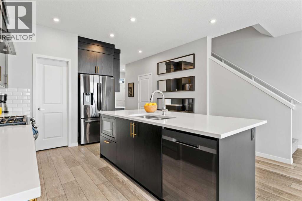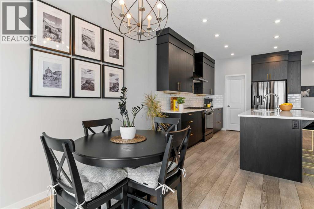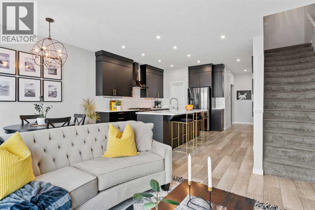 Welcome to 824 Seton Circle SE! If you're looking for a move-in ready home that truly stands out, you have found it here. You are welcomed by a lovely front porch that leads into a spacious foyer complete with a coat closet. The first thing that you will notice walking into this home is the abundance of natural sunlight from the SOUTH FACING BACKYARD that pours through the open floor plan. The kitchen is the highlight with an oversized island that offers plenty of room for bar stools. You will love the high-end finishes that this kitchen offers: rich ceiling height cabinetry, granite countertops, a stylish backsplash and gold accents throughout. The charcoal, high-end stainless steel appliances truly compliment this kitchen. Your formal dining space is just off the kitchen and is large enough for a six person table to enjoy large dinners, host guests and makes serving seamless for those summer BBQ's with the sliding glass doors opening out directly to your back deck. The spacious living room offers the perfect place to relax or entertain, filled with sunlight from the large windows. The main floor is completed by a two piece powder room and direct access from your SINGLE ATTACHED GARAGE! Moving upstairs, you enter into your BONUS ROOM with CUSTOM BUILT INS! This is an ideal family room, library, office or playroom. The primary bedroom is a true retreat and is perfectly secluded at the back of the home ensuring optimal privacy. You will appreciate waking up to the unobstructed MOUNTAIN VIEWS out your window year-round! More features include a large ensuite bathroom with a walk-in shower and a double vanity with granite countertops and a LARGE WALK-IN CLOSET! Stay cool year round with blackout blinds in the primary bedroom and CENTRAL AIR CONDITIONING! There are two additional bedrooms on this floor, both equally spacious, along with a beautifully appointed four piece bathroom. Laundry is a breeze with it conveniently located on this upper level as well. This home is perfect for first time home buyers, large families or investors as it offers a FULLY FINISHED BASEMENT WITH A SIDE ENTRANCE! You will appreciate the additional living space that the recreation room down here offers including a FOURTH BEDROOM AND A FOURTH, FULL BATHROOM! This home has been thoughtfully upgraded over the years with on-trend feature walls, AN EXTENDED DRIVEWAY (fits two vehicles), a hot water on-demand system and a well appointed built-in pergola in your backyard to enjoy all summer long. Living in Seton offers easy access to major routes, including Stoney Trail and Deerfoot Trail for all of your commuting needs. Everything you need is within a few minutes drive for groceries, coffee, restaurants, pet stores, a movie theatre and the SOUTH HEALTH CAMPUS! The BLOCK, Seton Home Owner's Association has recently opened exclusively for Seton residents and their guests to enjoy year round access to their party rooms, splash park, hockey rink, playgrounds and more. Call for a private viewing today! (id:6769)