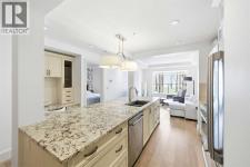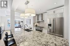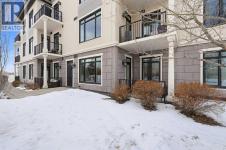 Experience a sophisticated, low-maintenance lifestyle in this luxury main-floor condo located in the Champagne building, South Calgary’s premier residence. Backing onto serene green space just steps from the Bow River, this home features 10-foot ceilings, rich engineered hardwood floors, and estate-level finishes throughout. The gourmet kitchen is a chef's dream, boasting 42-inch soft-close cabinetry, upscale stainless steel appliances, polished granite countertops, and a massive island designed for entertaining. The primary bedroom offers a private retreat with new custom Hunter Douglas blackout blinds and a lavish marble-tiled ensuite with a separate soaking tub and shower. The concrete construction of this pet-friendly building ensures exceptional quiet and durability. Modern conveniences abound, including central air conditioning, a gas BBQ line, titled storage, and a titled underground parking stall near the elevator with access to a two-stall car wash. Located in the master-planned community of Quarry Park, you are minutes away from miles of river pathways, an off-leash park, and the world-class YMCA. With condo fees that cover heat, gas, and water, this well-managed complex offers a holistic living experience that combines nature, quality, and convenience. (id:6769)