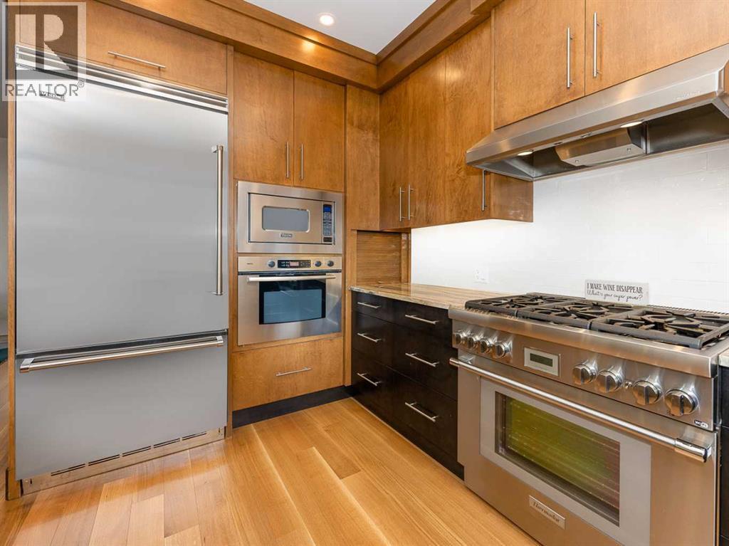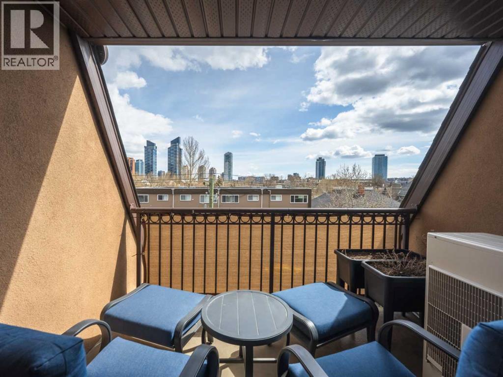 Luxury and sophistication converge in this meticulously renovated penthouse in the heart of Hillhurst. Just steps from Kensington’s vibrant shops and restaurants, the Bow River pathways, and the downtown core, this exceptional residence offers an elevated urban lifestyle. Situated in the boutique 12-unit Villagio building, constructed with superior ICF for outstanding soundproofing and energy efficiency, the home features a semi-private elevator that opens directly to the unit’s entrance. A grand foyer with soaring ceilings and an overhead skylight sets the tone as you enter this impressive two-level residence. The open-concept design is highlighted by dramatic 18-foot ceilings and a stunning south-facing wall of windows that fills the space with natural light. The central living room showcases a custom stone gas fireplace and a striking imported 120-piece hand-blown glass chandelier. Patio doors lead to one of two south-facing outdoor spaces, ideal for relaxing or entertaining. The chef’s kitchen is a true showpiece, featuring premium appliances including a Thermador dual-fuel gas range, Sapphire dishwasher, Viking refrigerator, and built-in microwave. Hand-selected quartzite countertops complement the space, while imported custom light fixtures add refined character. Adjacent to the kitchen, the dining area features a custom wine display with oak racking and a built-in buffet complete with a wine fridge and quartzite counters. A distinctive custom light fixture adds warmth and elegance to the space. The main-level primary retreat offers built-in cabinetry and a luxurious spa-inspired ensuite with dual sinks, Hansgrohe fixtures, quartzite countertops, a steam shower, and a custom cast-iron slipper tub. The suite is completed by a spacious walk-in closet. A powder room and convenient laundry area complete the main floor. The upper level features a second bedroom with access to a large in-suite storage room, a three-piece bathroom, and a versatile flex space ideal fo r a home office. A catwalk overlooking the living area below leads to patio doors that open onto the second south-facing patio, creating another private outdoor retreat. Extensive renovations throughout the home include new quarter-sawn engineered oak flooring on the main level, newer carpeting upstairs, modern railings overlooking the living room, fresh paint, and new remote-controlled window coverings. Comfort is enhanced by a newly installed Fujitsu mini-split four-zone inverter system, providing flexible climate control with independent heating, cooling, or fan settings for individual areas. The unit also includes two titled parking stalls, both generously sized to accommodate a full-size truck. This remarkable penthouse must be experienced in person to be fully appreciated. (id:6769)
