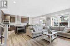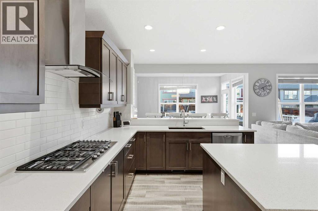 Welcome to Cochrane's premiere family-friendly community, Riviera! Tucked-away on a quiet cul-de-sac, this stunning home offers luxurious town living among natural surroundings. Riviera boasts extensive scenic pathways, playgrounds, and close proximity to the Bow River. Better value in Riviera seldom comes available. Inside, you'll find a bright and modern layout exuding style and comfort. The chef-inspired kitchen features quartz counters, spacious island, upgraded appliances, and is perfect for family meals or entertaining.Upstairs, a comfy bonus room, dedicated office space, and laundry room await. The primary bedroom includes a five-piece ensuite bathroom and walk-in closet. Outside, both front and back yards are fully landscaped. The oversized composite deck is perfect for summer BBQs and outdoor entertaining. Additional features include, central A/C, permanent exterior LED lights, and an Insulated and drywalled garage. (id:6769)