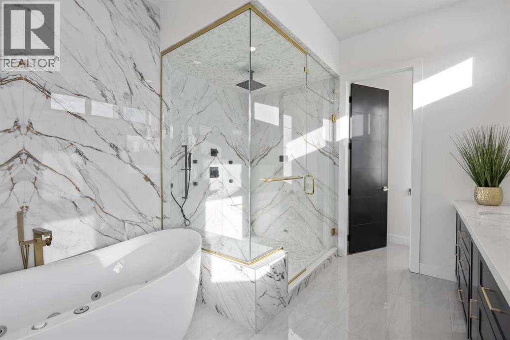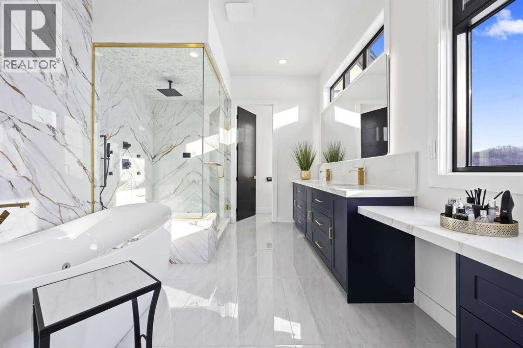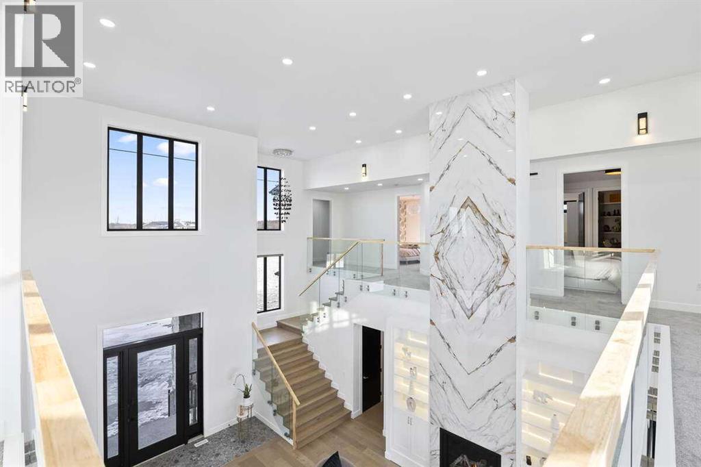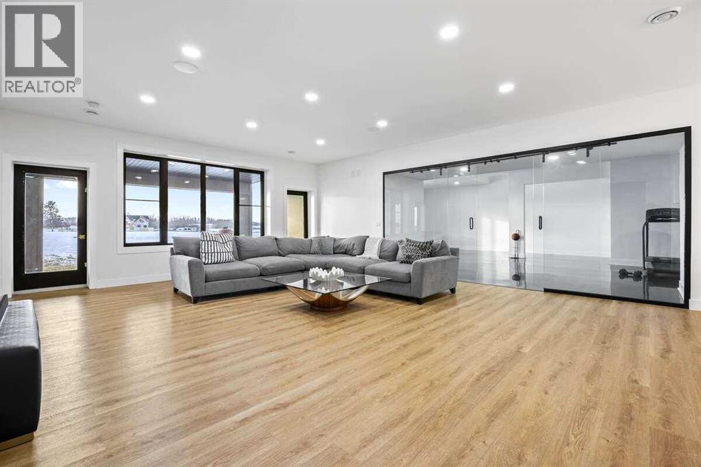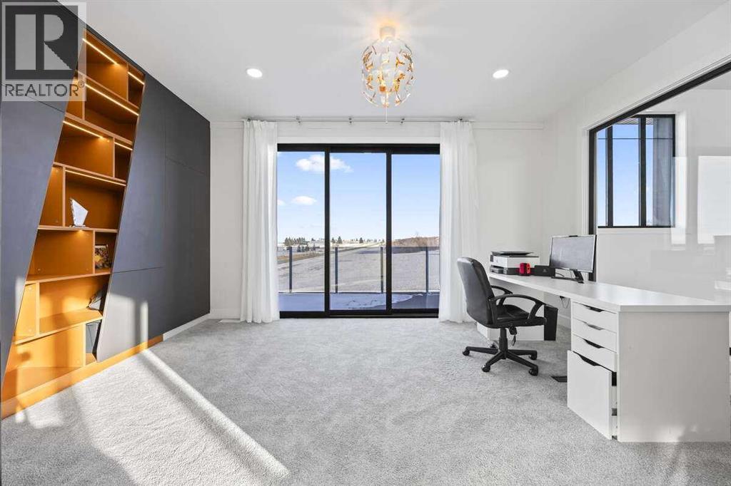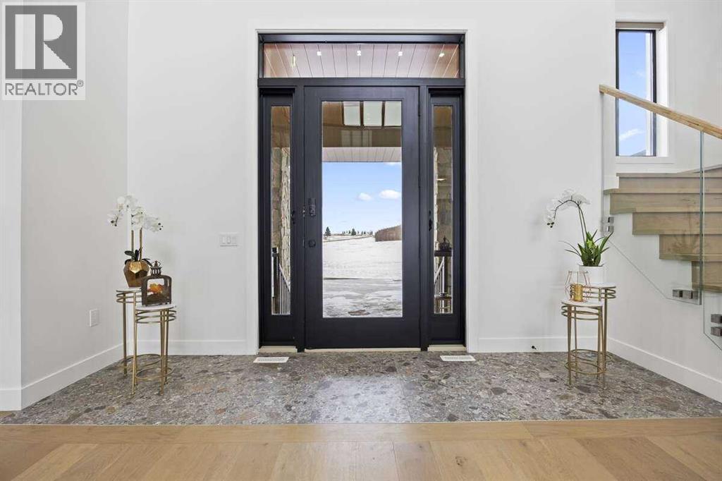 *** For more information, please click the "More Information" button. ***Welcome to an extraordinary blend of modern elegance and countryside charm. Built in 2023, this stunning 6-bedroom, 5.5-bathroom estate offers over 7,200 sq. ft. of meticulously designed living space, nestled on a picturesque 5-acre property. More than just a home, it’s a peaceful retreat surrounded by nature, yet conveniently close to Calgary’s South Campus hospital, top-rated schools, and urban amenities, offering the perfect balance of serene country living and city convenience. As you enter through natural flat stone pillars, a grand entryway welcomes you into warm and expansive living areas set against the breathtaking backdrop of the Rocky Mountains. The living room features a towering stone fireplace that serves as a centerpiece, while a glass-surround walkway bathes the space in natural light. Telescoping glass doors seamlessly connect indoor and outdoor spaces, making it ideal for entertaining or relaxing with loved ones. The chef’s kitchen is the heart of the home, featuring double islands perfect for hosting, high-end appliances including a combination steam oven, and two butler’s pantries. These pantries provide ample storage and include access to a hidden workspace and a single garage, adding both functionality and convenience to the kitchen’s design. The main-floor primary suite is a true sanctuary, boasting floor-to-ceiling west-facing windows that frame stunning views. The spa-inspired en-suite includes luxurious stone-accented walls, an oversized soaker tub, and a walk-in shower, while the custom-designed closet caters to a modern lifestyle with ample space and organization. Upstairs, three spacious bedrooms, each with walk-in closets and private bathrooms, provide comfort and privacy for family or guests. A striking glass walkway connects a custom home office and a cozy family room, creating a unique and inviting upper-level retreat. The lower level is designed for both relax ation and activity. Highlights include a home gym with a pro-height basketball hoop, a luxurious steam shower for post-workout relaxation, an additional bedroom, and a versatile flex room that opens directly to the backyard. The outdoor space offers endless possibilities. The expansive backyard is a blank canvas awaiting your vision—whether it’s a vibrant garden, a playground, or even space for animals. The property’s 5-acre expanse ensures privacy and room to customize. Behind the beauty of this estate lies impeccable functionality. Two mechanical rooms house high-end systems, including advanced A/C, on-demand hot water, and multiple furnaces and boilers, ensuring comfort year-round. Premium finishes, custom flooring, and thoughtful details elevate the home’s design. This property is more than a residence—it’s a lifestyle. Whether hosting grand gatherings, seeking a tranquil retreat, or making cherished family memories, this estate delivers it all. Don’t miss your opportunity to own this incredible count (id:6769)