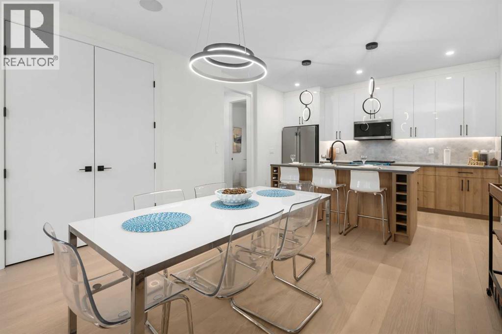 An excellent opportunity to expand your investment portfolio in the heart of Marda Loop. This BRAND NEW 8 unit complex is complete and ready for immediate possession. Situated on a large 50x125 ft. lot, on a tree lined street, just steps from river park and the heart of marda loop. Easy transit access to MRU and downtown. The upper 3 storey units offer over 1800 sqare feet on three levels, above grade and an addtional 575 square feet basement suites with separate entrances (Units can be connected to basement directly if desired) High quality modern finishes throuhout this spacious townhouse. Hardwood, quarts, stainless steel appliances, ceramic tiles. Each upper unit features three bedrooms and 3 and a half baths. An excellent main level with living, dining and large kitchen with Island. The second floor boats two large bedrooms both with large closets and ensuites. The top third floor showcases an amazing Primary suite complete with a huge walk in closet, large ensuite with walk in 2 person shower. Dual sinks, and a full east facing private balcony. The basement suites boast high ceilings, full moden kitchens, ensuite laundry and separate spacious bedrooms with large closets. Single detached garages for all units. (4) This build can be eligible for CMHC MLI Select financing. Rental rates in the area have remained stable with low pre dominant vacancy. Possible gross monthly income of $15,000-$1,7000. Furnished units can attain more and can be included in the purchase price as required. Full appliance packages for all 8 units included, and all units a separately metered. A great opportunity in a thriving community. (id:6769)