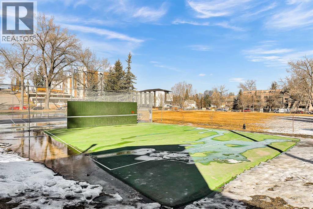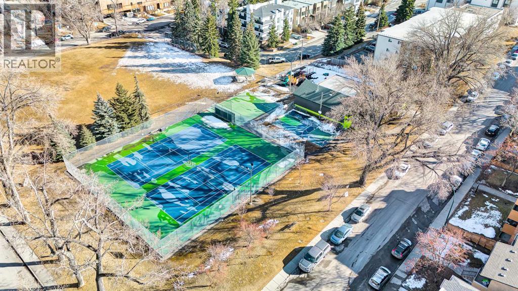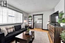 Welcome to this STYLISH TOP FLOOR one-bedroom condo in the heart of Bankview - the LOWEST PRICED one-bedroom in Calgary with INSUITE LAUNDRY and A PARKING STALL! This well-maintained unit offers an incredible opportunity for first-time buyers, investors, or anyone looking for an affordable inner-city lifestyle. *** Inside, you’ll find hardwood floors, modern light fixtures, and crisp white walls contrasted by striking black trim and doors, creating a contemporary feel. The functional kitchen features stainless steel appliances, wood cabinet doors, under-cabinet lighting, and a convenient breakfast bar, making it perfect for both everyday living and entertaining. The bedroom is accessed through elegant double doors, adding character while maintaining an open, airy layout. The unit benefits from insuite laundry, a dishwasher, microwave hood fan, and newer energy efficient vinyl windows- plus there is a seperate dedicated storage locker. *** The pet-friendly building is well maintained, and with condo fees for the unit of $586.62, which includes snow removal, building maintenance, building insurance, heat, gas, water, and reserve fund contribution- making budgeting simple and predictable. *** Situated in the vibrant inner-city community of Bankview, and directly across from the Bankview Community Centre with tennis/pickleball and basketball courts, and just one block from the community garden and dog park. Transit is right around the corner, and you can easily walk to the shops, restaurants, and nightlife along 14 Street SW and 17 Avenue SW. *** This move-in ready unit makes it easy to settle in and start enjoying everything this fantastic location has to offer. If you’re looking for affordable inner-city living in a stylish top-floor unit, this is one you won’t want to miss. Book you showing and find out why this could be the smart move for you! (id:6769)