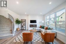 Welcome to the Robson 24 by Brookfield Residential - a stunning, move-in ready home that combines timeless design with modern functionality. Perfectly situated in the heart of Rockland Park, this home sits on a large lot offering additional space and privacy. Boasting nearly 2,300 sq. ft. of beautifully designed living space above grade, this home seamlessly blends open-concept living with thoughtful details throughout. The grand front foyer opens into a bright and airy main level featuring 9-foot ceilings, wide sightlines, and a natural flow between the living, dining, and kitchen areas. The gourmet kitchen is a chef’s dream, complete with a built-in chimney hood fan, built-in microwave, and gas range - all framed by elegant full-height cabinetry, quartz countertops, and a large central island perfect for entertaining. The kitchen overlooks the inviting living room, where a central fireplace anchors the space and creates the perfect setting for cozy evenings. A wall of windows floods the home with natural light, highlighting the spacious dining area that opens to the sunny backyard. A large main-floor office space with a full bathroom provides incredible flexibility for multi-generational living, guests, or a dedicated home office. At the heart of the home, a signature curved staircase creates a striking architectural statement - an elevated design feature rarely seen in today’s market. Natural wood and iron spindle railings lead to the upper level which opens to a central bonus room, intelligently separating the primary suite from the secondary bedrooms for optimal privacy. Vaulted ceilings in the primary bedroom create an open and spacious room that offers a luxurious 5-piece ensuite with a deep soaker tub, dual vanities, private water closet, walk-in shower with 10mm glass and an expansive walk-in closet. Two additional bedrooms, a full bathroom, and a spacious upper-floor laundry room complete the second level. The undeveloped basement features 9' foundation wa lls, bathroom rough-ins and a 200 amp panel, making future development that much easier. Outside, the backyard is a sun-filled retreat, providing the perfect space for outdoor entertaining and everyday relaxation. Backed by Brookfield’s comprehensive builder warranty and the Alberta New Home Warranty Program, this brand-new property offers complete peace of mind. With its architectural charm, premium finishes, and unbeatable Rockland Park location, the Robson 24 is the perfect blend of sophistication, comfort, and practicality - ready for you to call home. (id:6769)