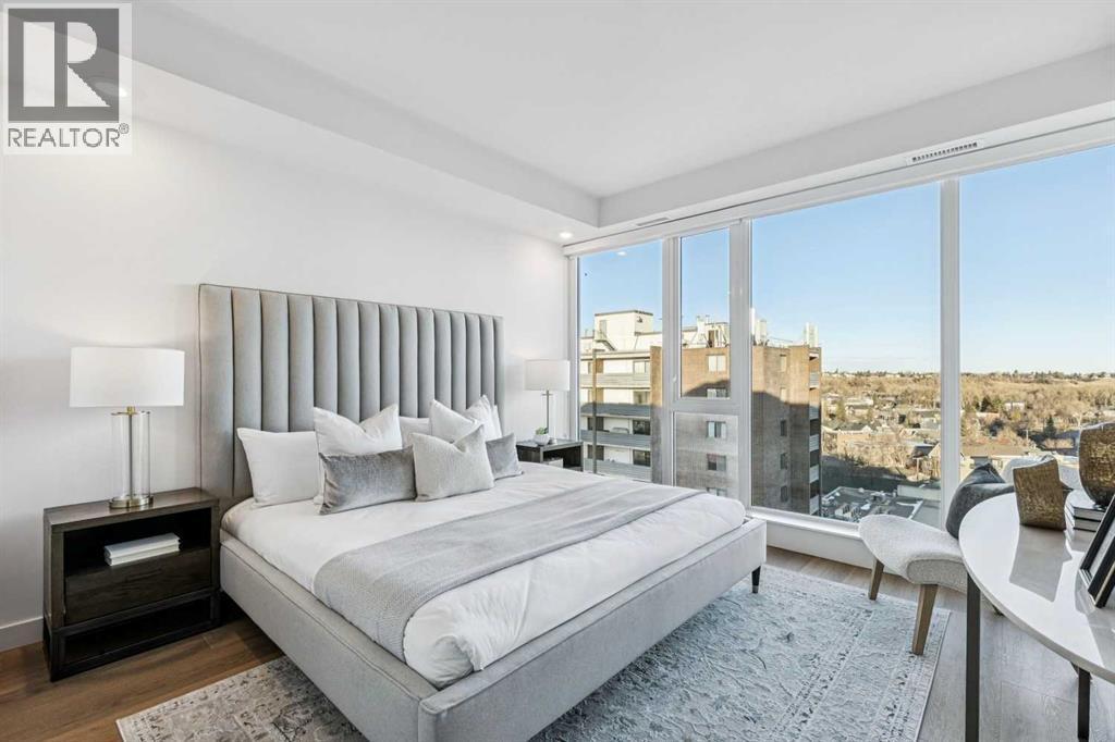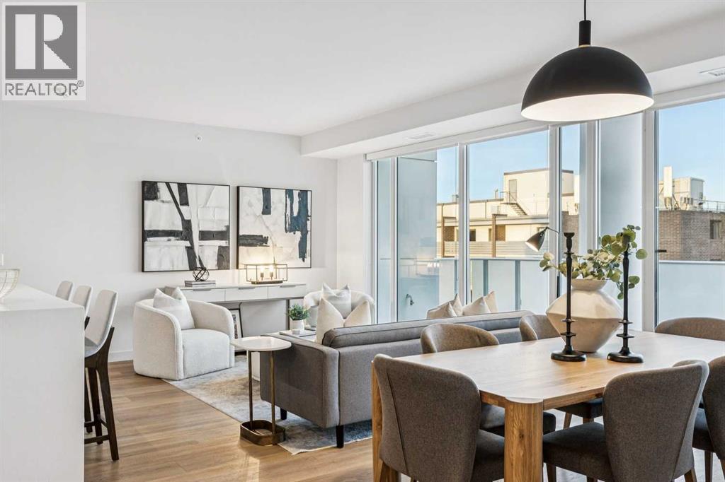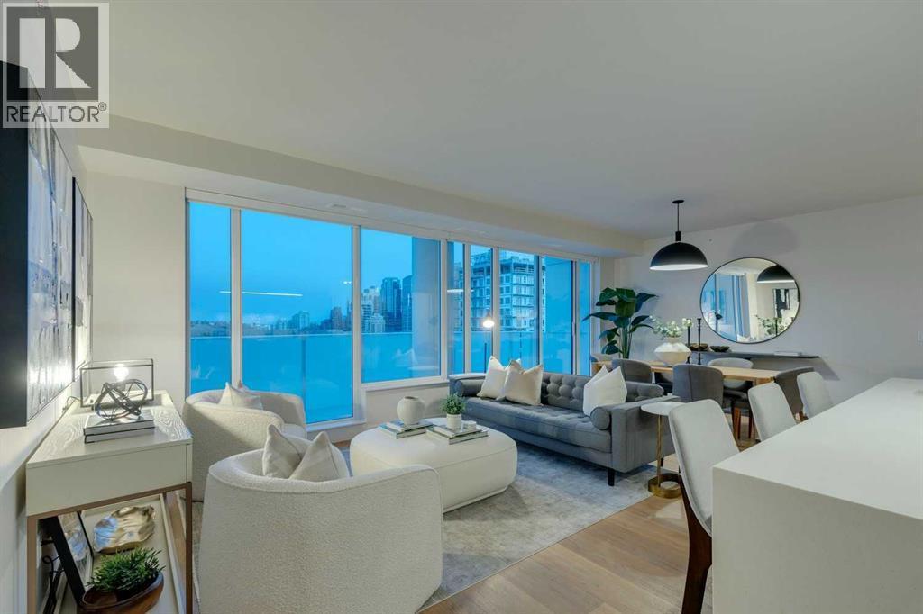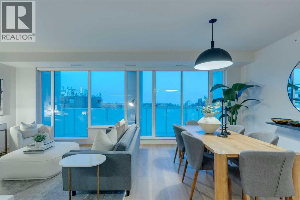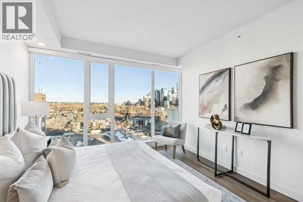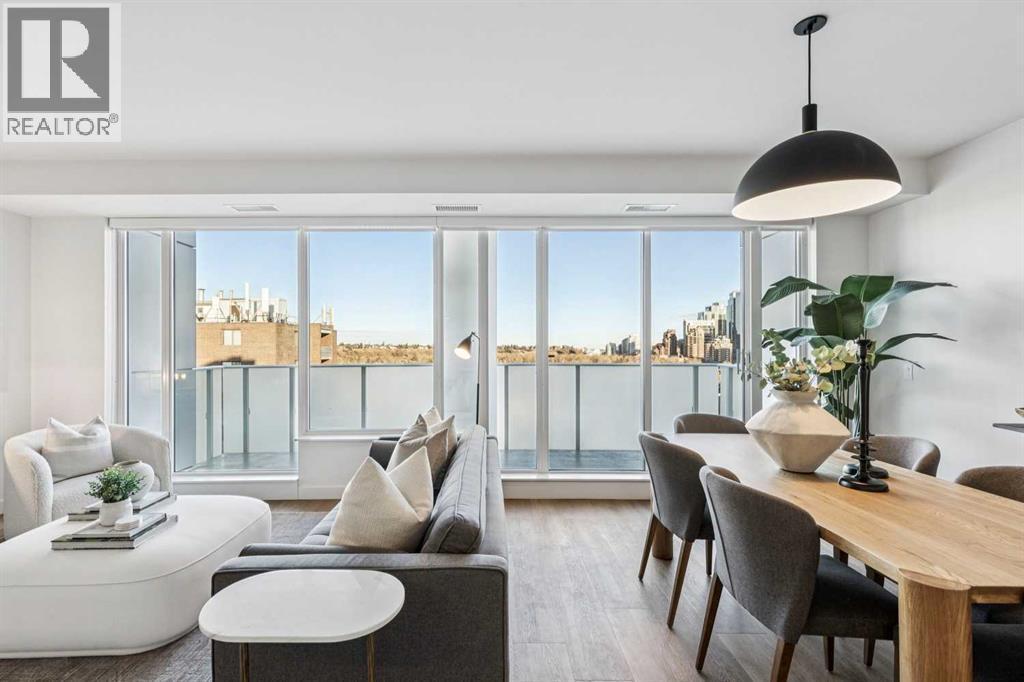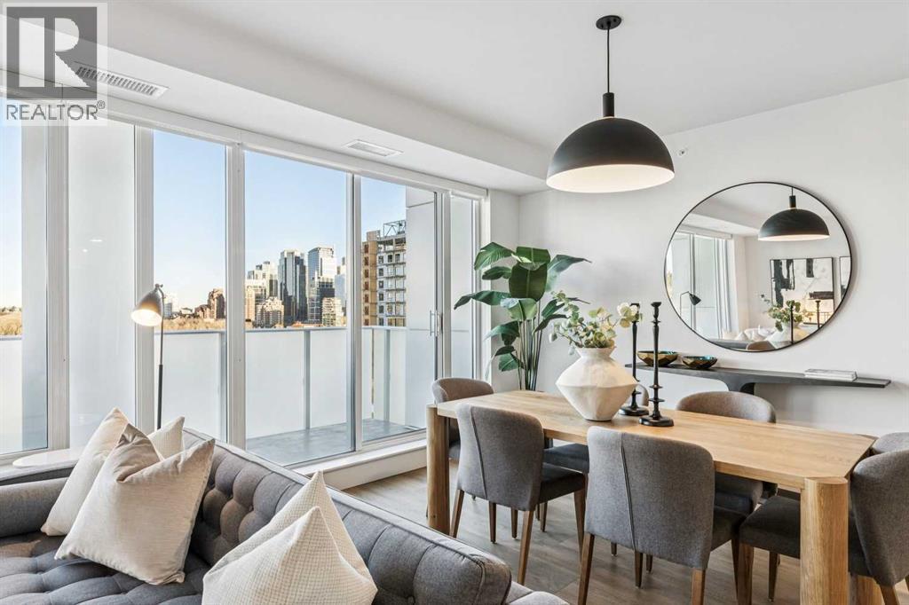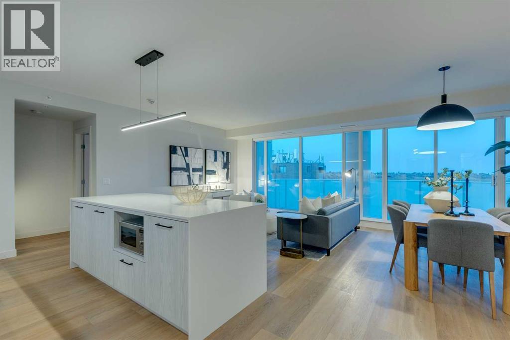 Perched atop the sought-after Theodore, this exceptional 10th-floor penthouse presents a rare opportunity to experience refined urban living in the heart of Kensington. Showcasing over 1,400 square feet of beautifully curated living space, this pristine three-bedroom, three-bathroom residence blends sophisticated design with remarkable functionality—offered by the original owner and maintained in immaculate, show-home condition.From the moment you enter, soaring 9-foot ceilings, expansive floor-to-ceiling windows, and elegant luxury vinyl plank flooring create a bright, airy atmosphere while framing captivating views of downtown Calgary skyline. The open-concept living and dining area flows effortlessly onto a spacious private balcony—an inviting retreat to relax or entertain while enjoying the glittering city backdrop and convenient natural gas BBQ hookup.At the heart of the home, the designer kitchen is a chef’s dream. Thoughtfully appointed with sleek quartz countertops, abundant cabinetry, and a generous island with counter seating for four, the space is complemented by integrated Fisher & Paykel appliances, delivering both style and performance for everyday living and entertaining alike.The serene primary suite offers a luxurious escape, complete with expansive windows, a spacious walk-through closet, and a spa-inspired ensuite featuring heated floors, a free-standing soaker tub, shower, and dual vanity. Two additional well-proportioned bedrooms and full bathrooms provide exceptional flexibility for family, guests, or a stylish home office.Rarely found in inner-city condominium living, this penthouse includes three titled underground parking stalls and complete with storage locker, and convenient in-suite laundry & storage room —enhancing comfort and practicality.Residents of The Theodore also enjoy access to an extraordinary rooftop terrace, complete with outdoor fire pit, BBQ, lounge seating, and sweeping panoramic views that stretch from sunrise t o dusk. It’s a spectacular setting to unwind and gather with friends.Ideally located just steps from Kensington’s popular boutiques and restaurants, as well as Safeway Kensington, the home is also moments from the picturesque pathways and green space of Riley Park, the Bow River, nearby schools and the downtown core.Combining boutique luxury, an unbeatable inner-city location, and the rare convenience of three parking stalls, this remarkable penthouse offers the pinnacle of elevated urban living in one of Calgary’s most coveted neighbourhoods. (id:6769)