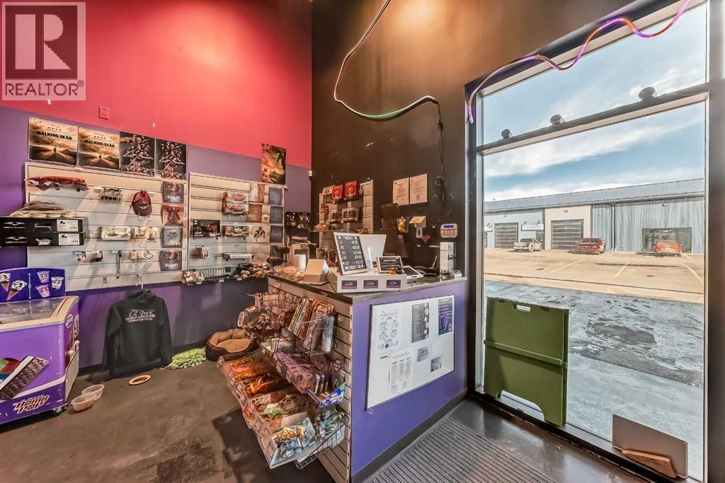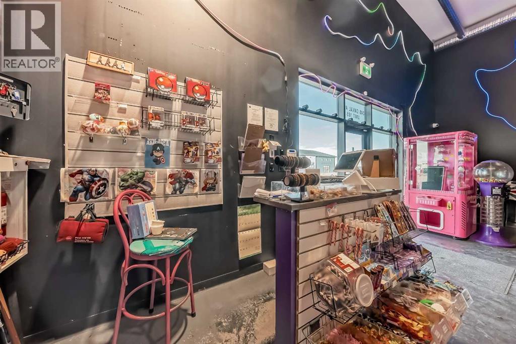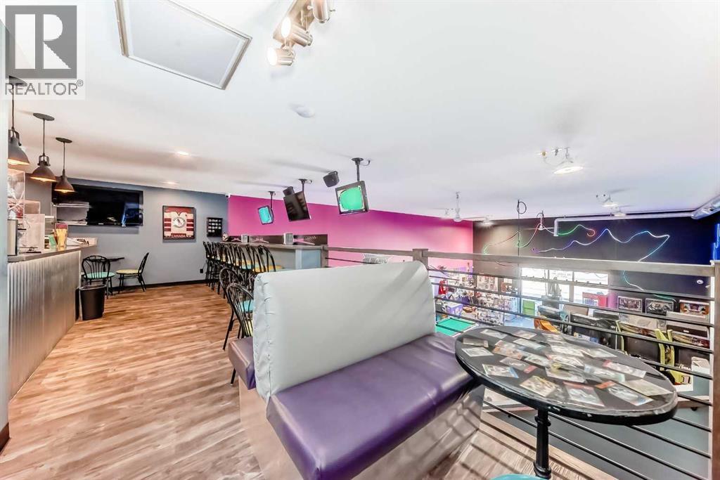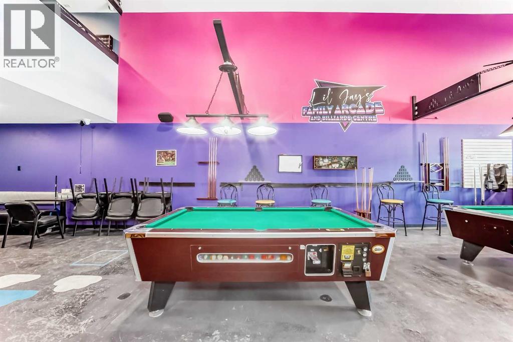Prime commercial location just off Highway #1. This 2,000 sq ft main floor plus 600 sq ft mezzanine commercial condo is currently set up as an arcade entertainment venue with licensed alcohol service and concession/bar area.The space includes two washrooms, air conditioning, on-demand hot water, extensive electrical outlets, high-end stereo system, security system with 8 cameras, and double rear doors for easy equipment loading.The building can be rented empty for $15PSF + $7PSF operating costs. Arcade machines, pool tables, commercial dishwasher, and additional equipment available for purchase up to $100,000. Seller willing to sell equipment and business package in full or in part. Full equipment schedule available upon request.Ample paved parking, affordable condo fees, and steady customer traffic from surrounding businesses.Continue operating as an arcade bar, entertainment lounge, or redevelop the concept. Property also available for sale (A2292532). (id:6769)