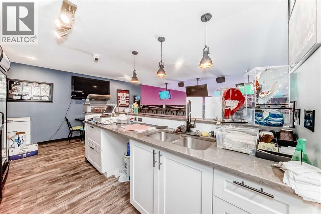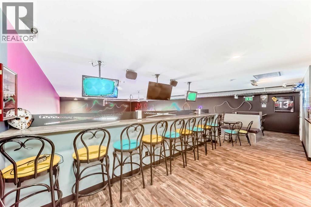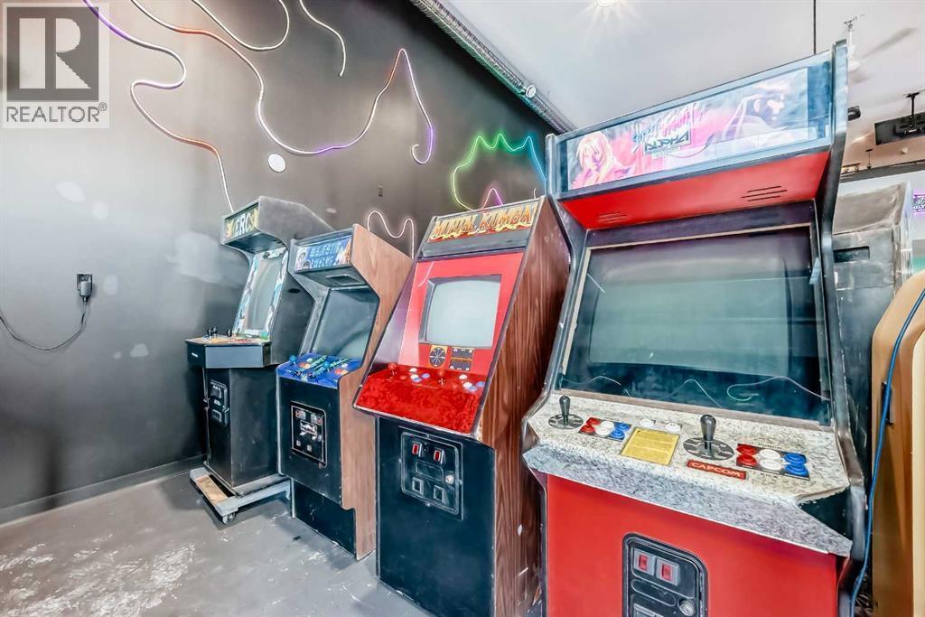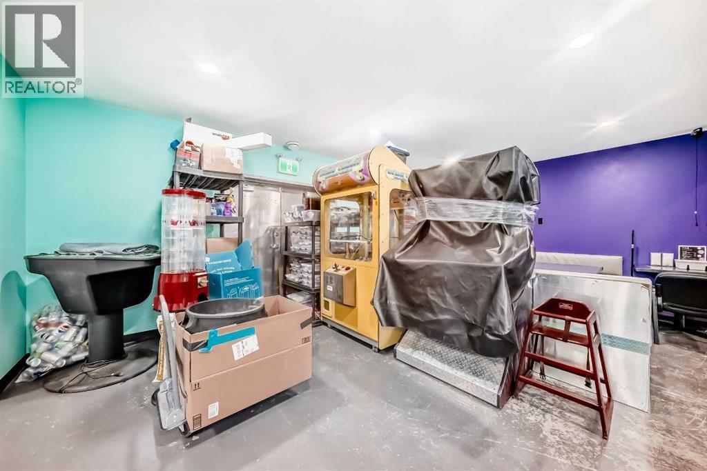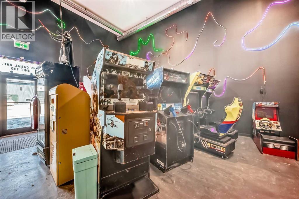 Prime commercial location just off Highway #1. This 2,000 sq ft main floor plus 600 sq ft mezzanine commercial condo is currently set up as an arcade entertainment venue with licensed alcohol service and concession/bar area.The space includes two washrooms, air conditioning, on-demand hot water, extensive electrical outlets, high-end stereo system, security system with 8 cameras, and double rear doors for easy equipment loading.The building can be rented empty for $15PSF + $7PSF operating costs. Arcade machines, pool tables, commercial dishwasher, and additional equipment available for purchase up to $100,000. Seller willing to sell equipment and business package in full or in part. Full equipment schedule available upon request.Ample paved parking, affordable condo fees, and steady customer traffic from surrounding businesses.Continue operating as an arcade bar, entertainment lounge, or redevelop the concept. Property also available for sale (A2292532). (id:6769)