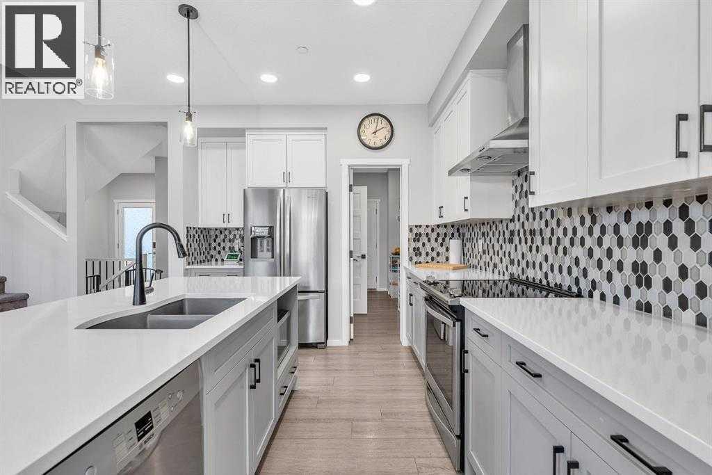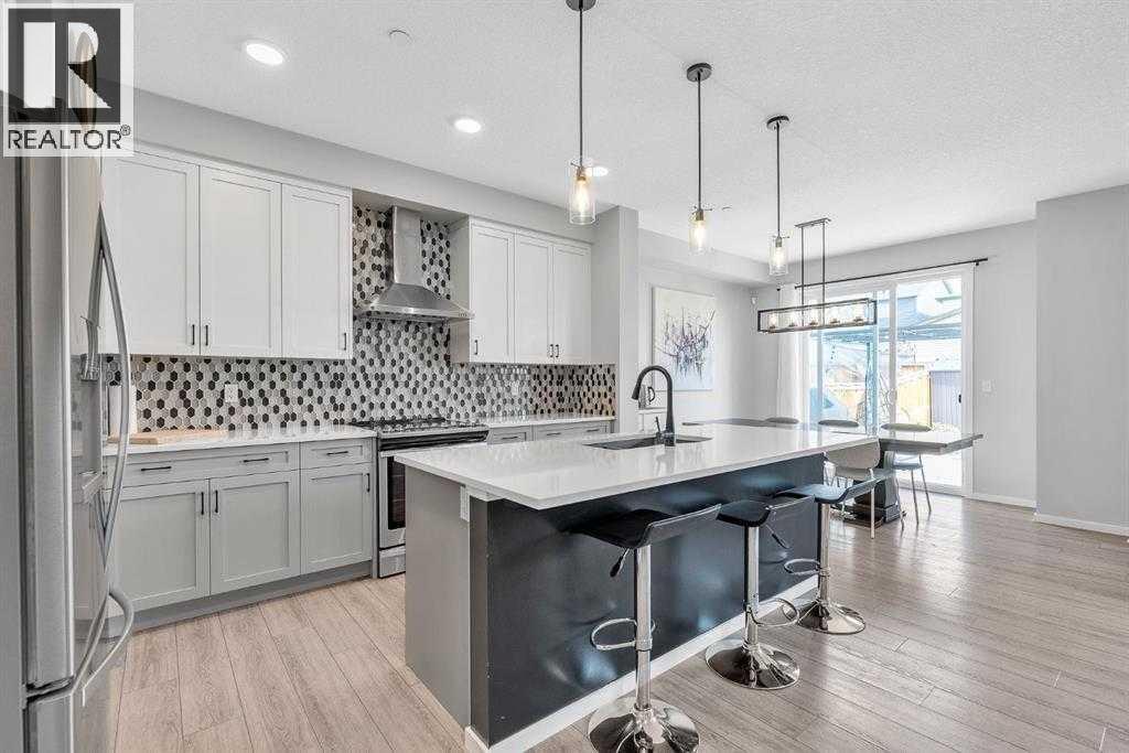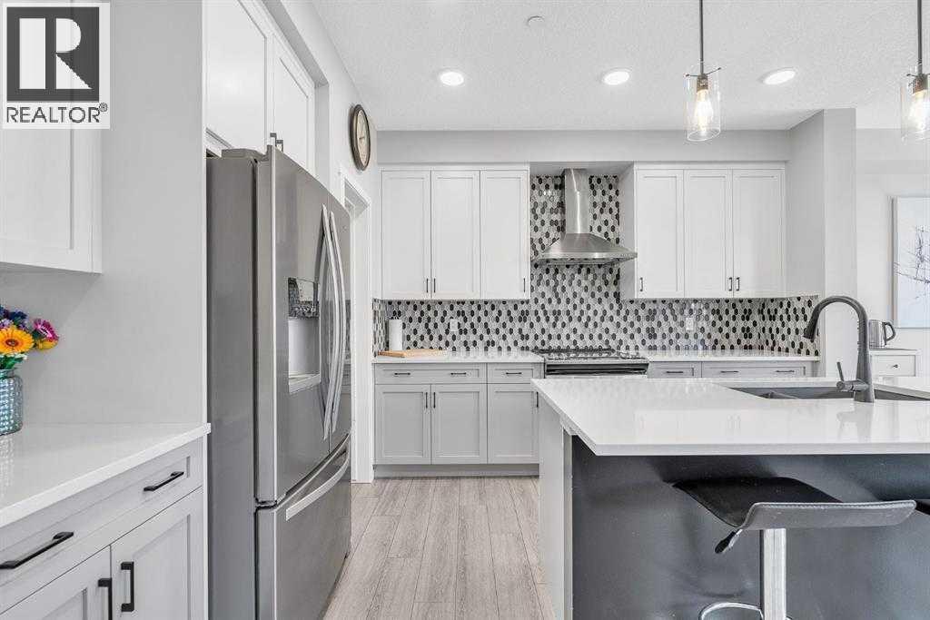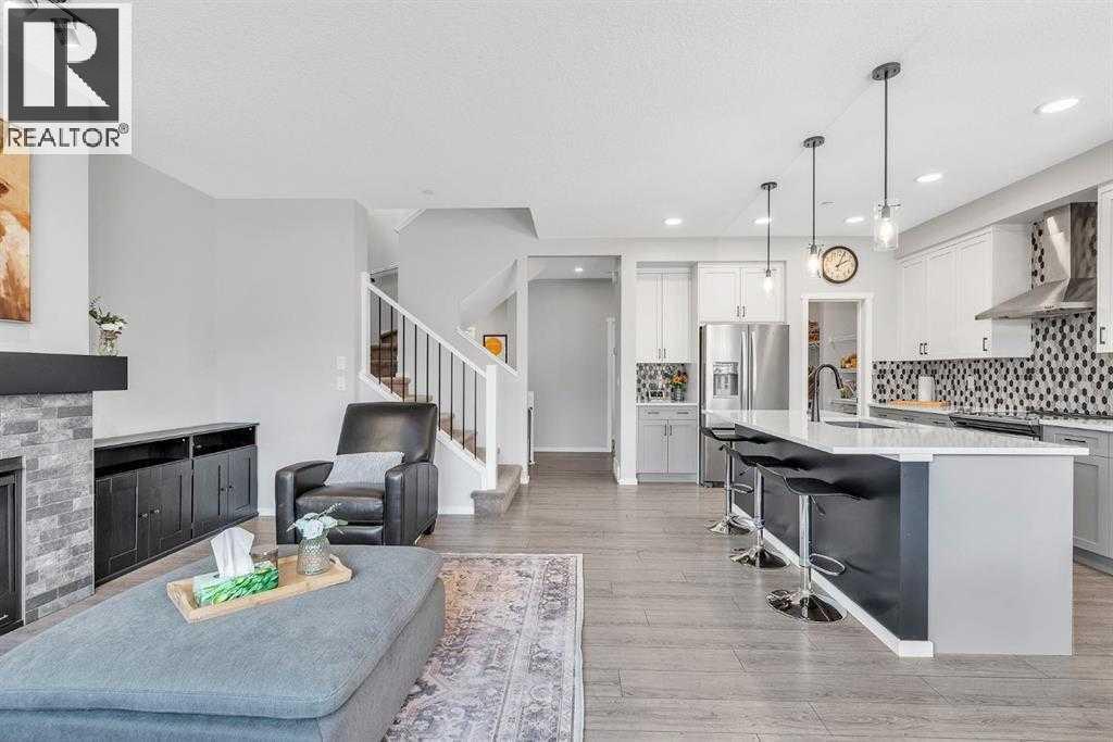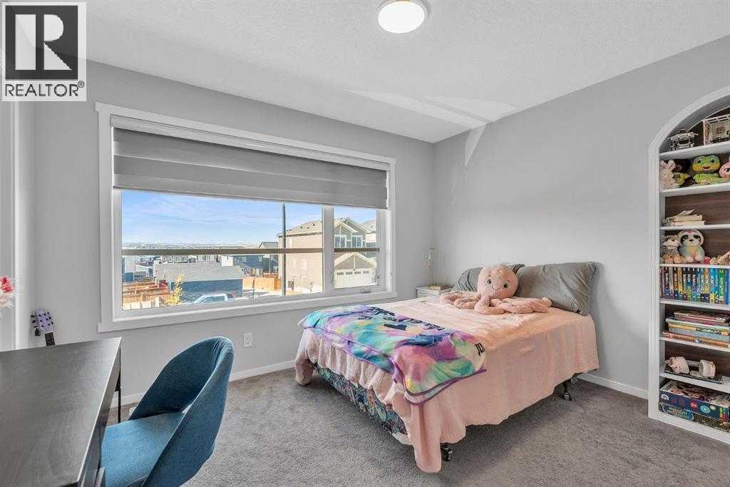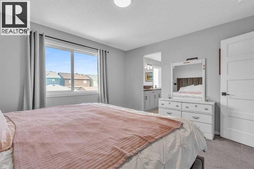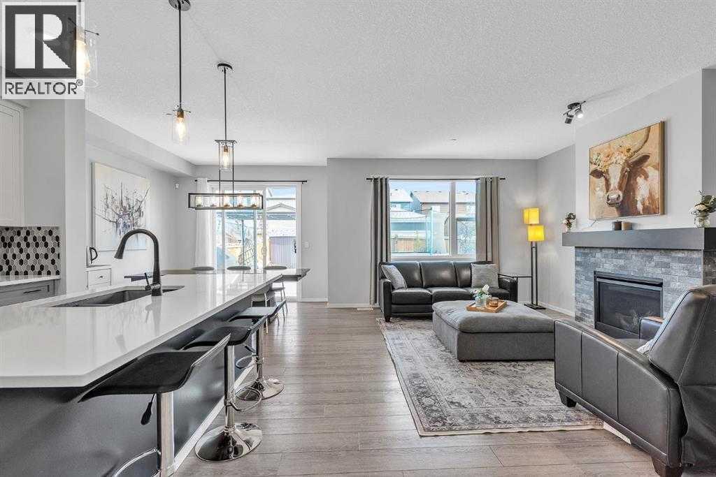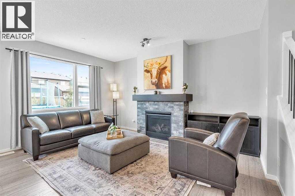 Welcome to this beautifully maintained 4 bedroom, 3.5 bathroom two-storey home in the vibrant community of Livingston, complete with central air conditioning to keep you comfortable during the hot summer months. Ideally located just steps from Livingston Park and close to numerous amenities, this home offers a perfect blend of space, comfort and convenience.The main floor features a bright open-concept layout with large windows, a cozy gas fireplace, and a spacious kitchen with stone countertops, stainless steel appliances, a large island and ample cabinetry. A walk-through pantry connecting the kitchen to the mudroom and double attached garage adds excellent functionality for everyday living.Upstairs you'll find a generous primary suite with walk-in closet and 5-piece ensuite featuring dual sinks, a soaker tub and separate shower. Two additional spacious bedrooms, a full bathroom, convenient upper-level laundry, a bonus room, and a pocket office complete the upper level.The fully finished basement provides additional living space with a family room and a large fourth bedroom with walk-in closet and private 4-piece ensuite, making it ideal for guests, extended family or a potential mother-in-law setup.Enjoy the fully fenced backyard and rear deck with BBQ gas line, perfect for outdoor entertaining. A built-in fire suppression system adds additional peace of mind.This is a fantastic opportunity to own a well-designed family home in one of Calgary’s fastest growing communities. (id:6769)